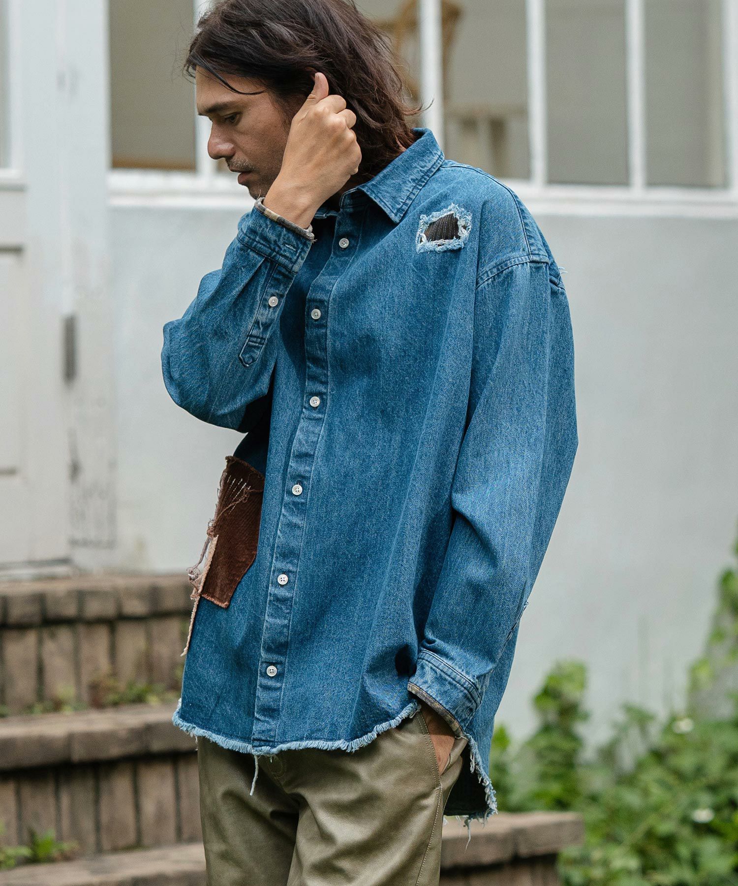 CAMBIO 50%OFF【CAMBIO(カンビオ)】Camouflage Corduroy Repair Denim Shirts デニムシャツ(MIU-242-015)