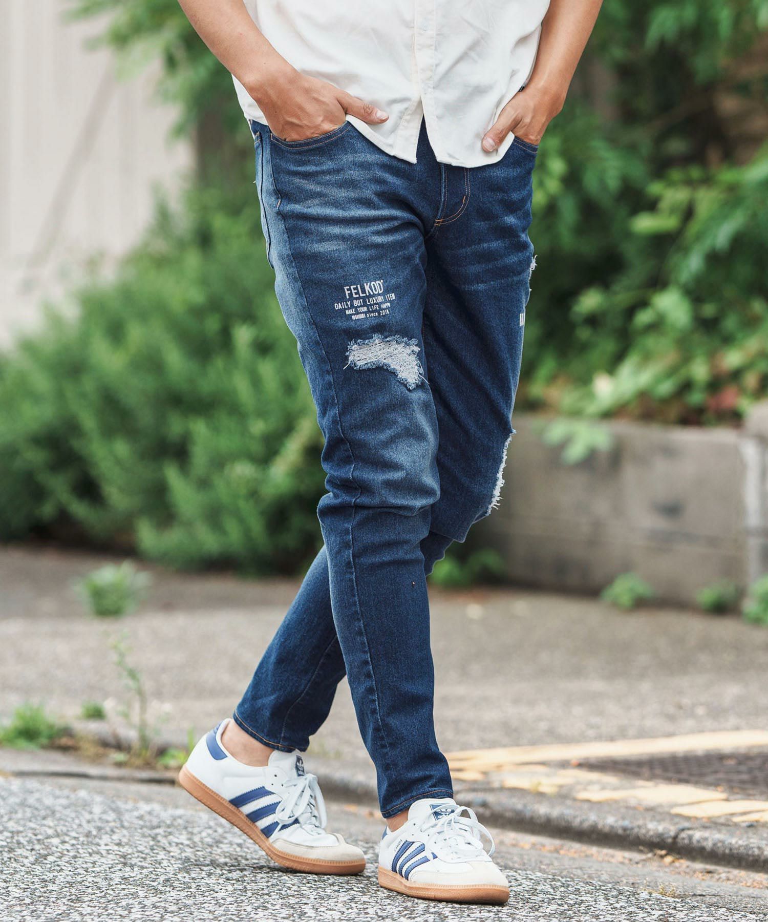 felkod 30%OFF【felkod(フィルコッド)】Distressed Denim Pants デニムパンツ(F24A190)