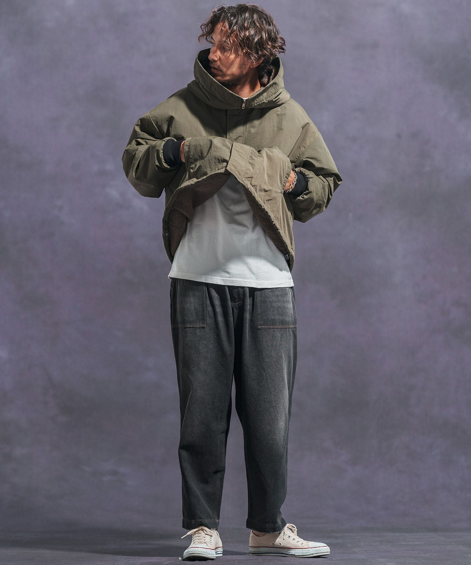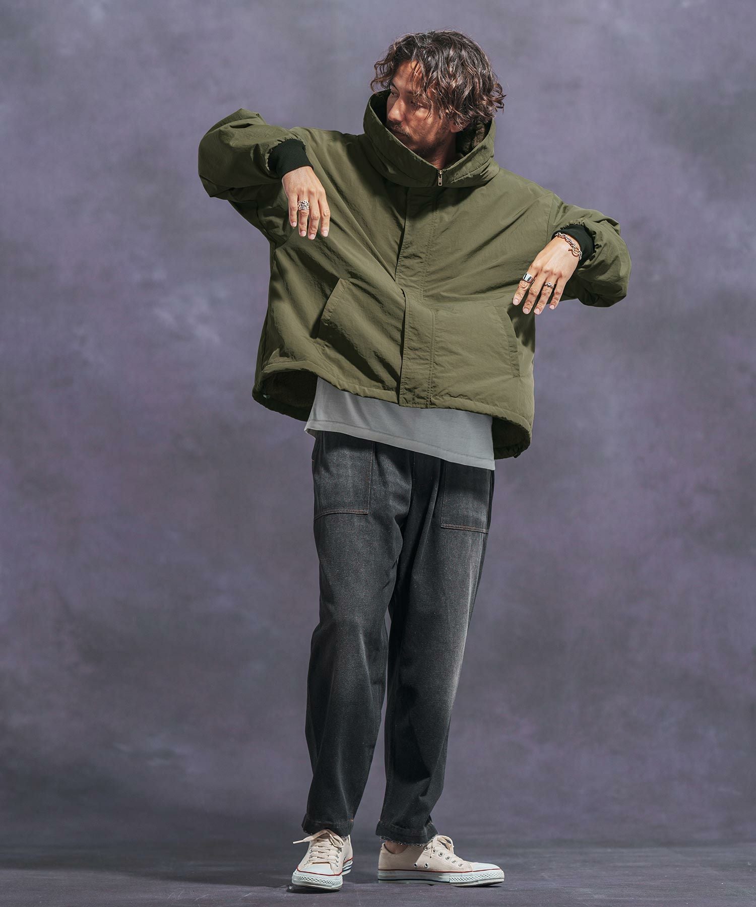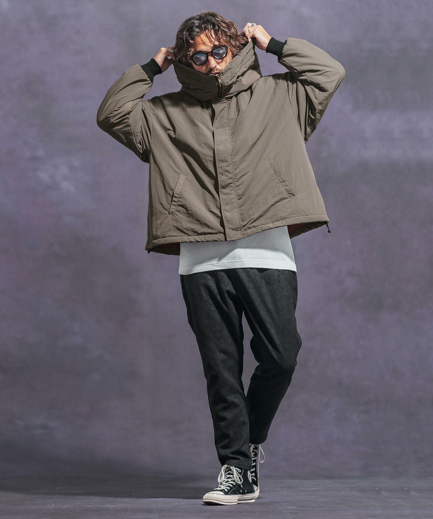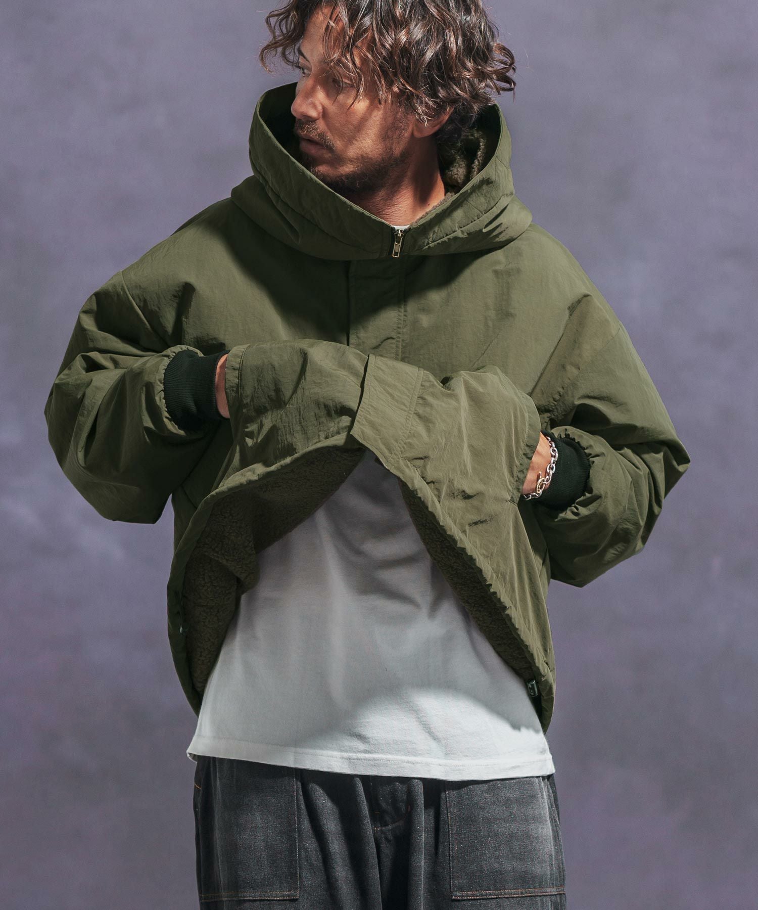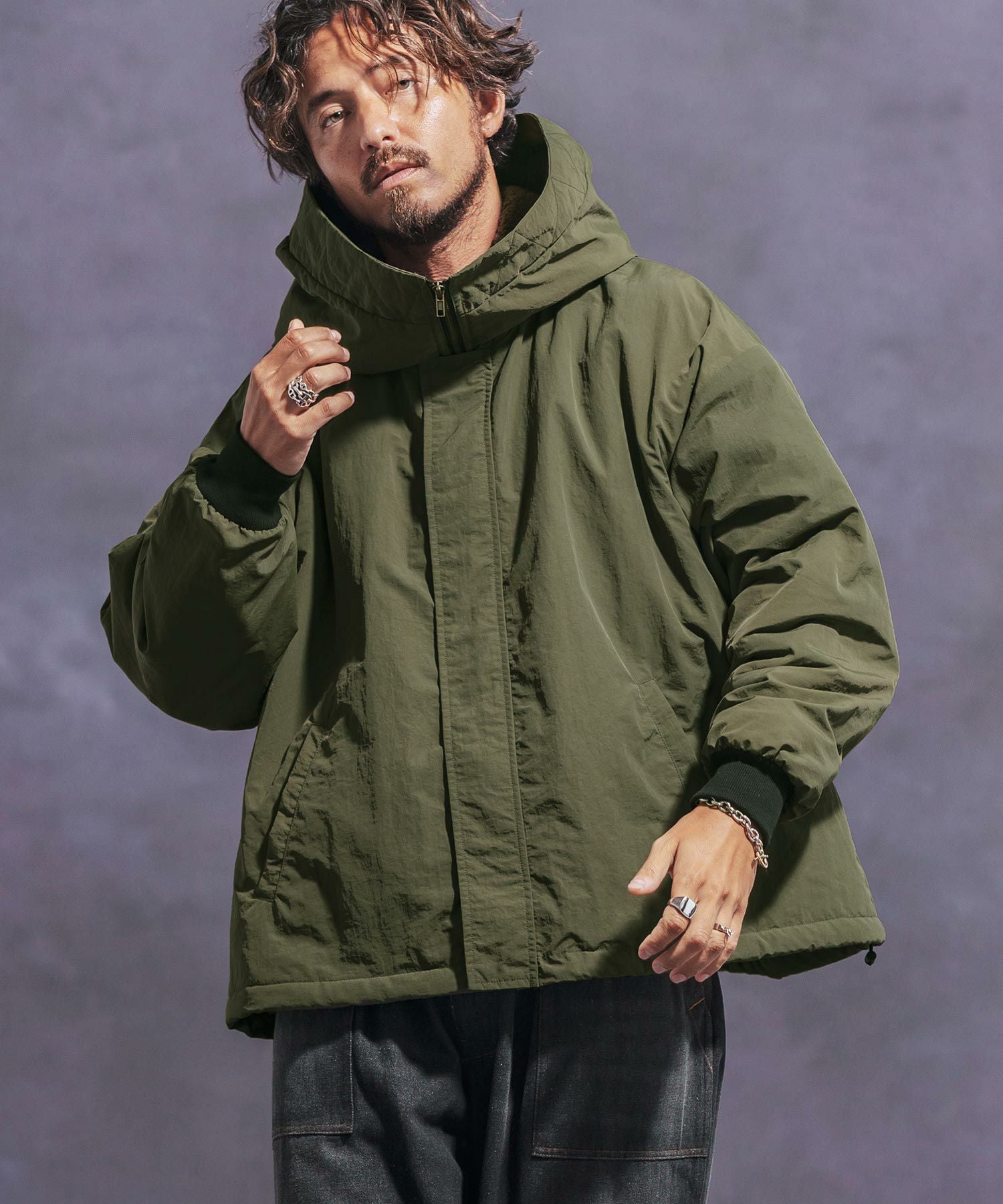 Jih Nunc 30%OFF【Jih Nunc(ジーヌンク)】 裏ボアナイロンビッグフードジャケット(JIH-R1054)