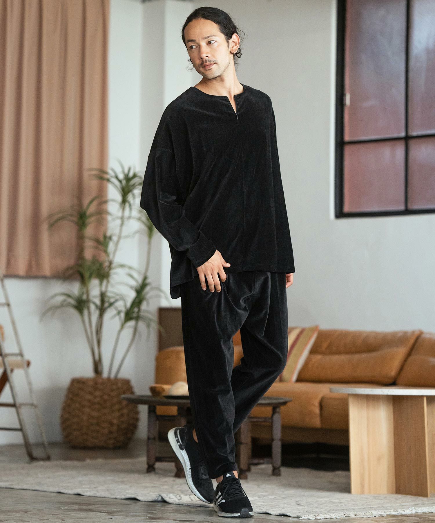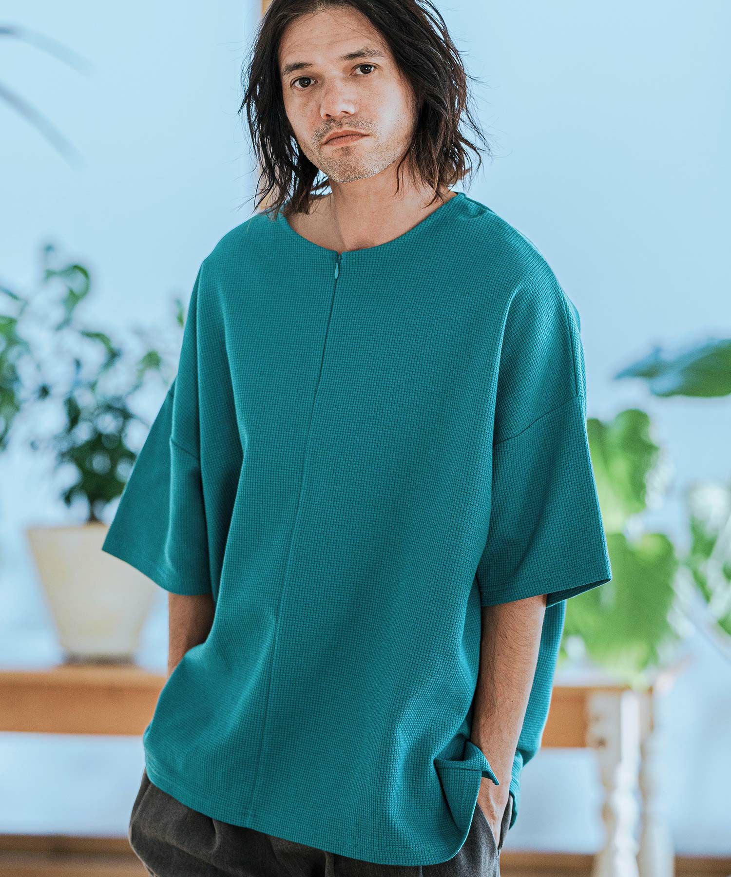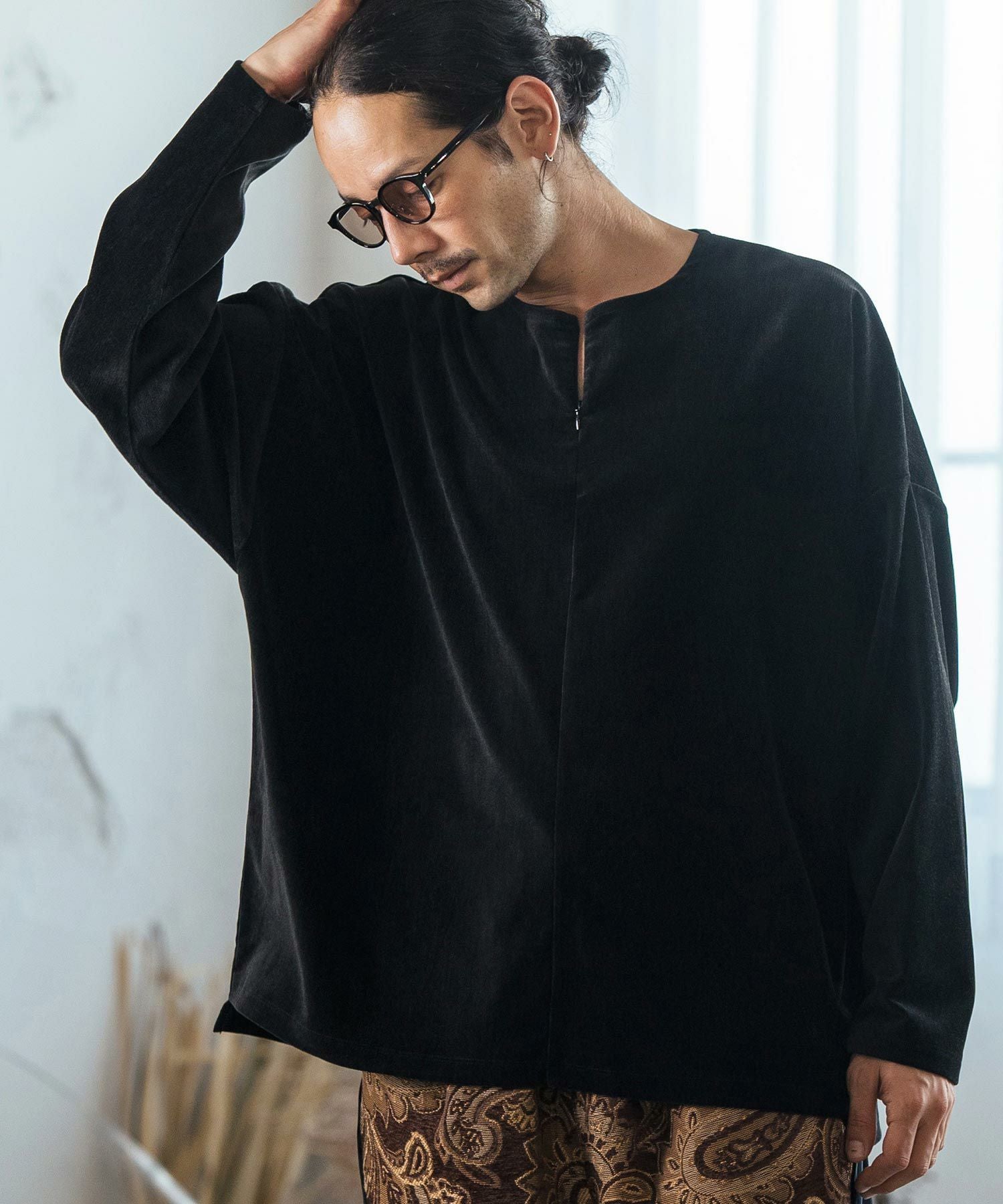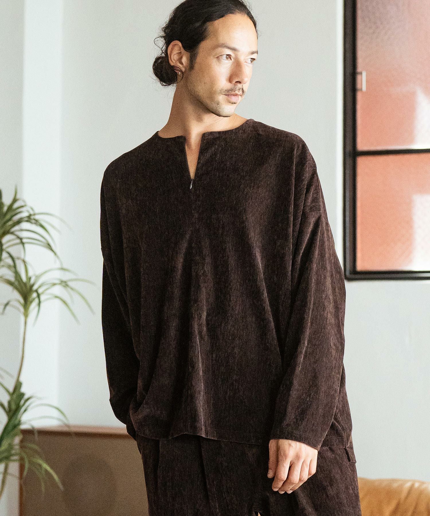 CAMBIO 50%OFF【CAMBIO(カンビオ)】Velour conceal Zipper Design Henley Neck Pullover ヘンリーネックカットソー(A34924cmb)