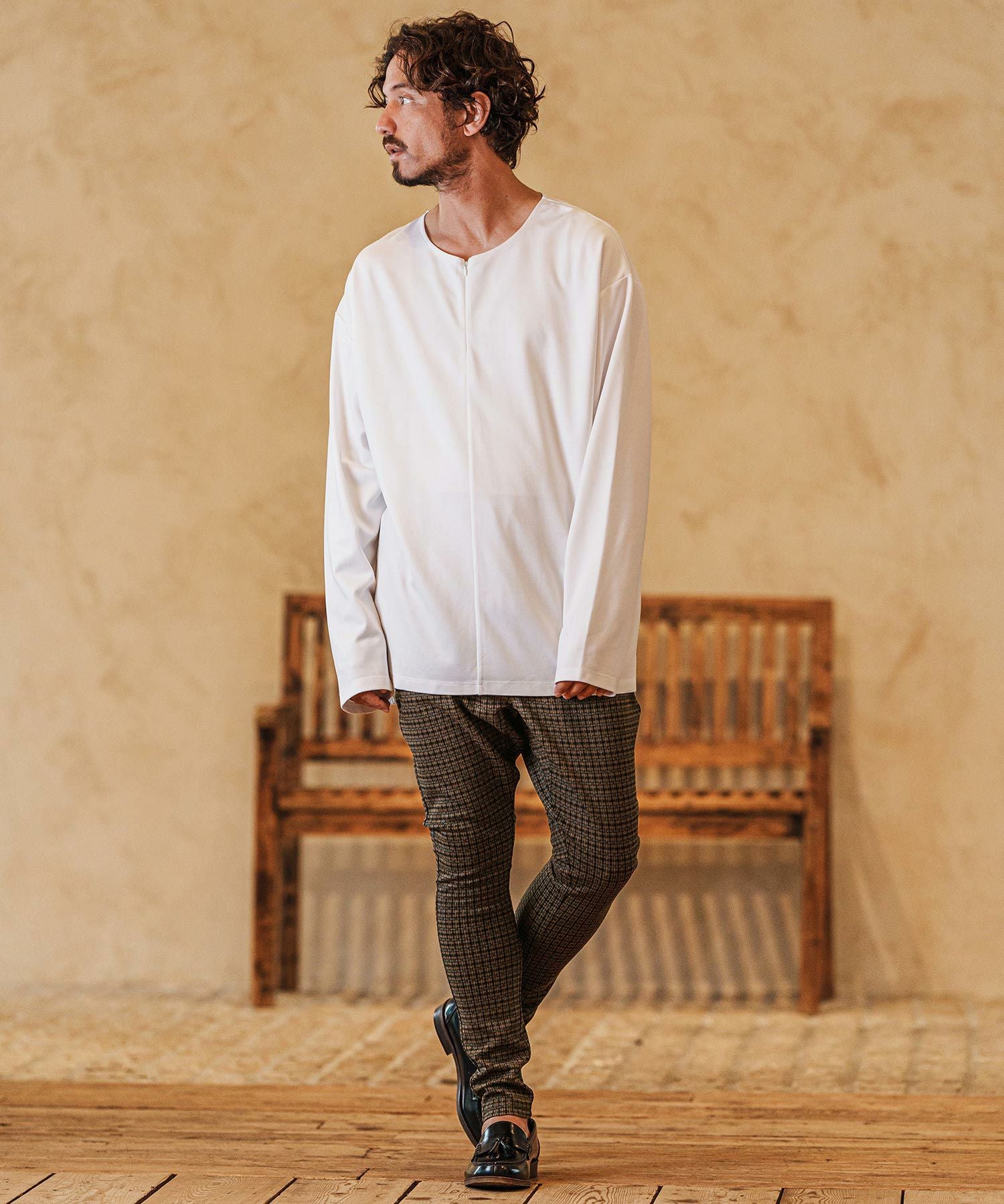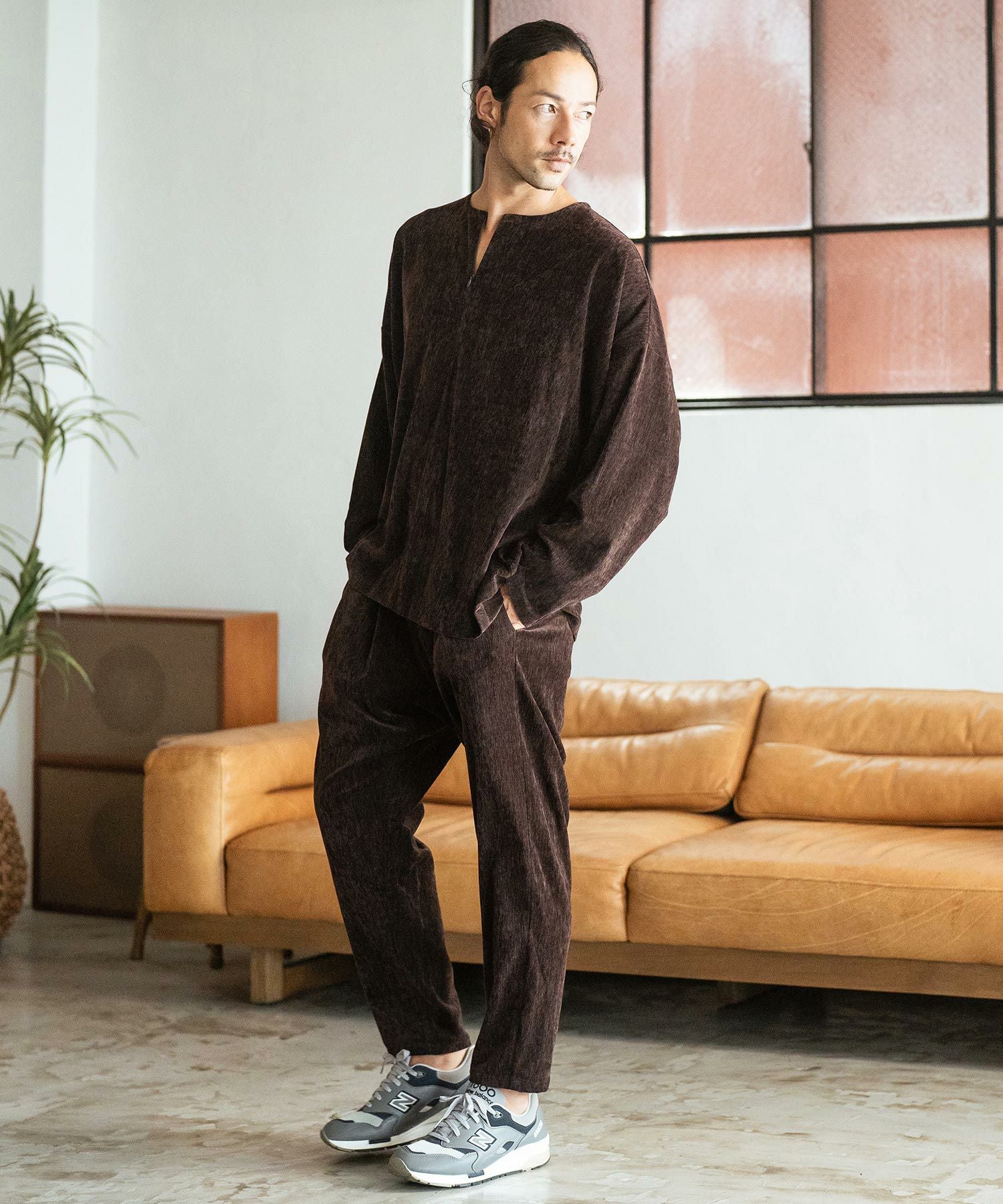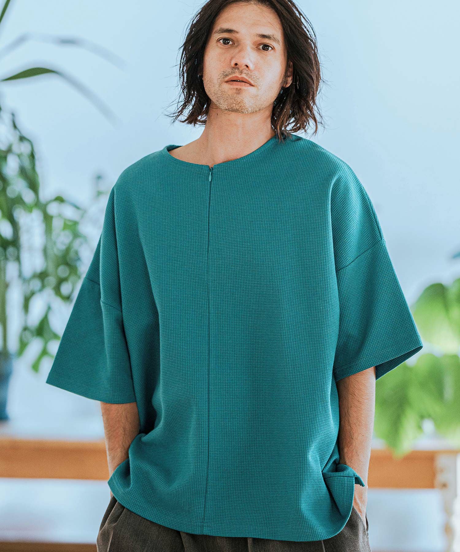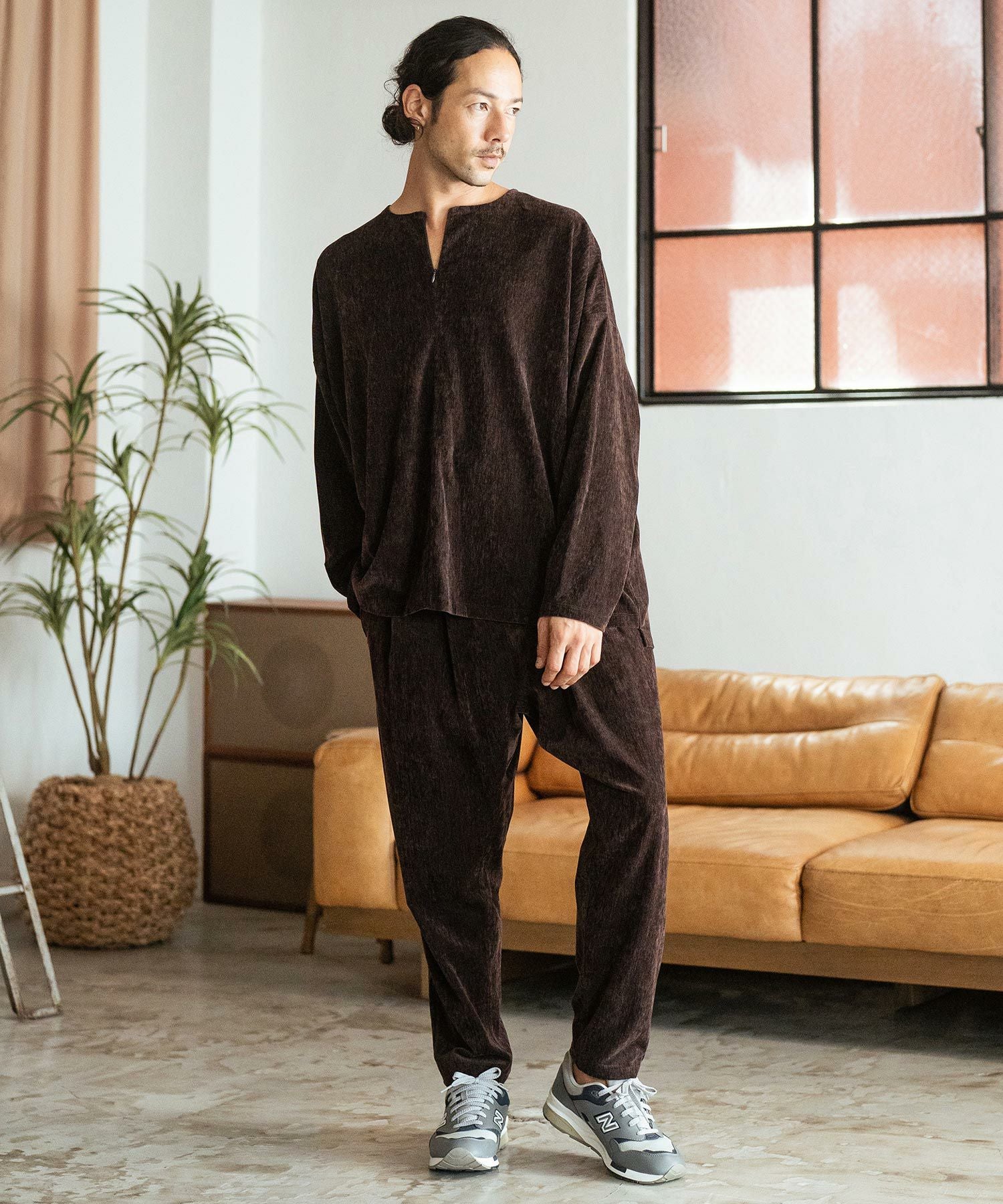 CAMBIO 50%OFF【CAMBIO(カンビオ)】Velour conceal Zipper Design Henley Neck Pullover ヘンリーネックカットソー(A34924cmb)