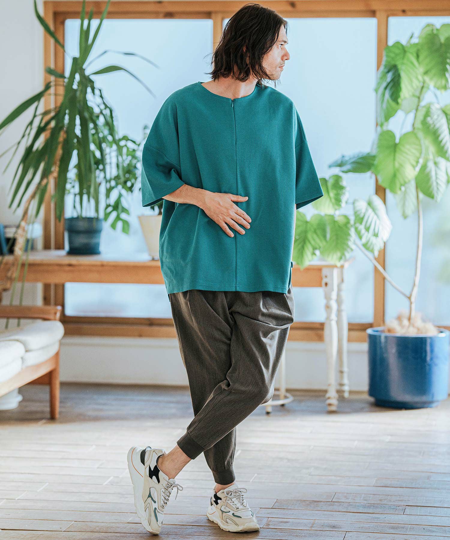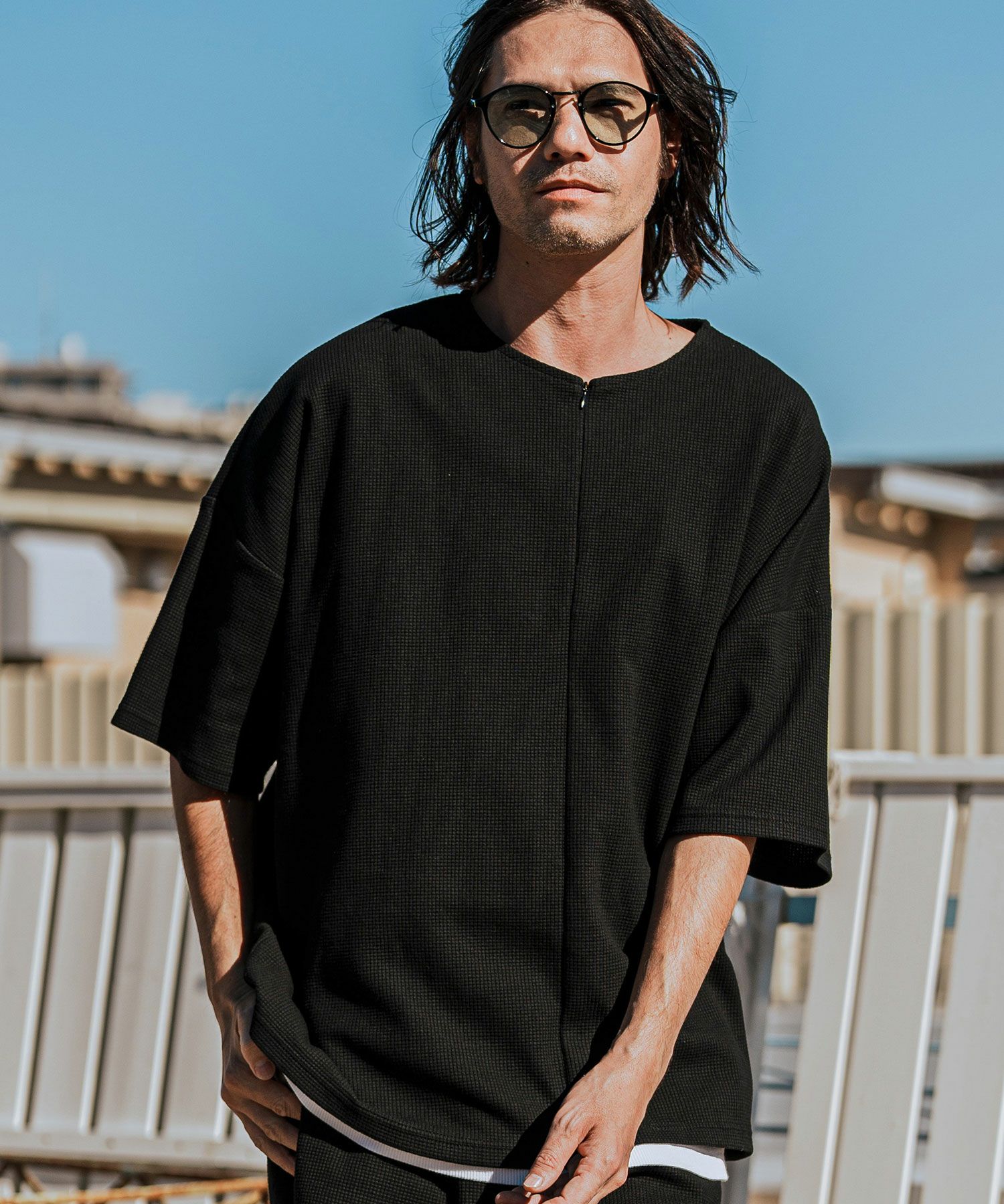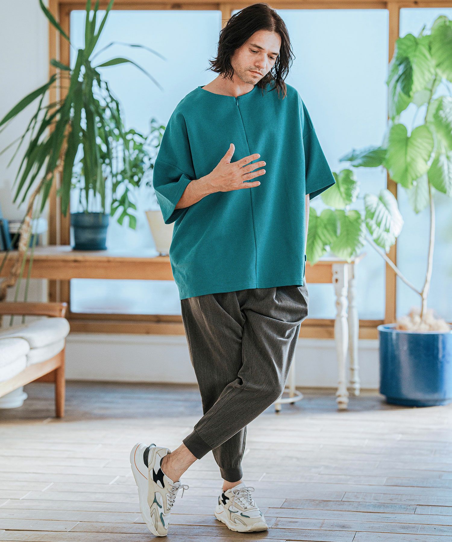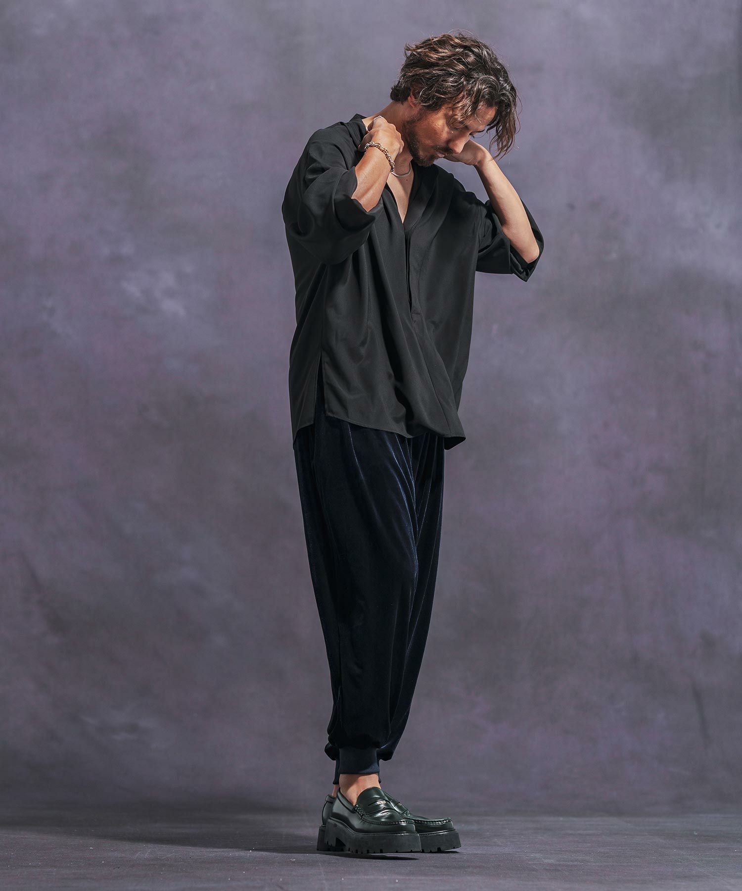CAMBIO 50%OFF【CAMBIO(カンビオ)】Velour conceal Zipper Design Henley Neck Pullover ヘンリーネックカットソー(A34924cmb)