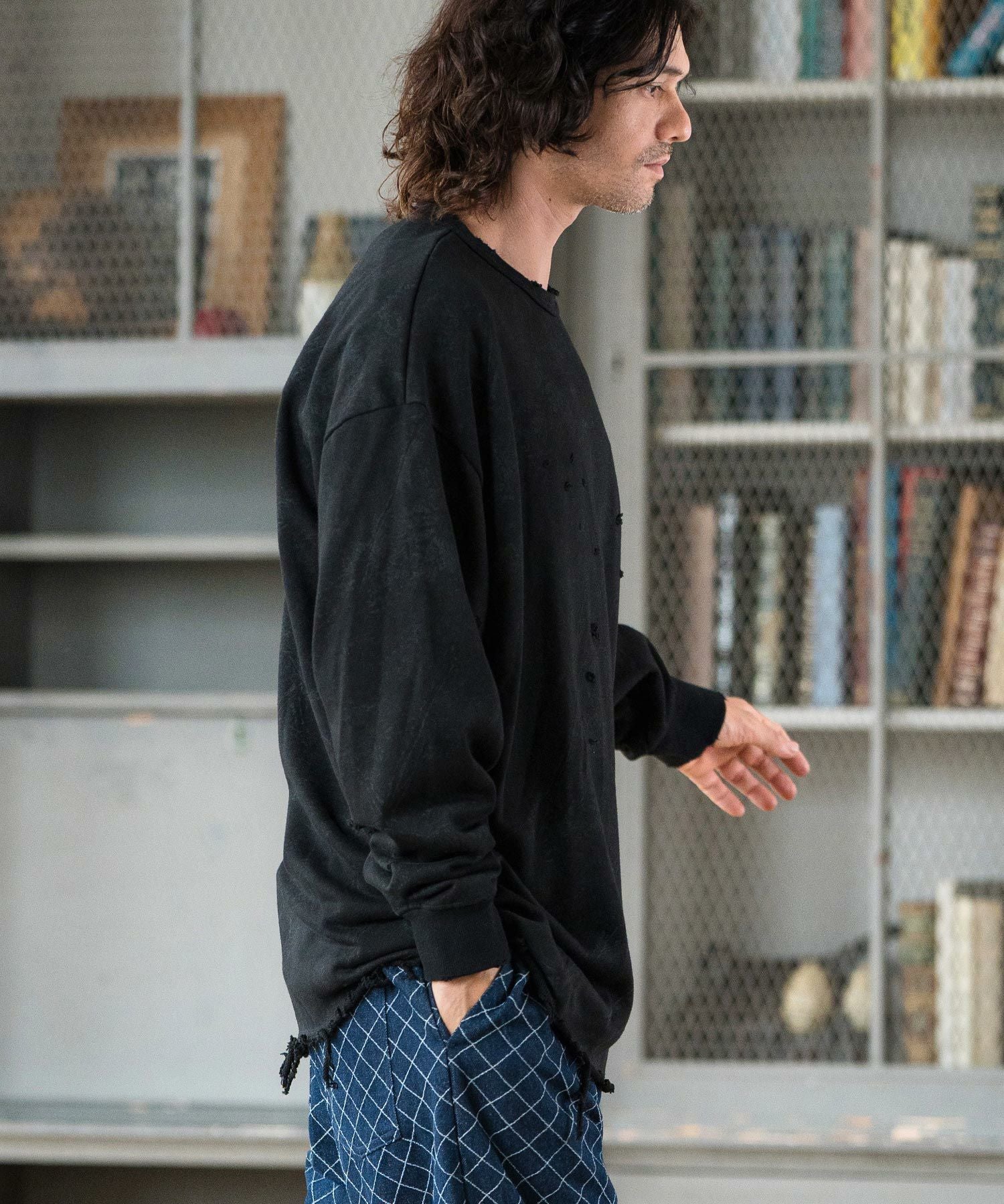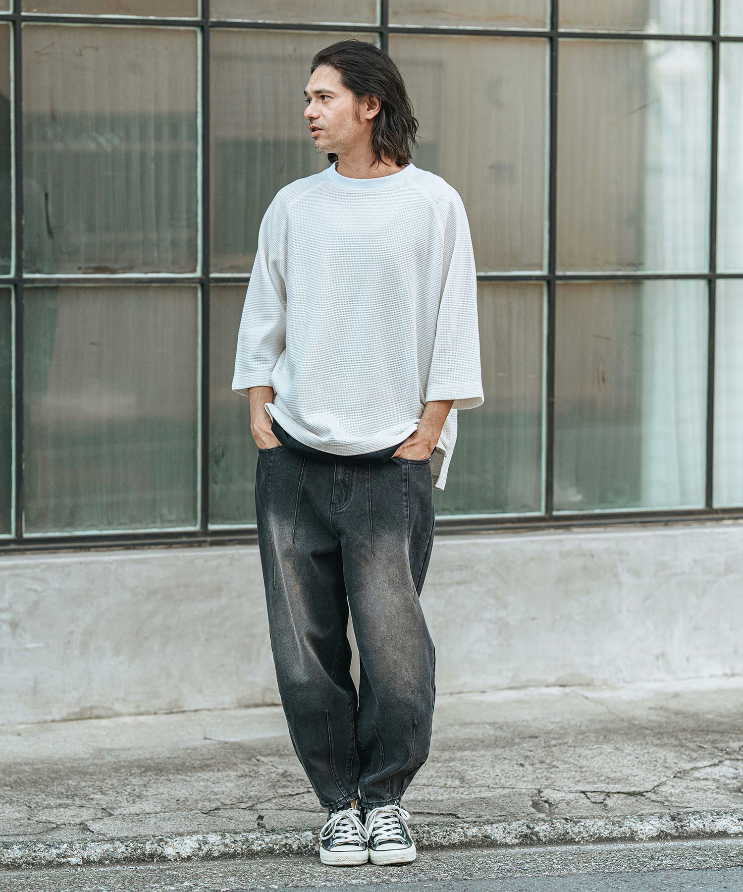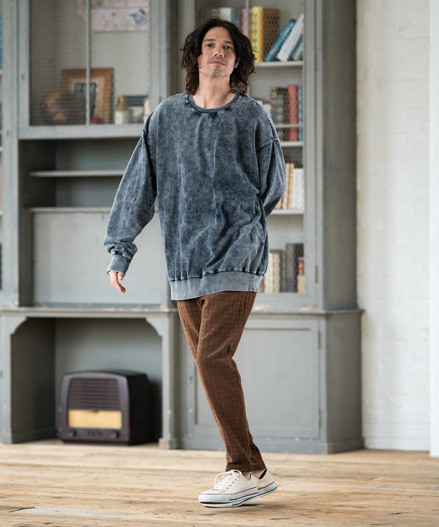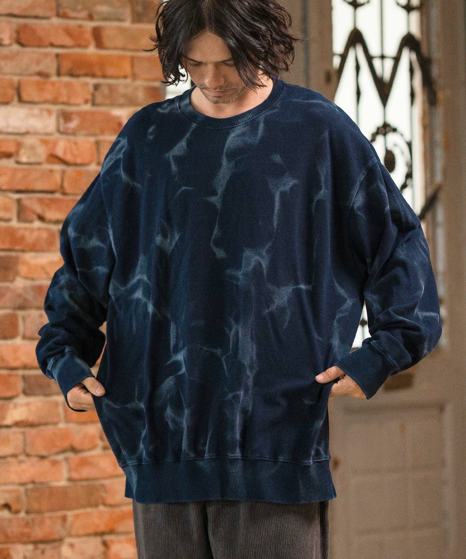 CAMBIO 30%OFF【CAMBIO(カンビオ)】Vintage Like Indigo Bleach Waffle Pullover カットソー(MIU-242-034)