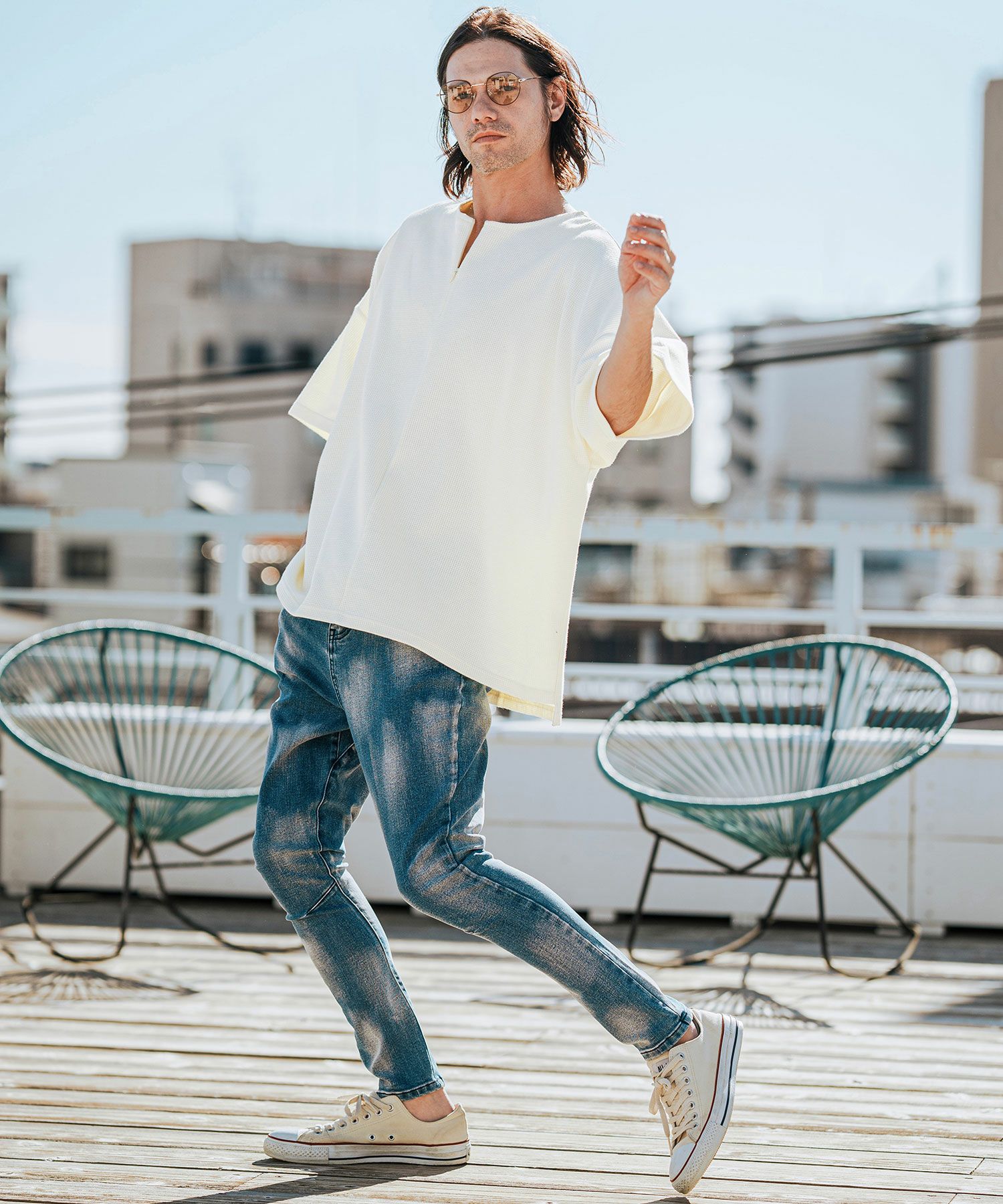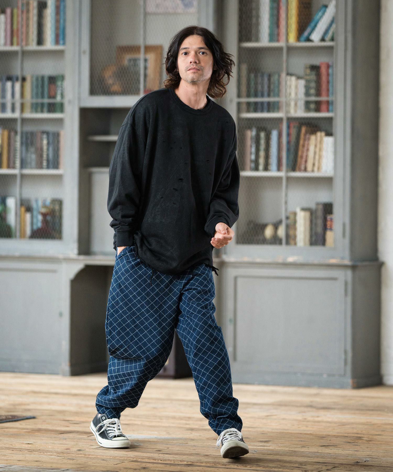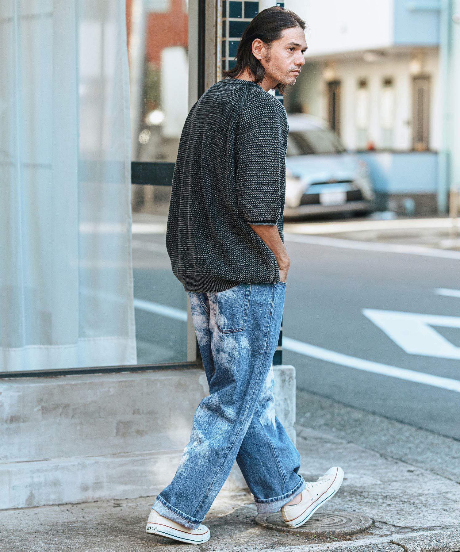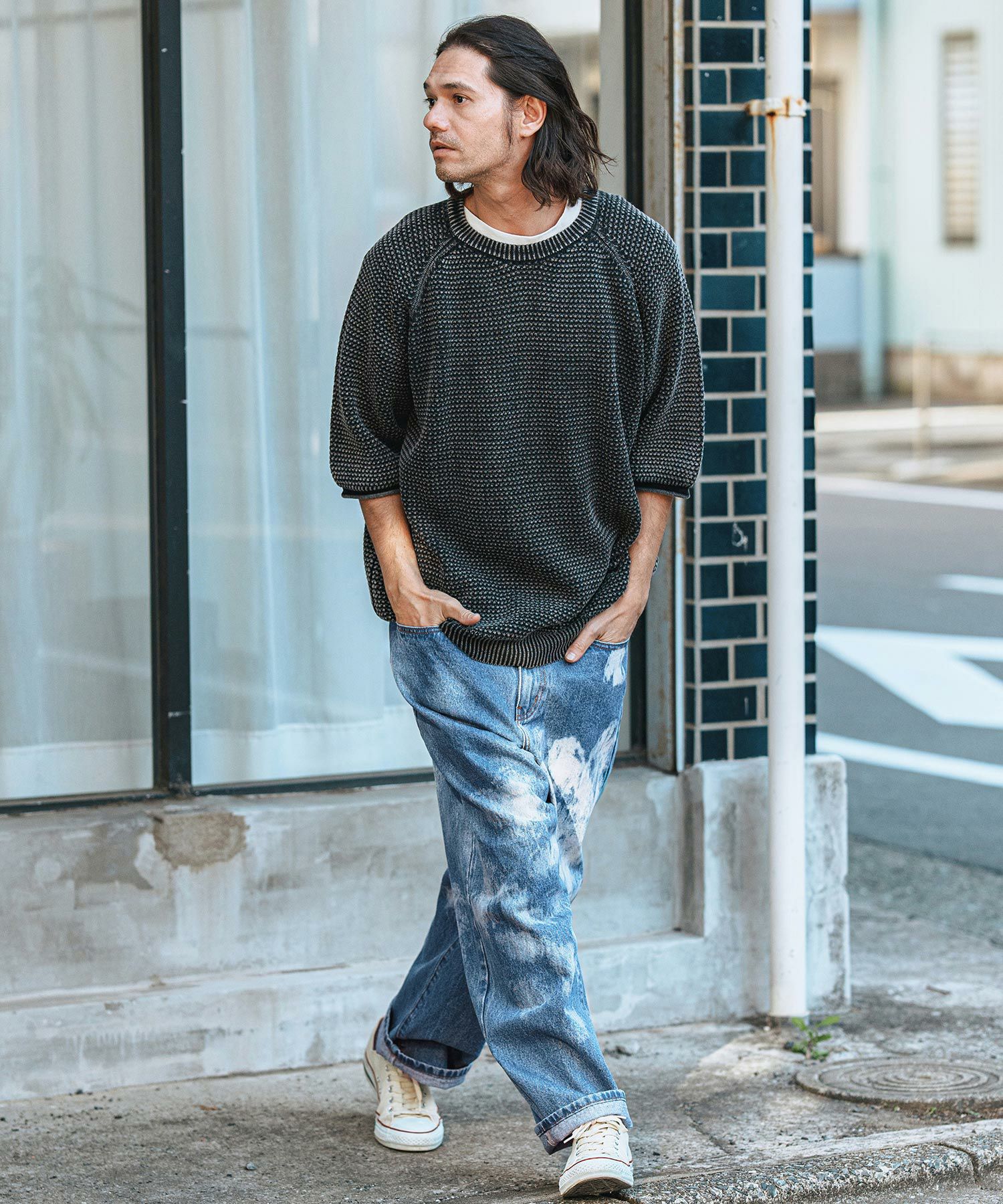 CAMBIO 30%OFF【CAMBIO(カンビオ)】Vintage Like Indigo Bleach Waffle Pullover カットソー(MIU-242-034)