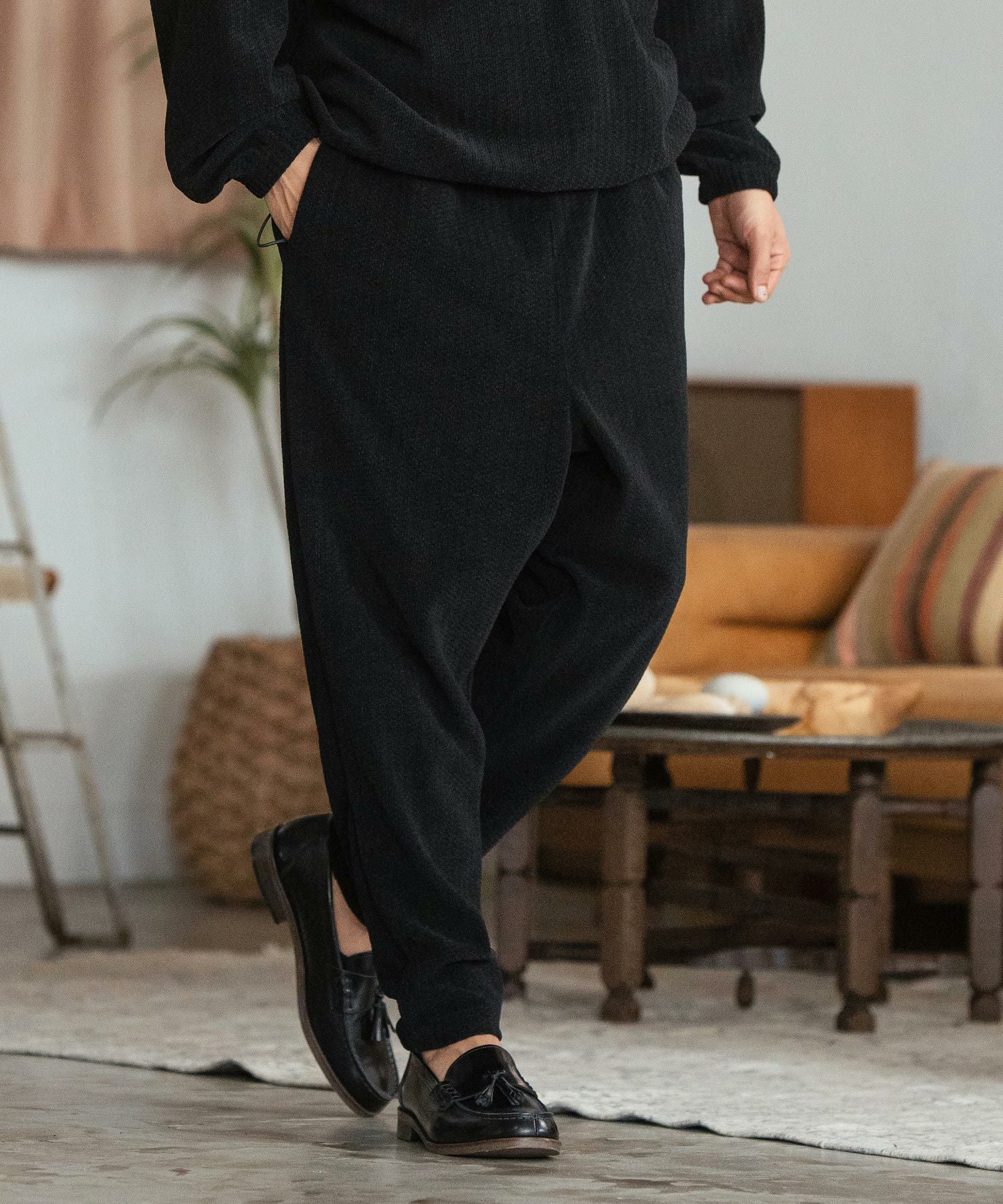 CAMBIO 30%OFF【CAMBIO(カンビオ)】Dobby Mole Soft Balloon Tapered Knit sew Pants サルエル テーパード パンツ(A33224cmb)
