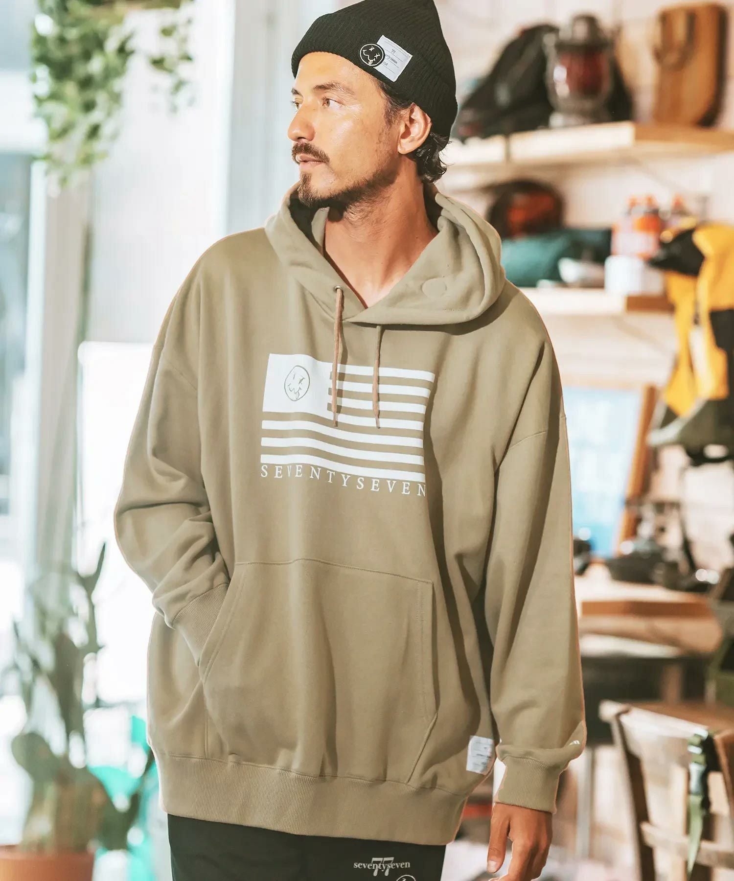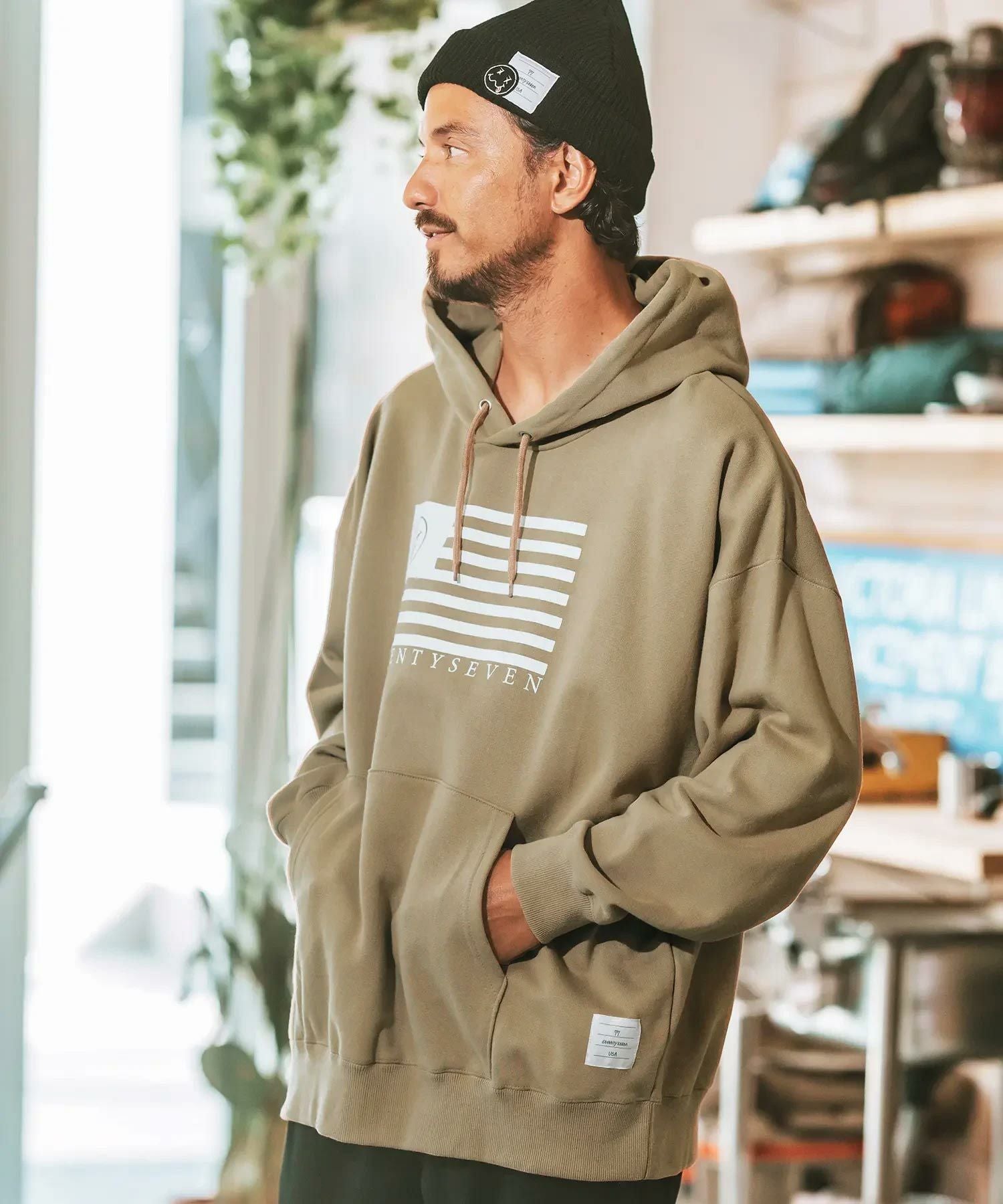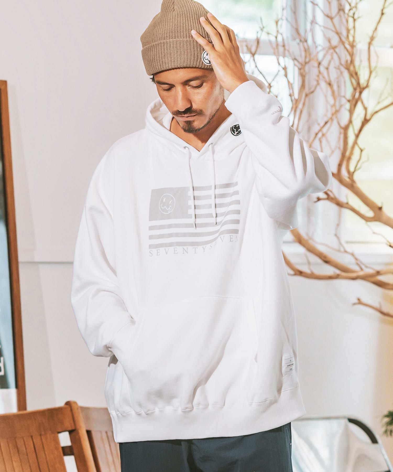 seventy seven 50%OFF【seventy seven(セブンティセブン)】middle onz over size sweat P-O hoodie(flag) パーカー(7724W100)