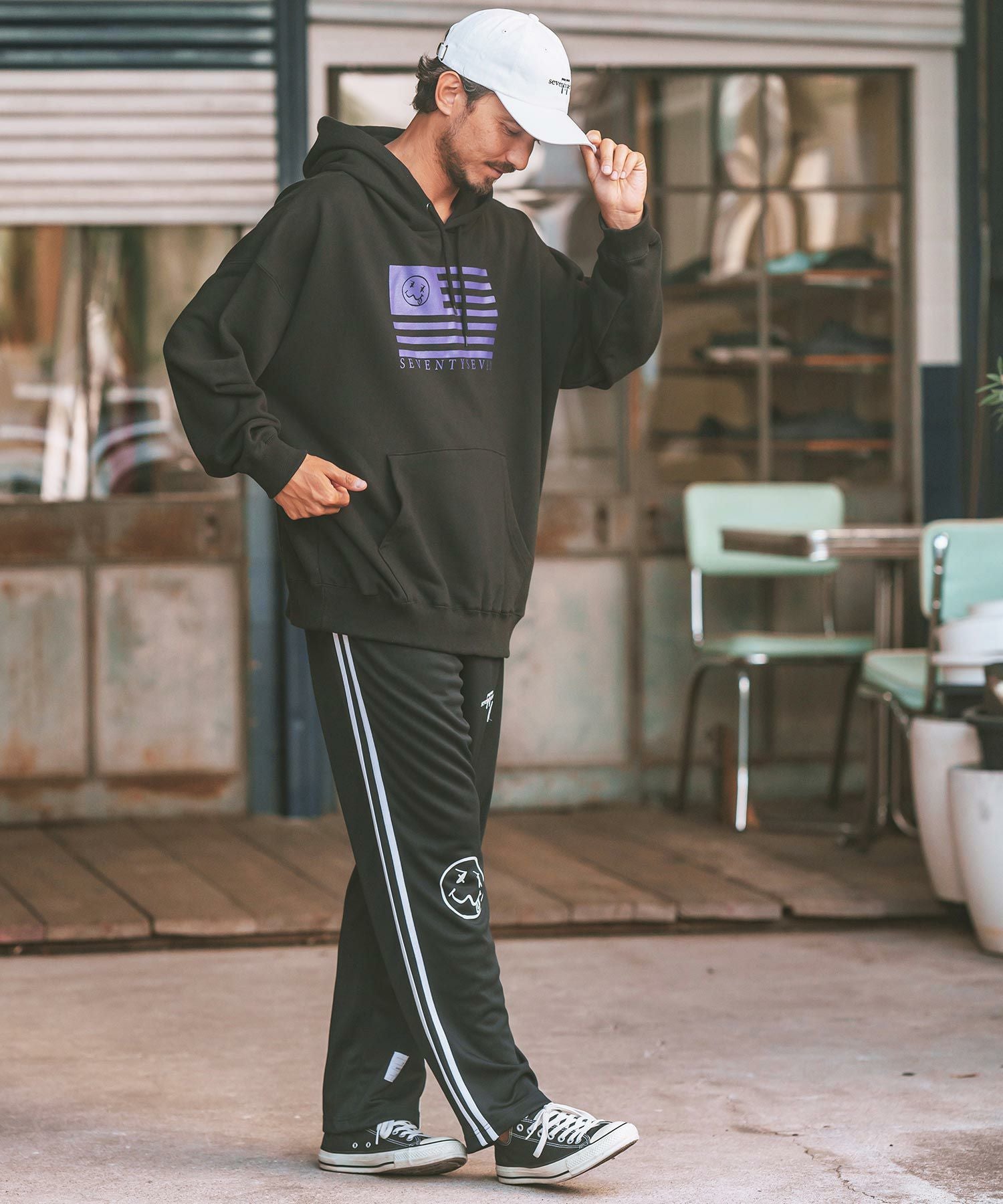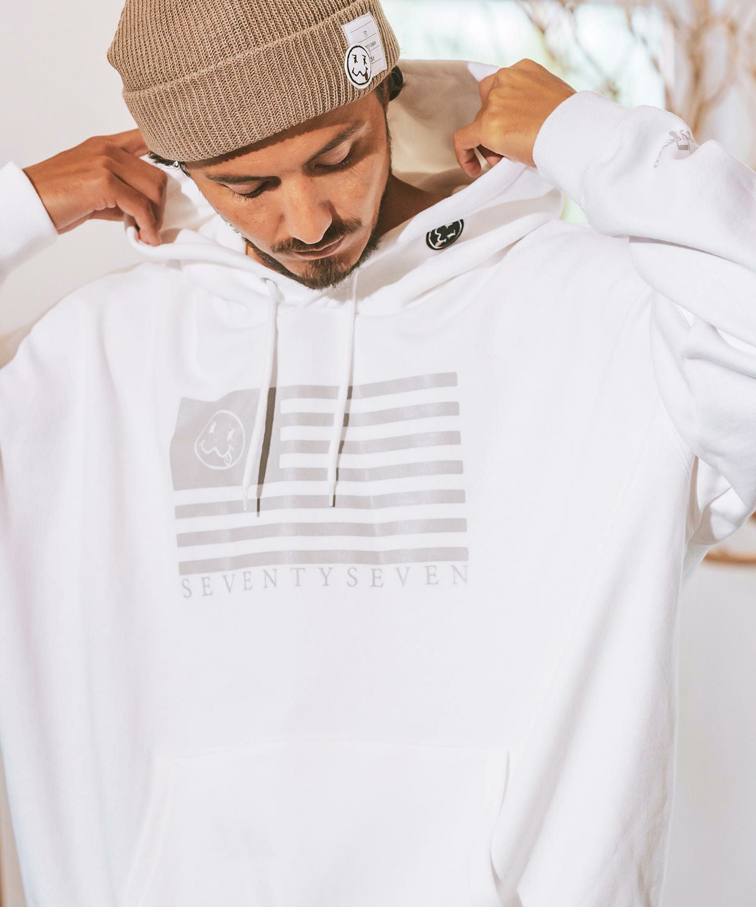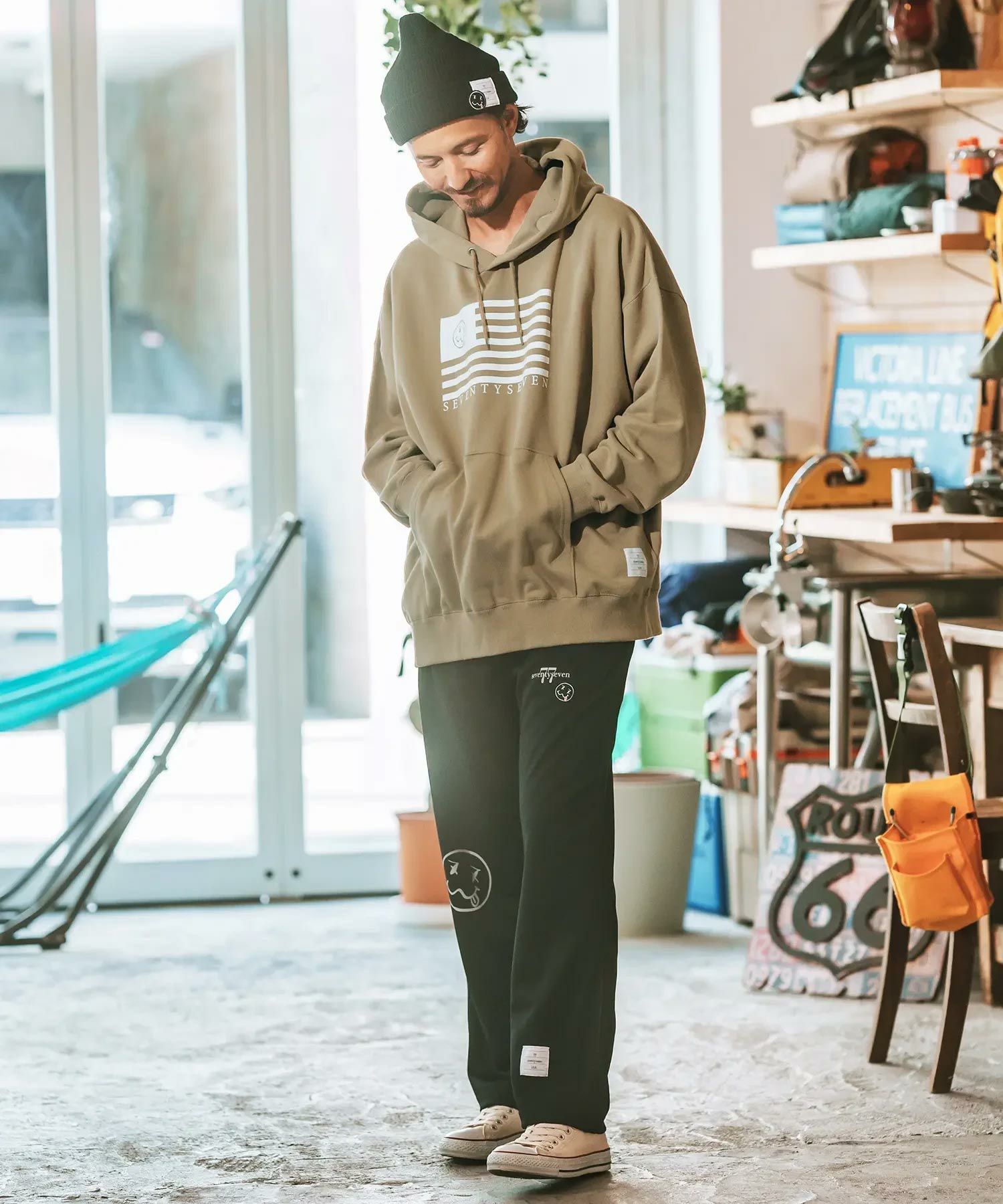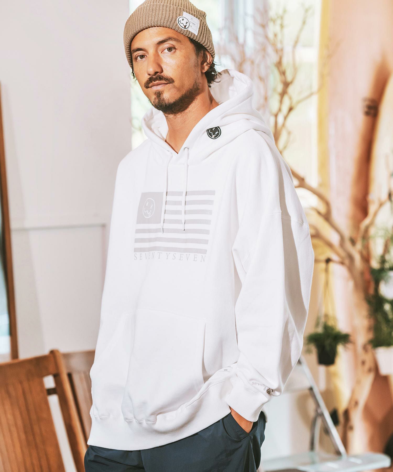 seventy seven 50%OFF【seventy seven(セブンティセブン)】middle onz over size sweat P-O hoodie(flag) パーカー(7724W100)