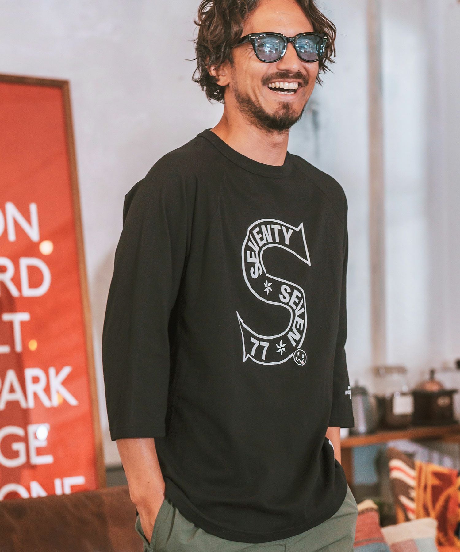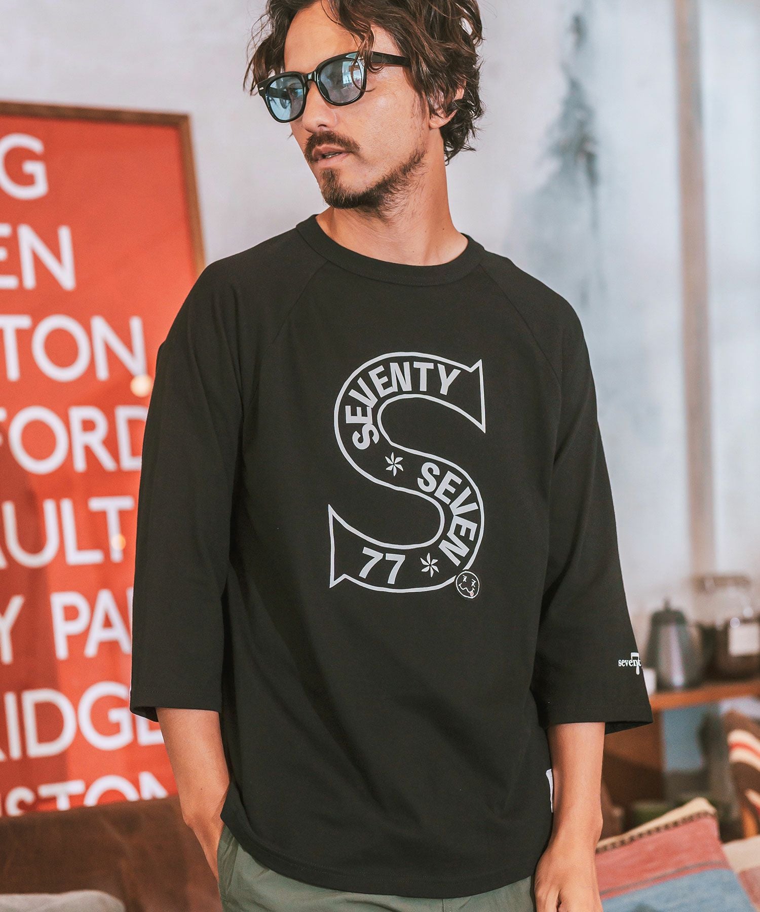 seventy seven 50%OFF【seventy seven(セブンティセブン)】middle onz raglan 3-4 sleeve t-shits (S) カットソー(7724W150)