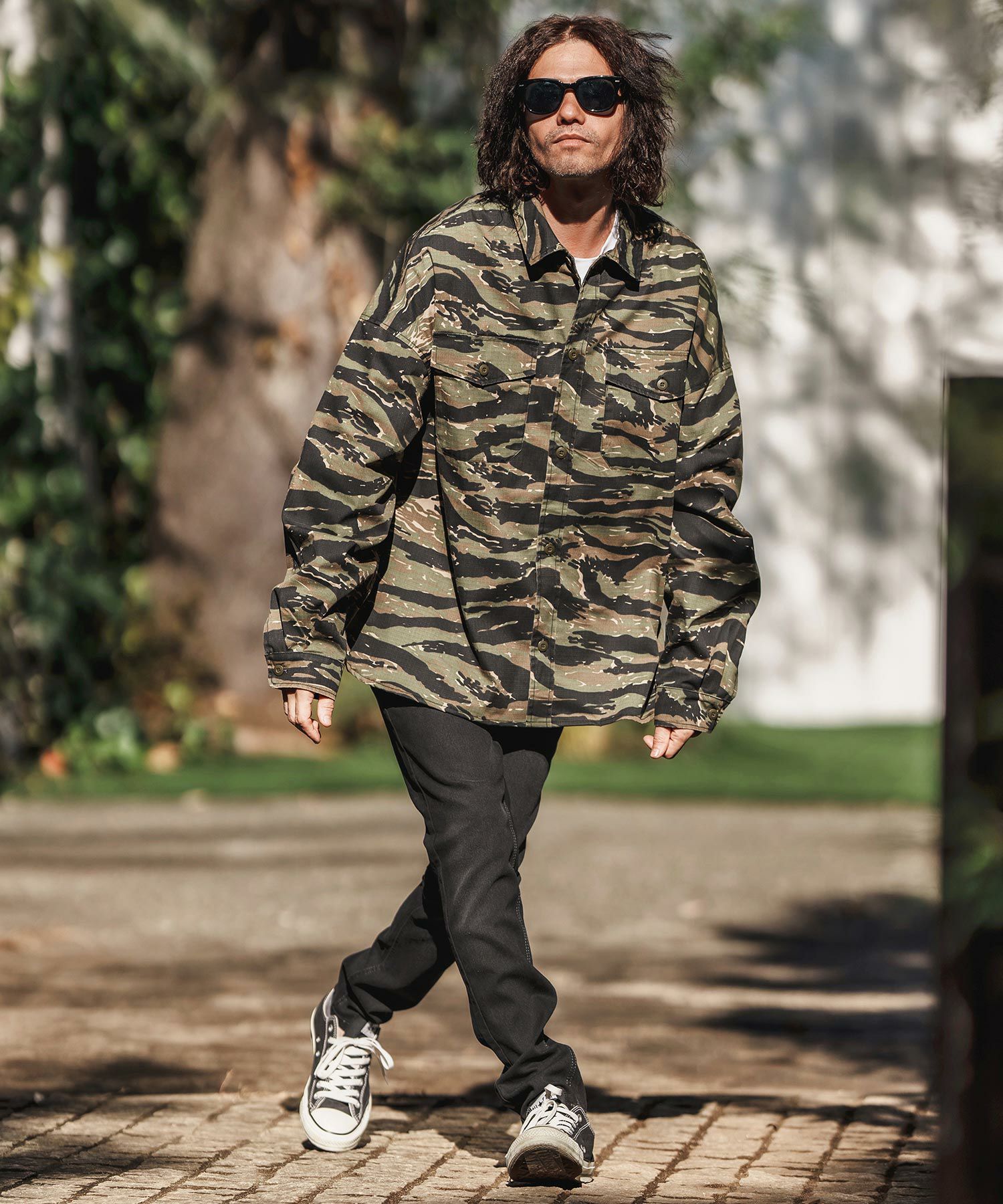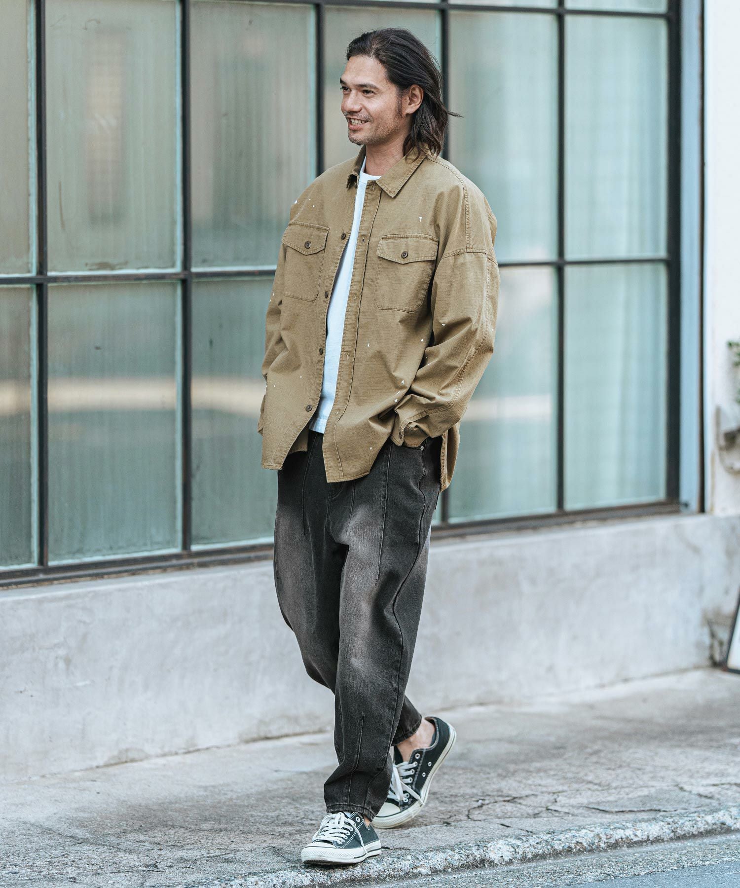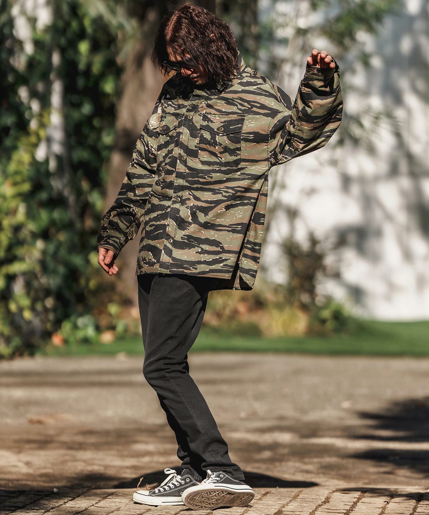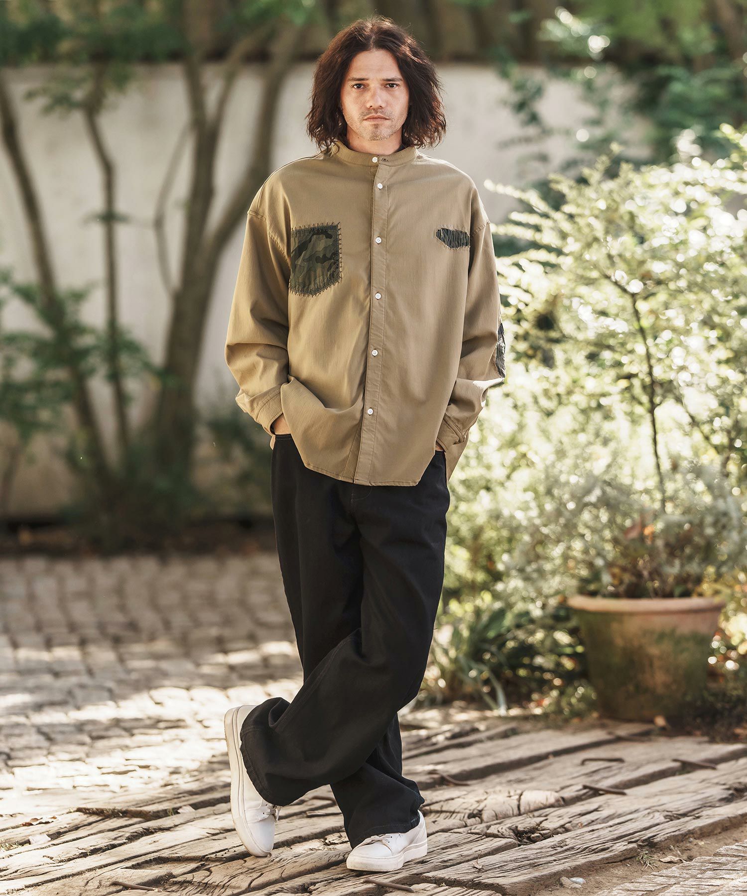 CAMBIO 【CAMBIO(カンビオ)】Stretch Back Satin Camouflage Repair Shirts ミリタリーシャツ(MIU-251-032)