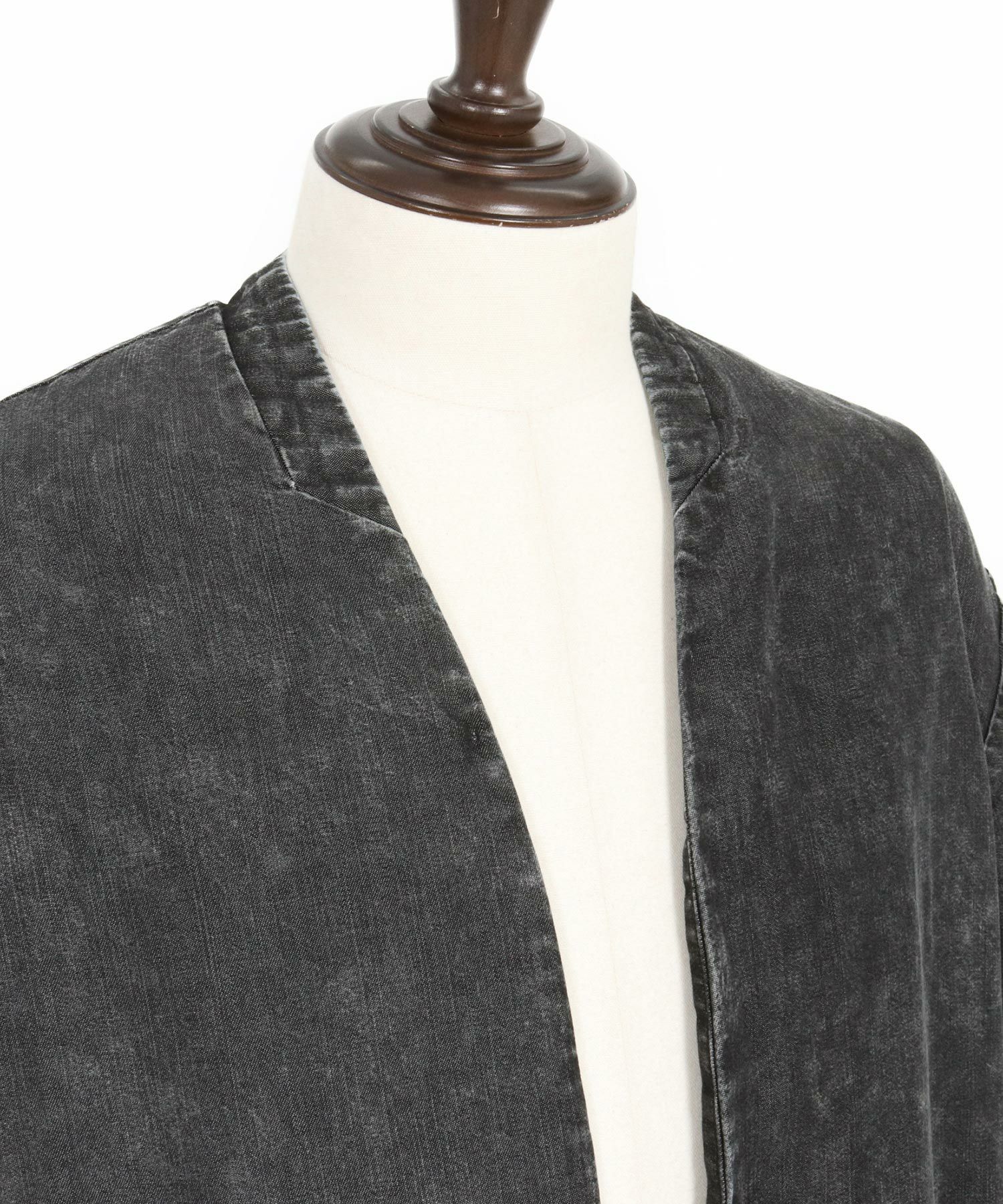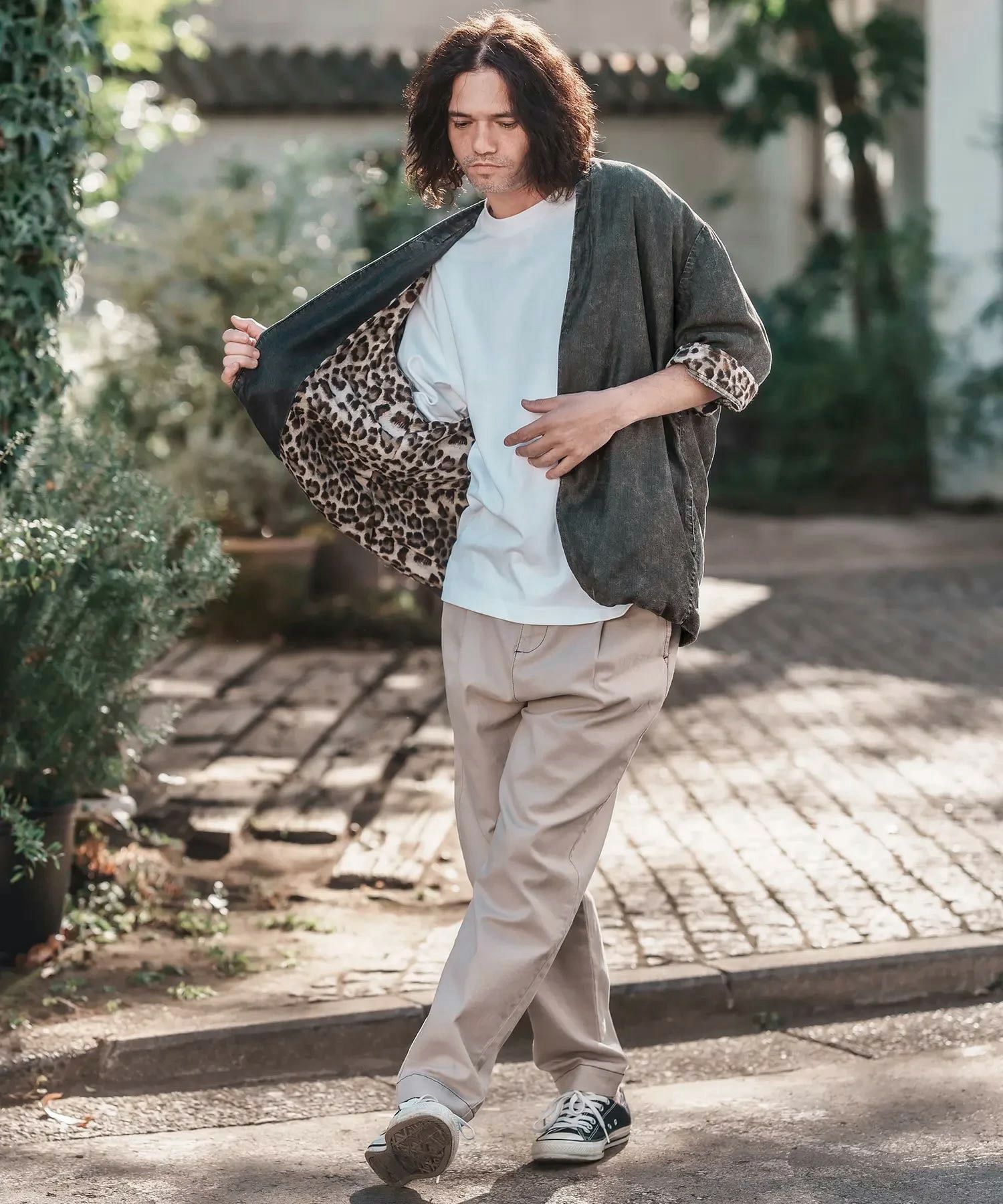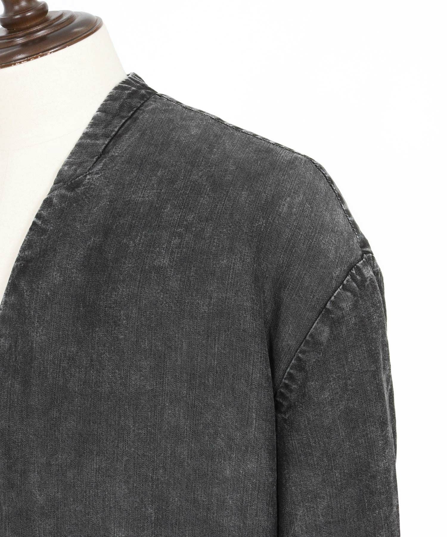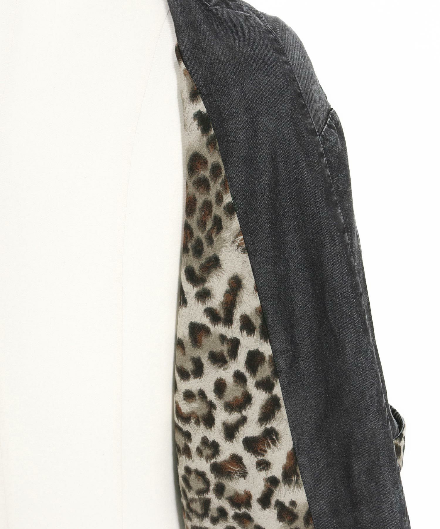 CAMBIO 【CAMBIO(カンビオ)】Silky Denim Leopard Accent 3-4 Sleeve No Collar Jacket ノーカラーシャツジャケット(MIU-251-029)