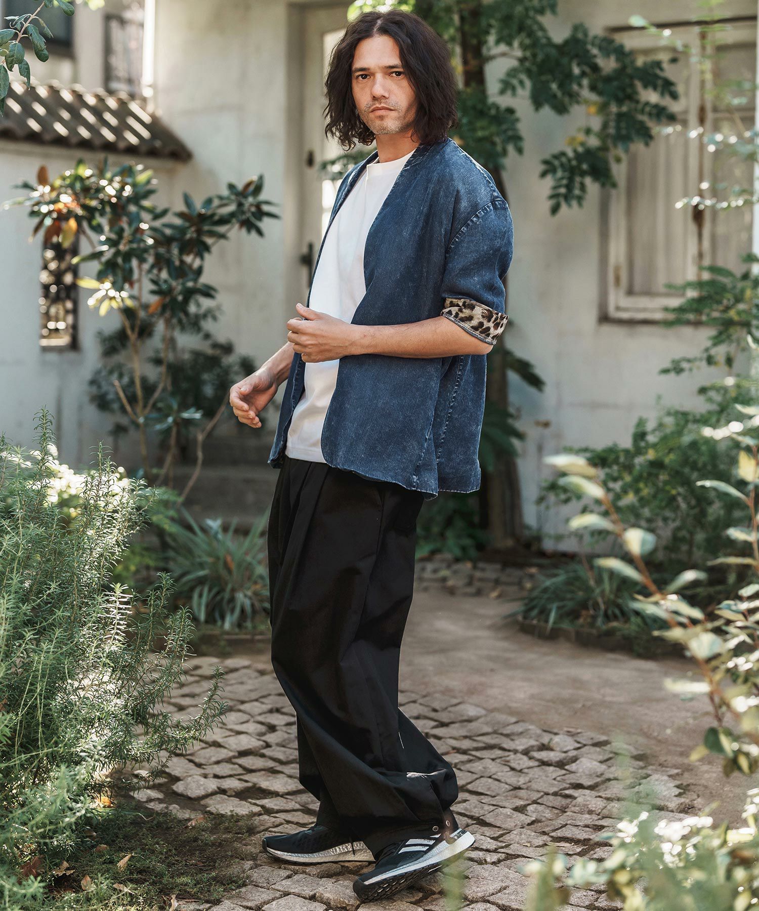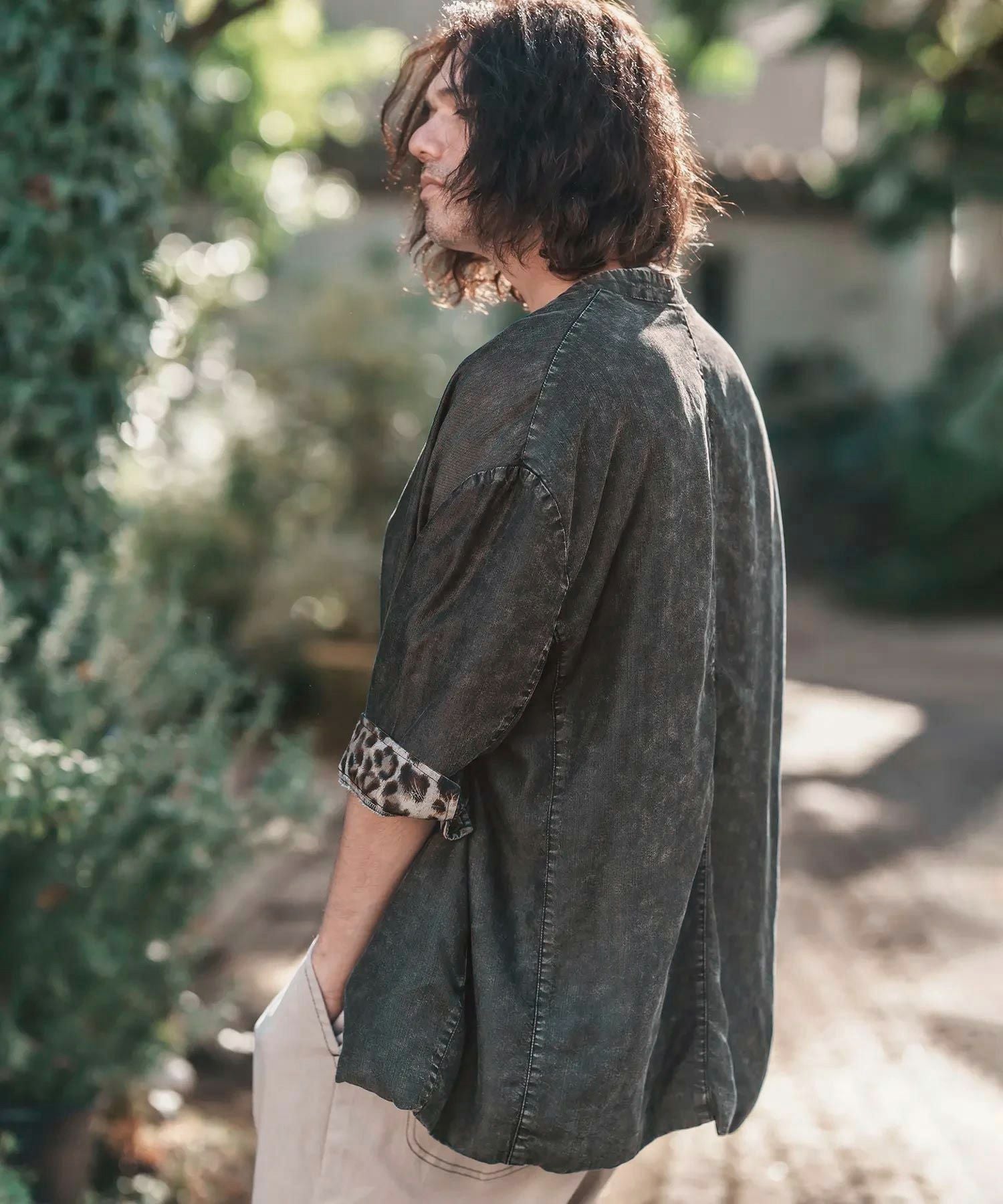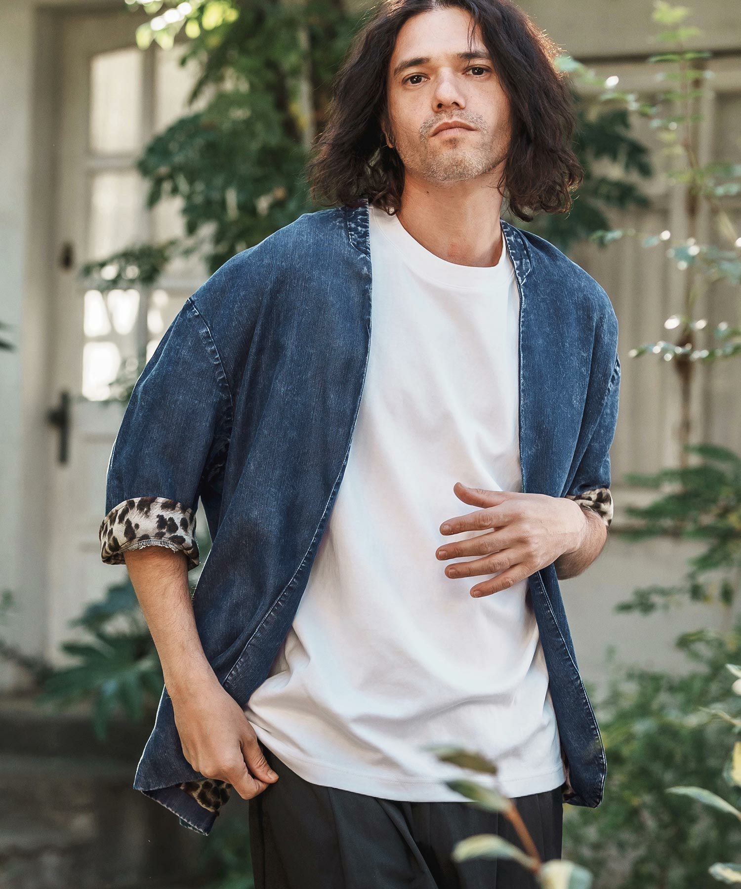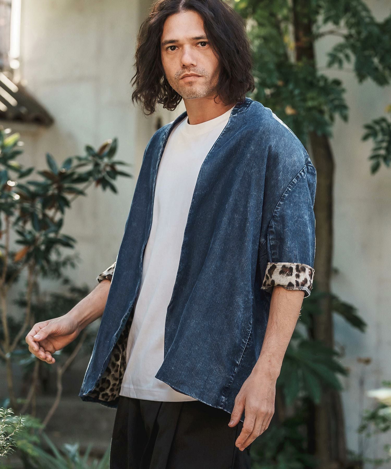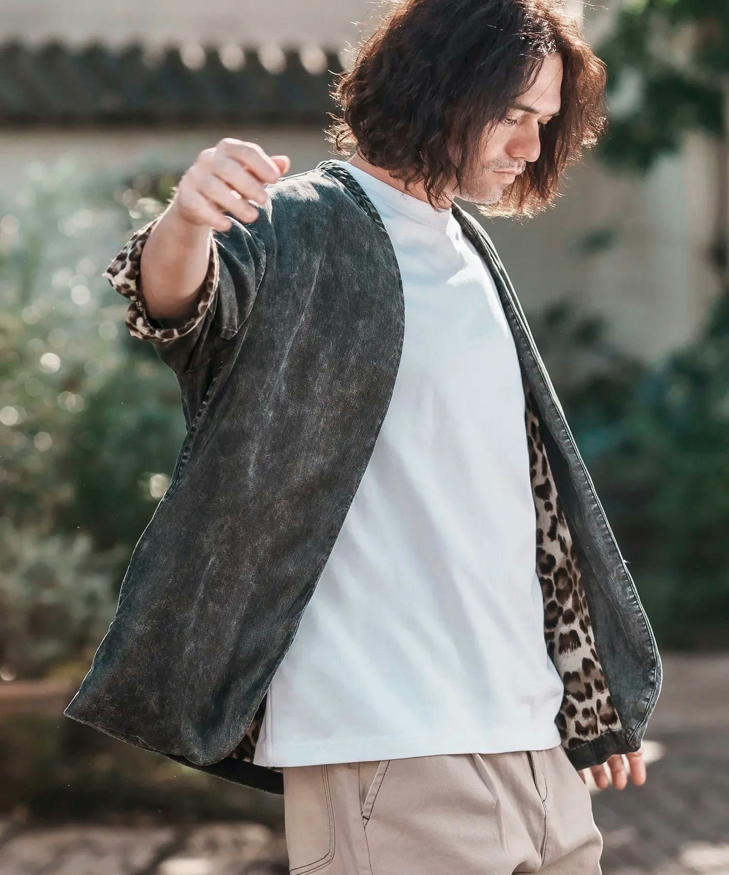 CAMBIO 【CAMBIO(カンビオ)】Silky Denim Leopard Accent 3-4 Sleeve No Collar Jacket ノーカラーシャツジャケット(MIU-251-029)