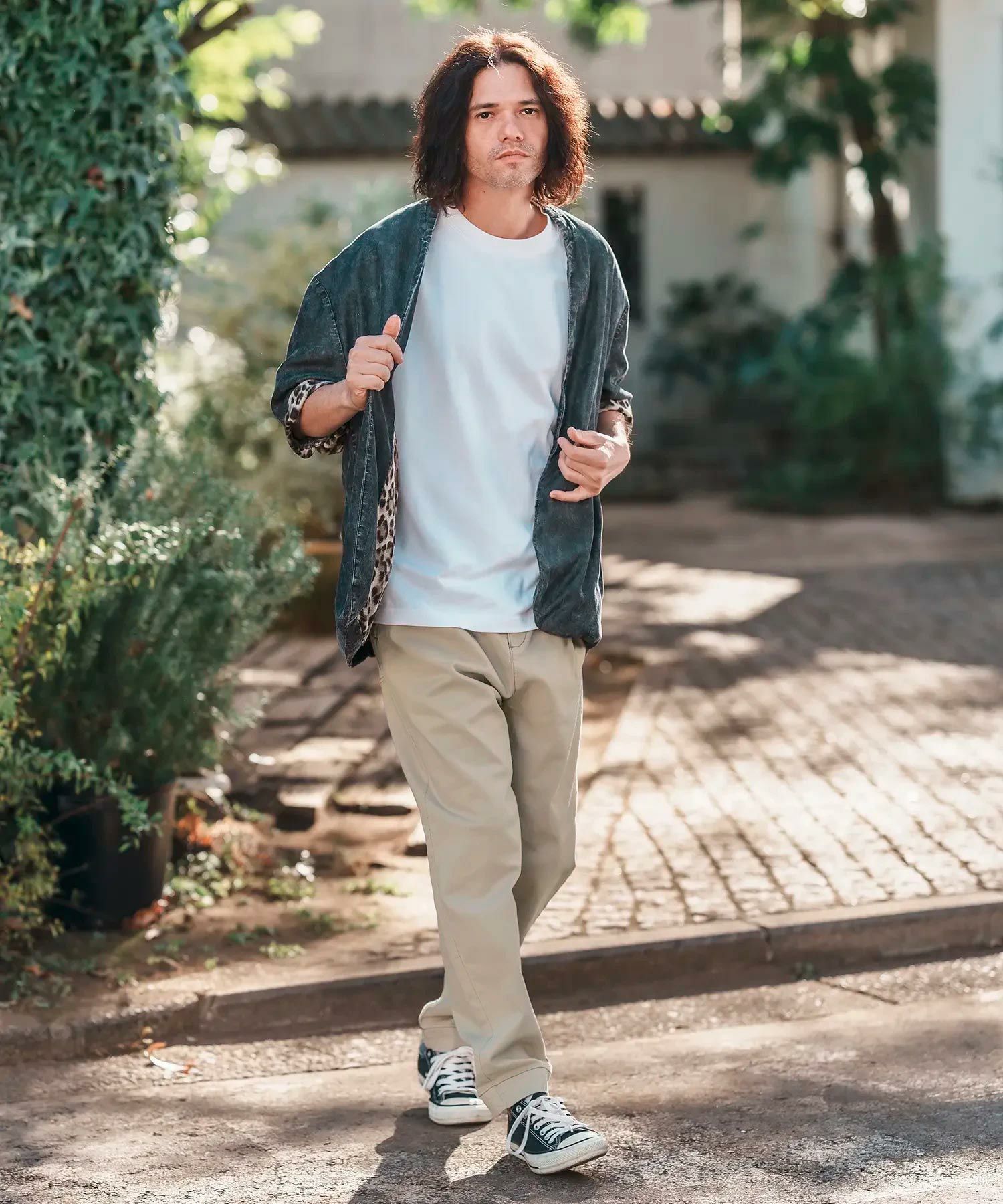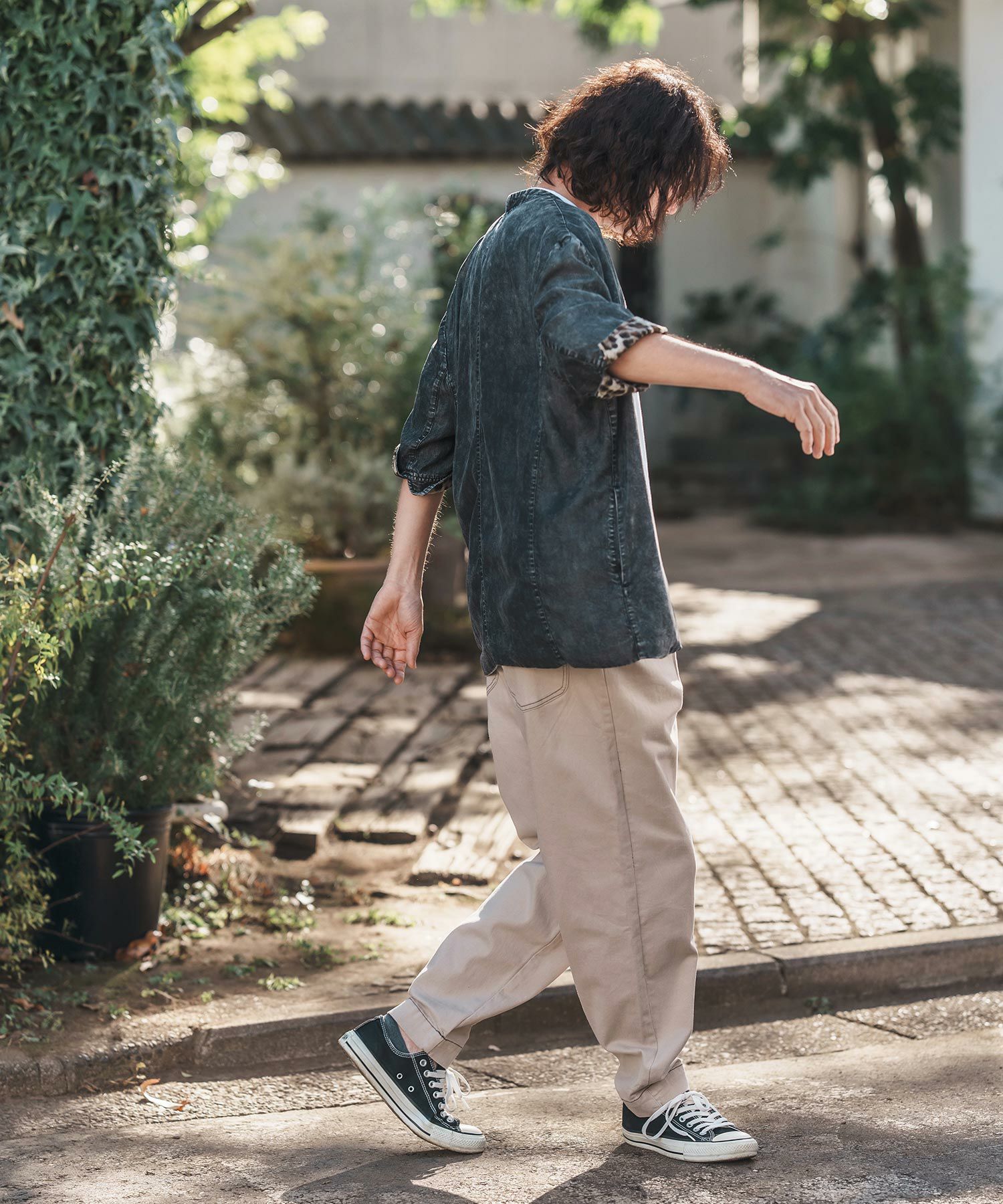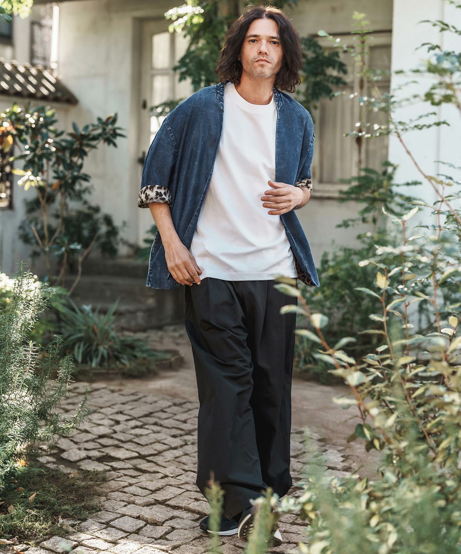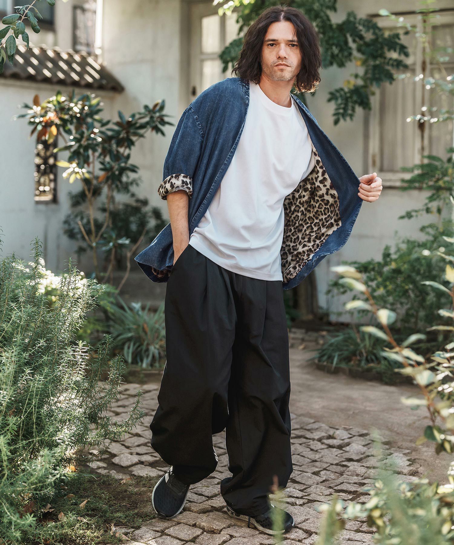CAMBIO 【CAMBIO(カンビオ)】Silky Denim Leopard Accent 3-4 Sleeve No Collar Jacket ノーカラーシャツジャケット(MIU-251-029)