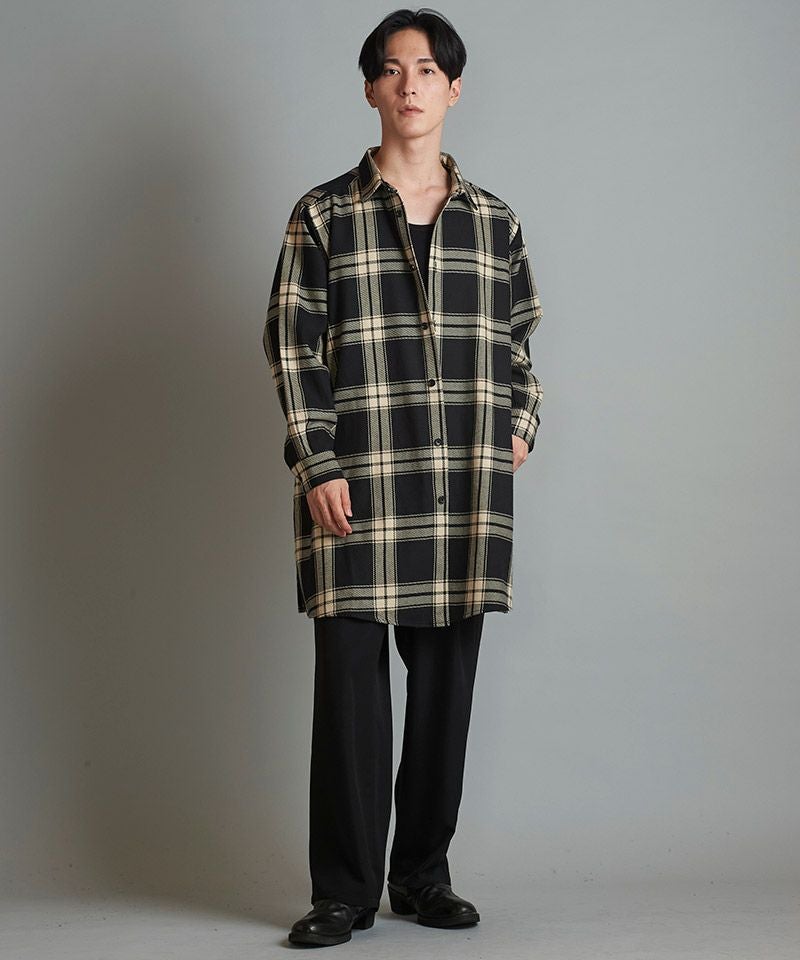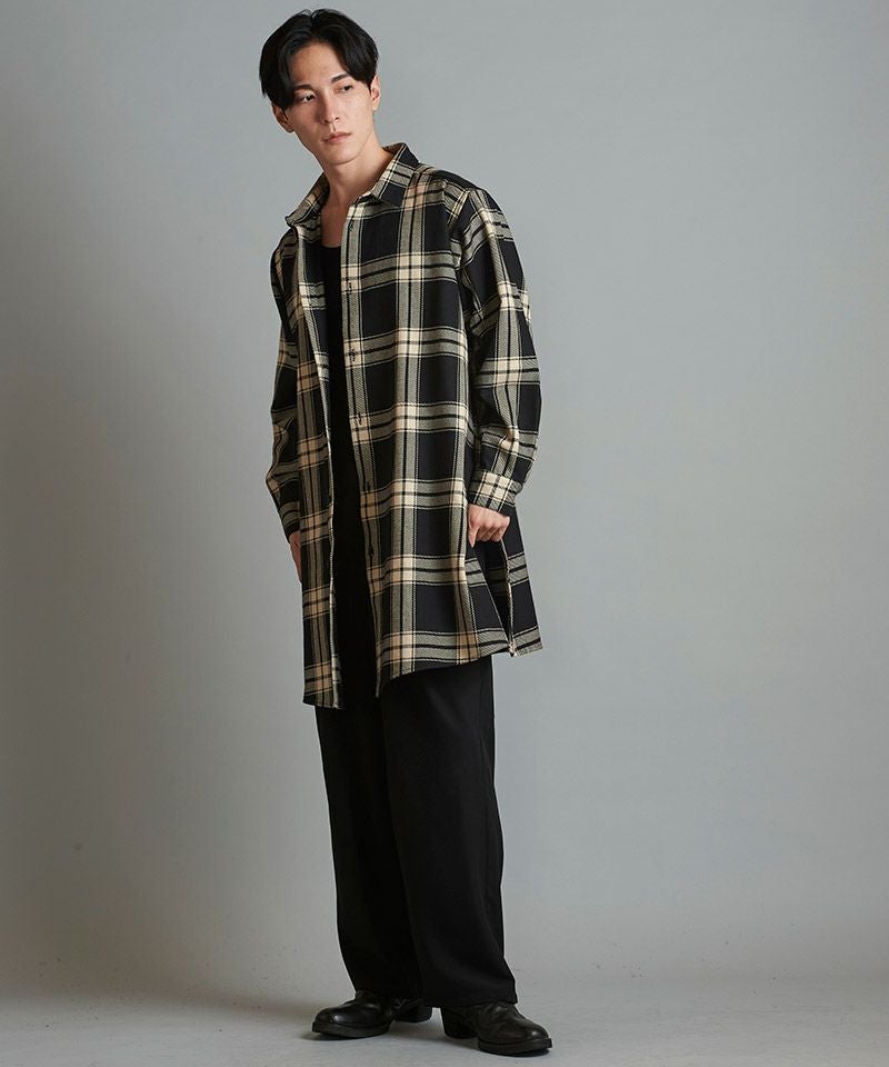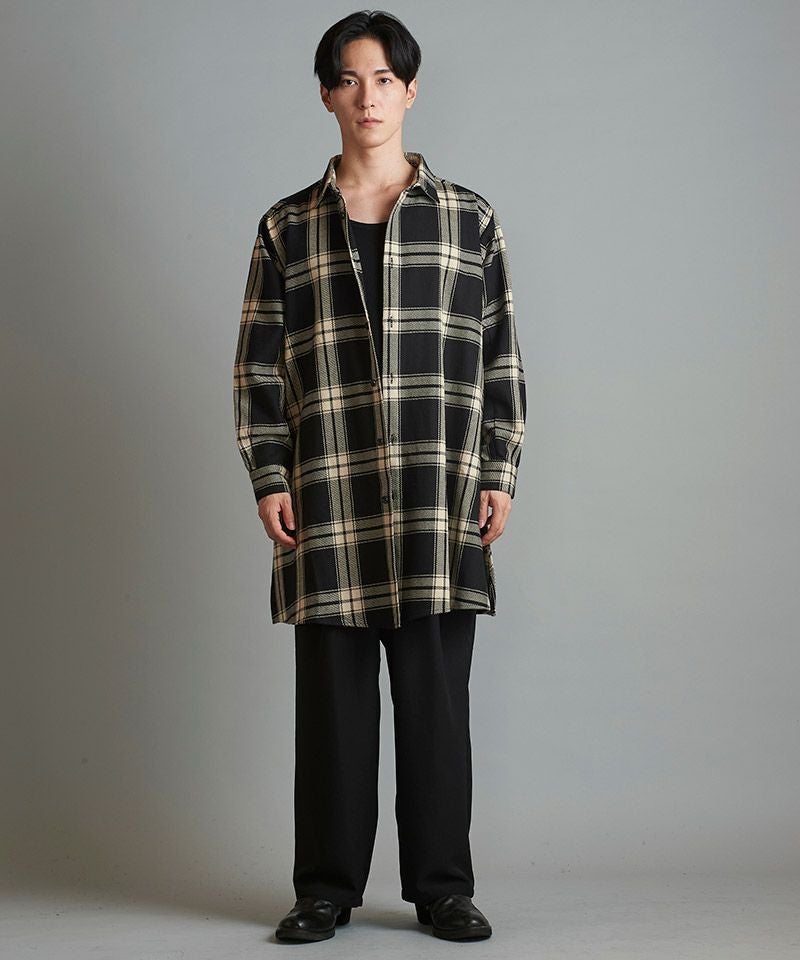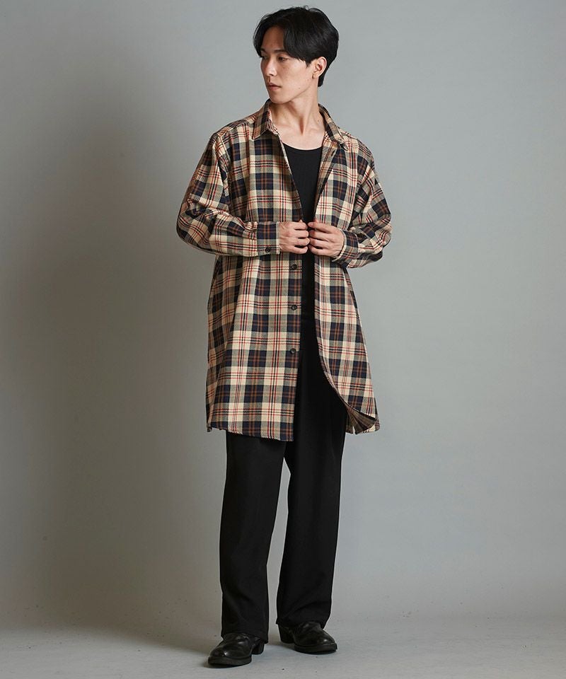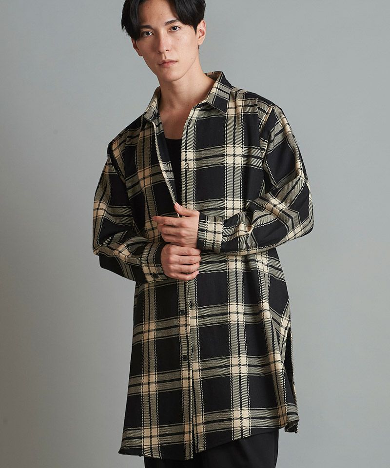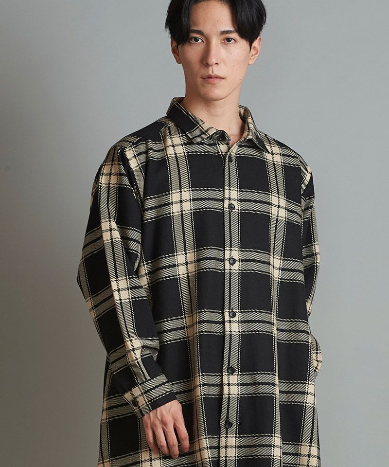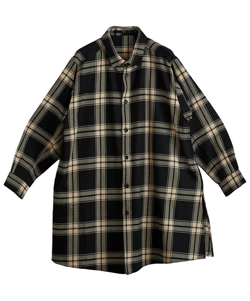 NO ID. 60%OFF【NO ID.(ノーアイディー)】スリットロングBIGチェックSH シャツ(853006-163S)