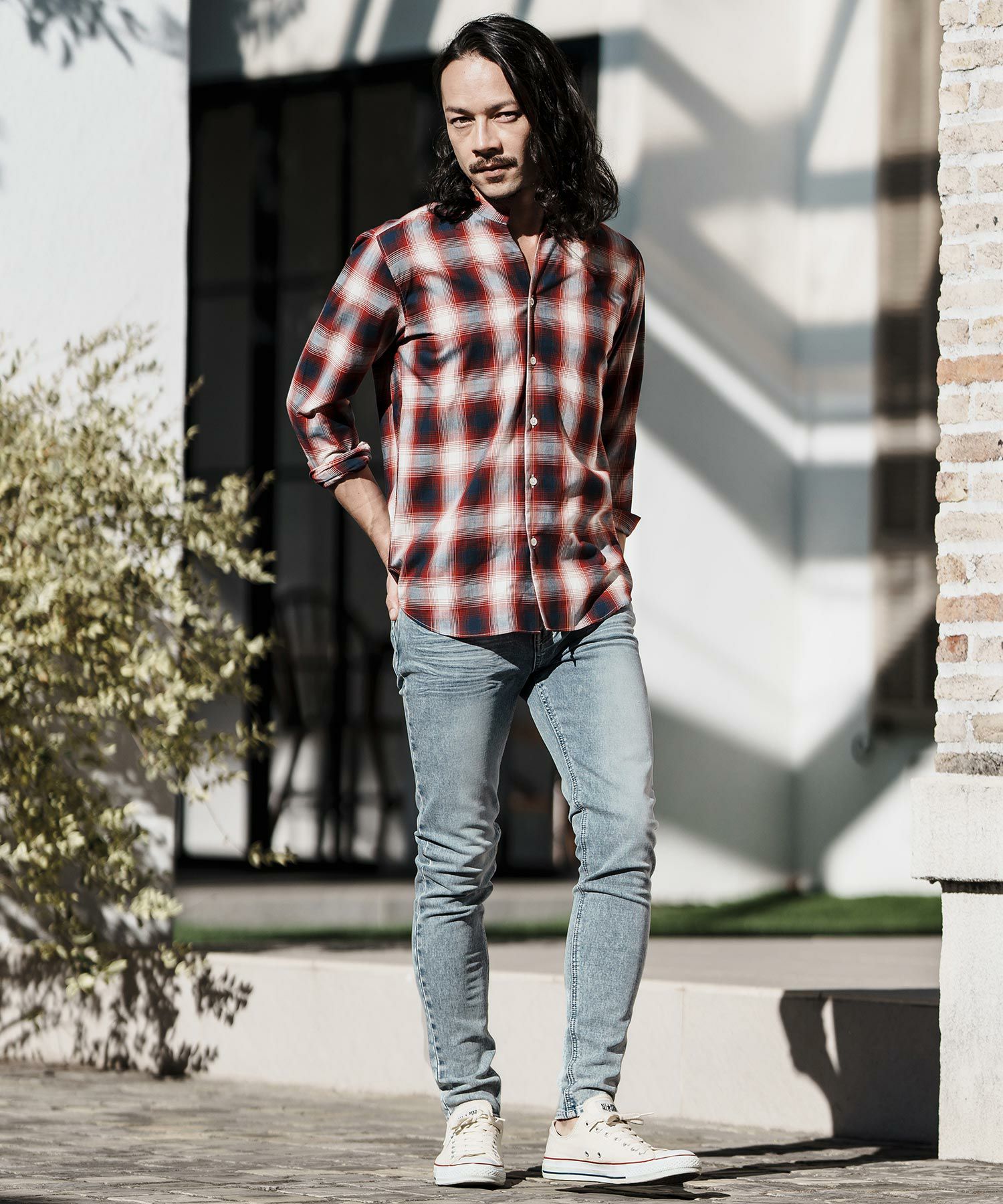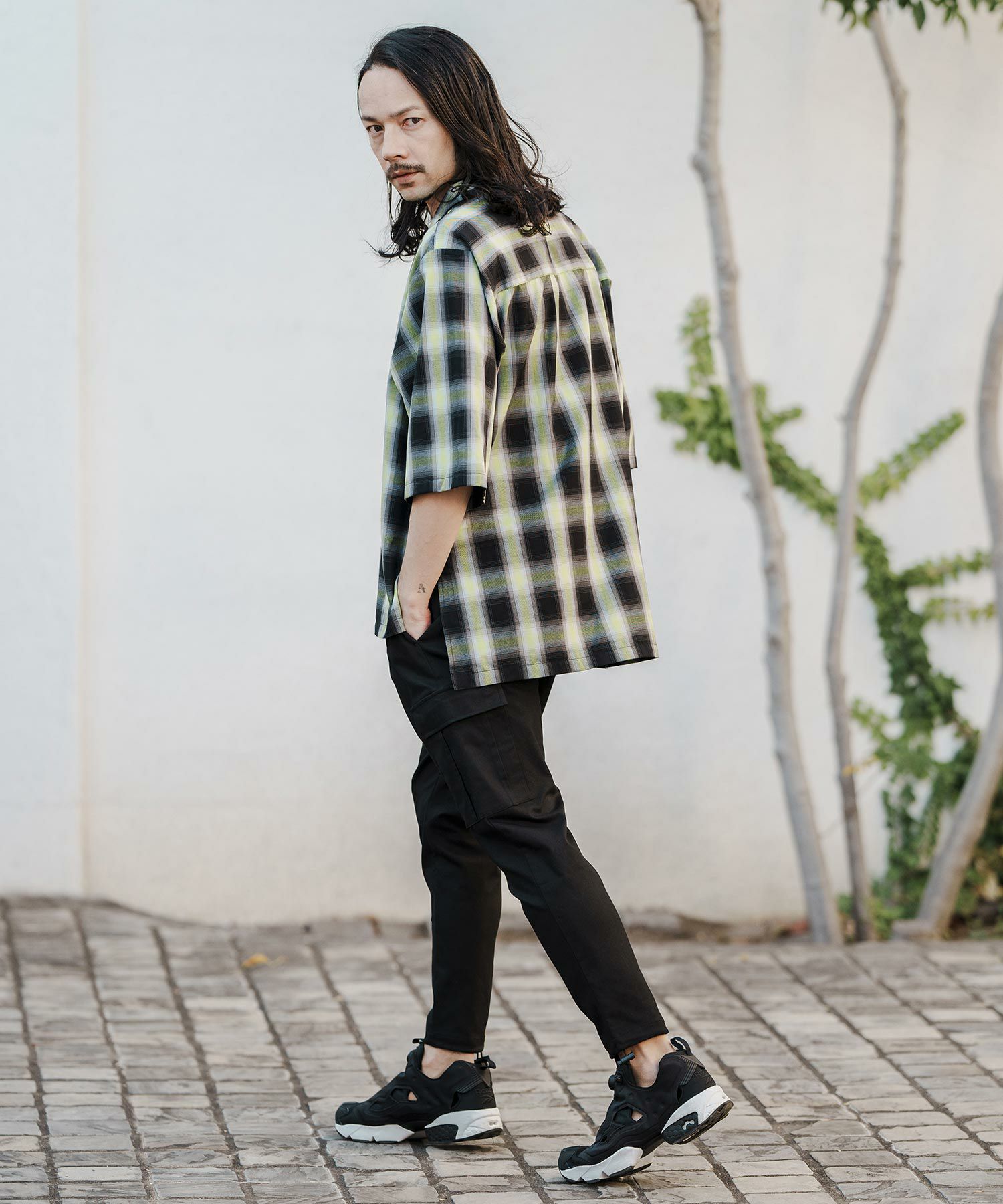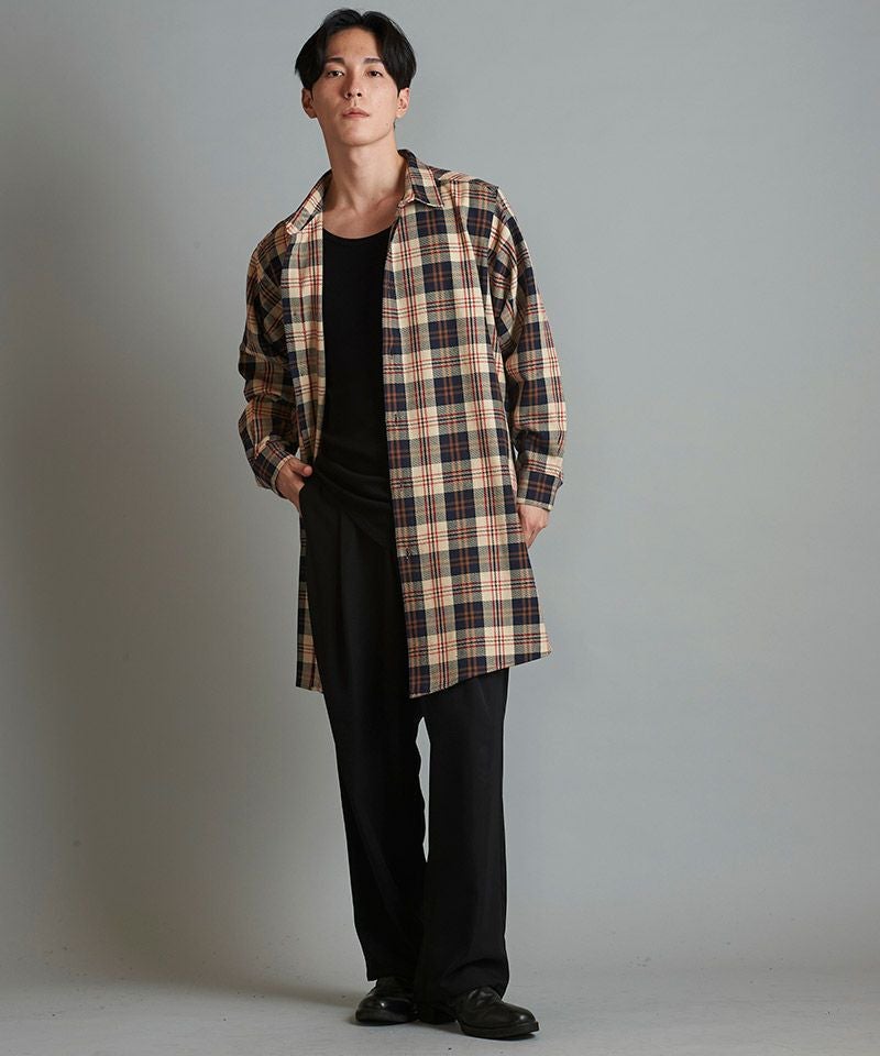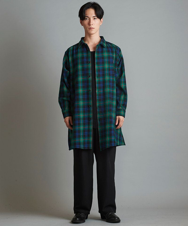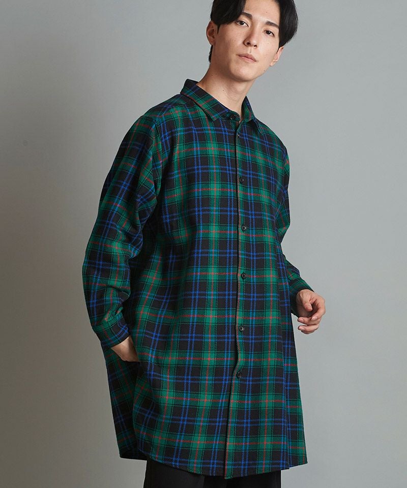 NO ID. 60%OFF【NO ID.(ノーアイディー)】スリットロングBIGチェックSH シャツ(853006-163S)