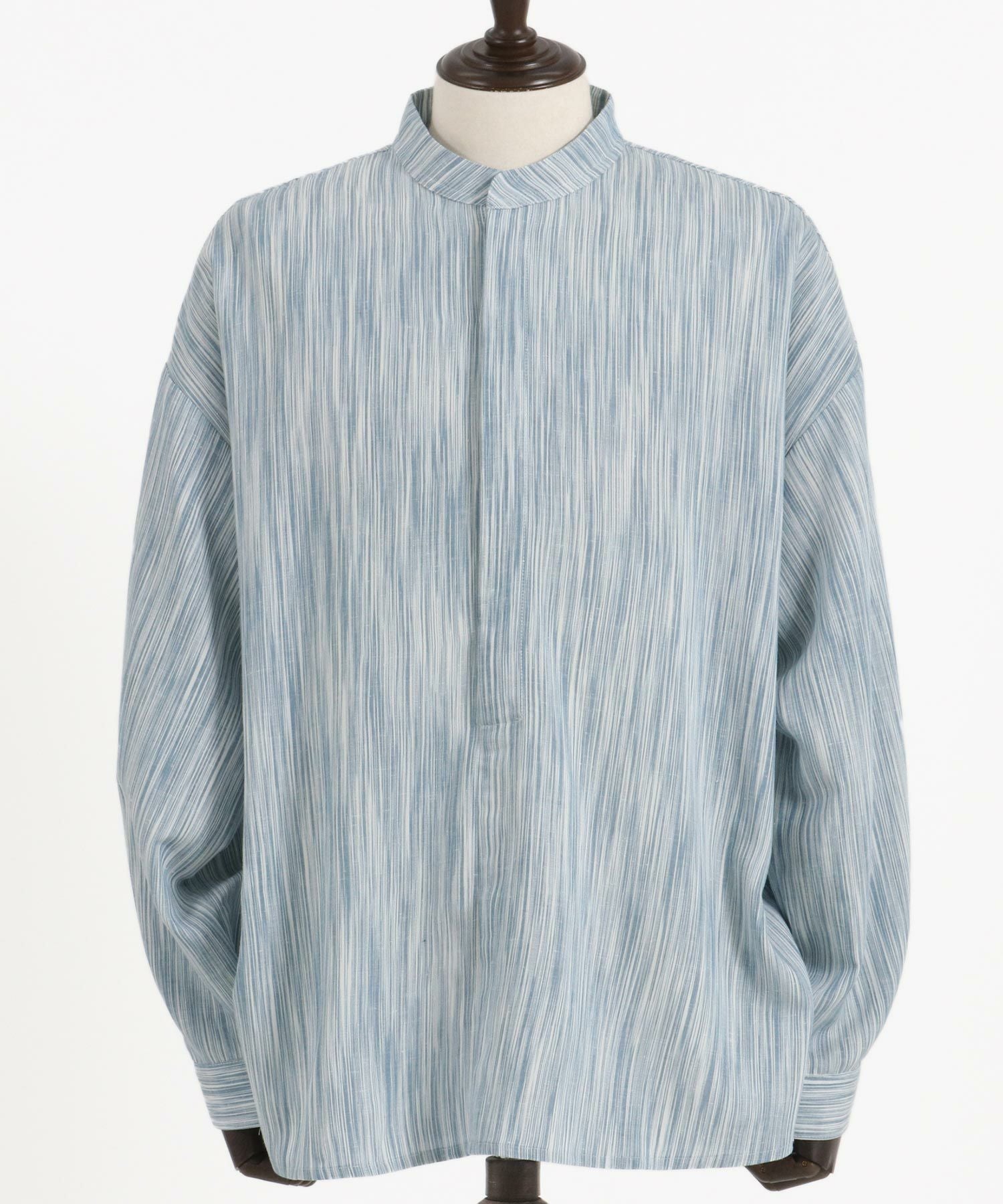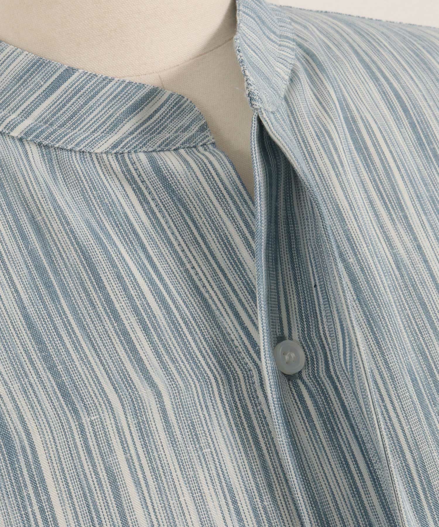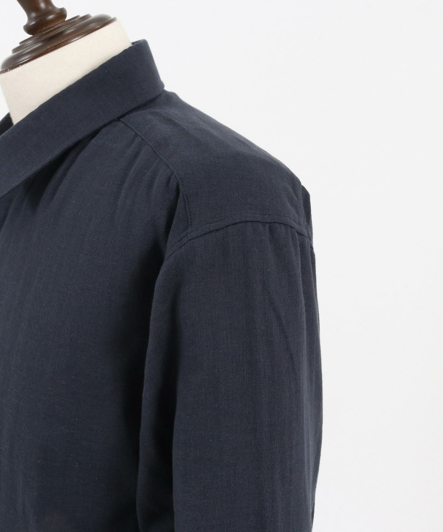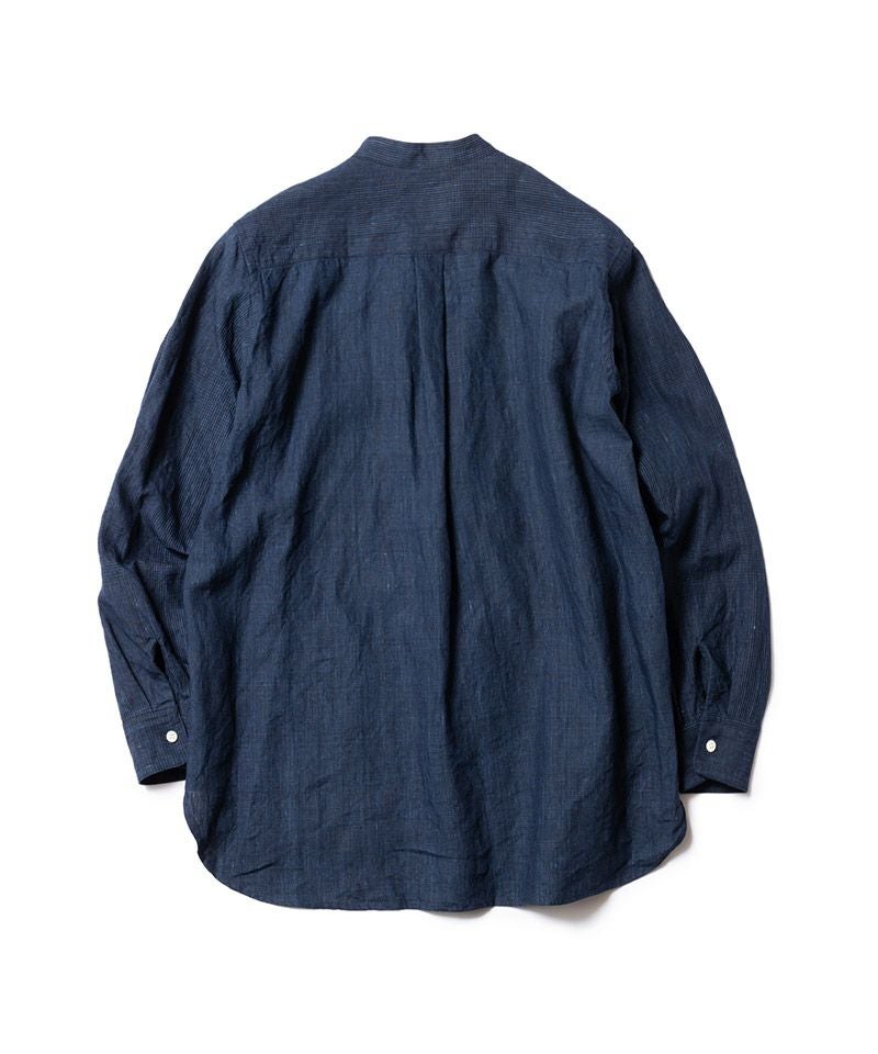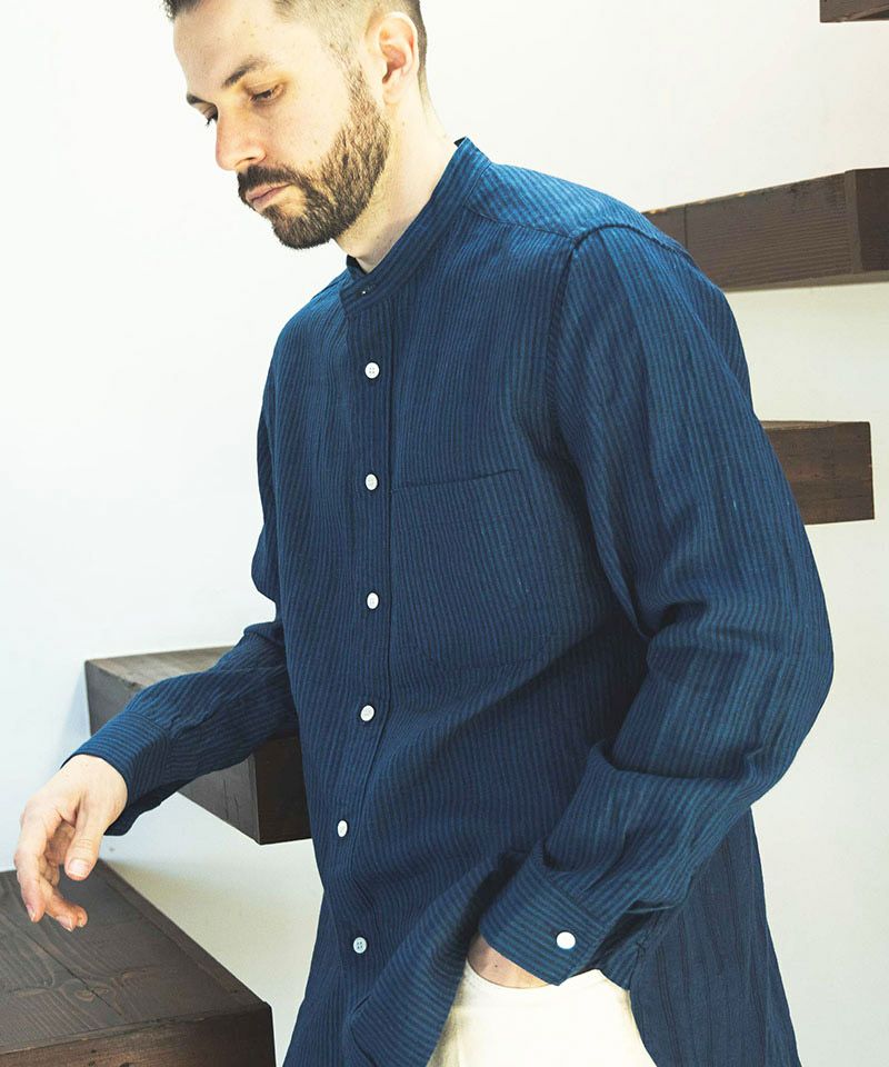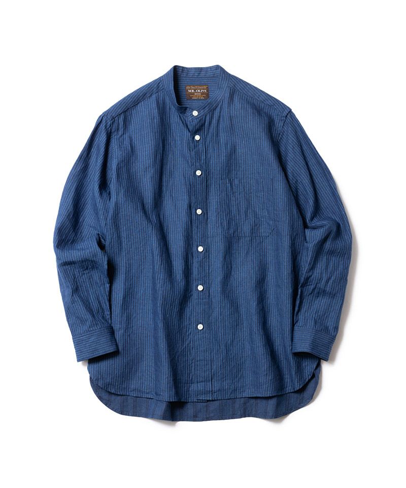 MROLIVE 50%OFF【MROLIVE(ミスターオリーブ)】CLASSIC PATTERN INDIGO LINEN - BAND COLLAR SHIRT バンドカラーシャツ(M241114)