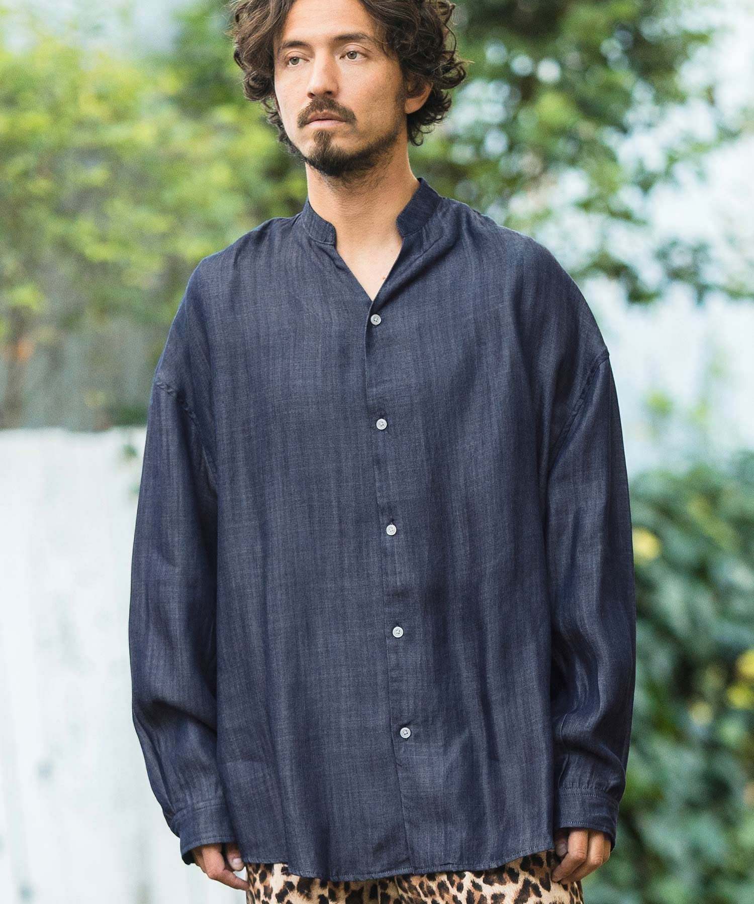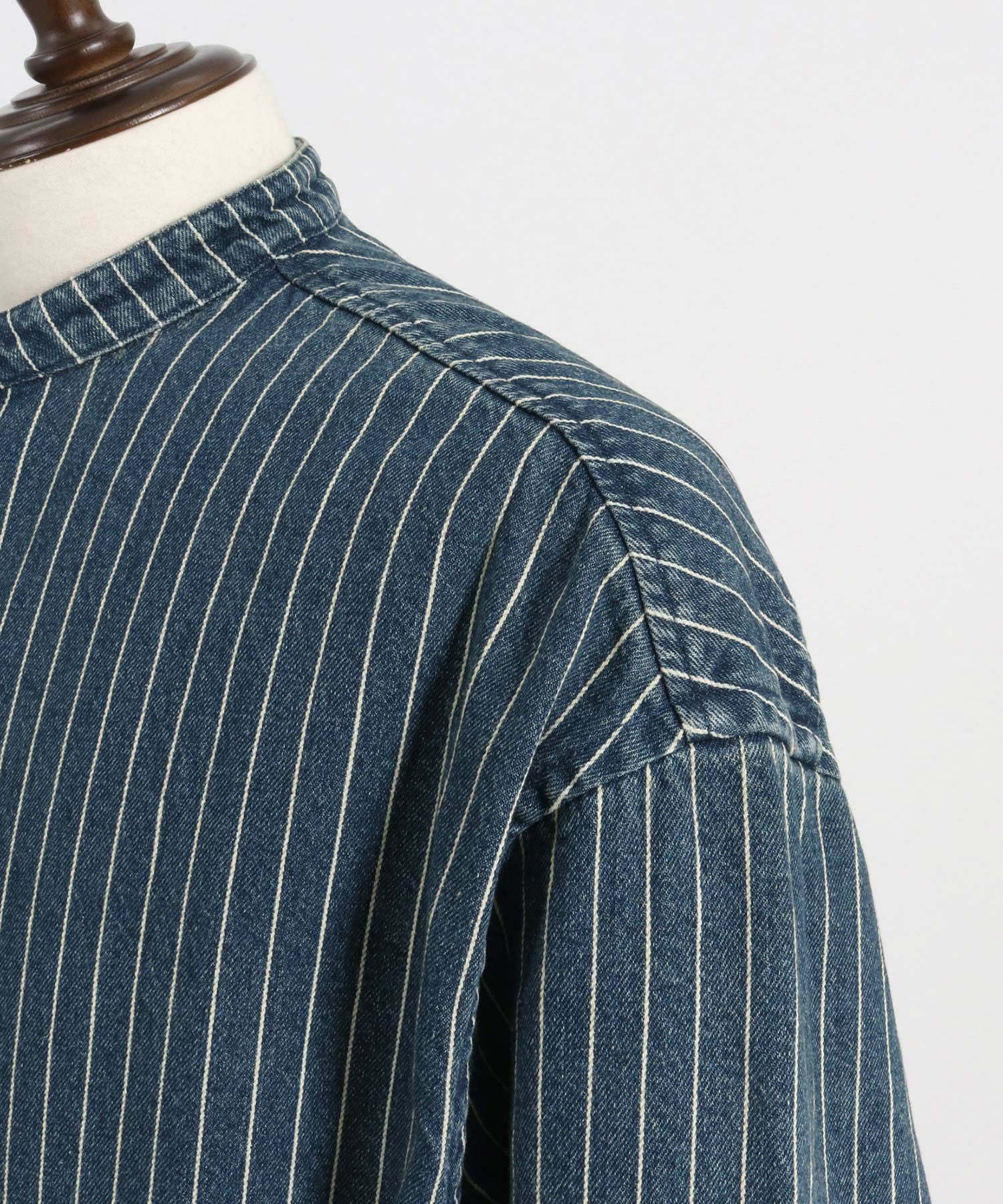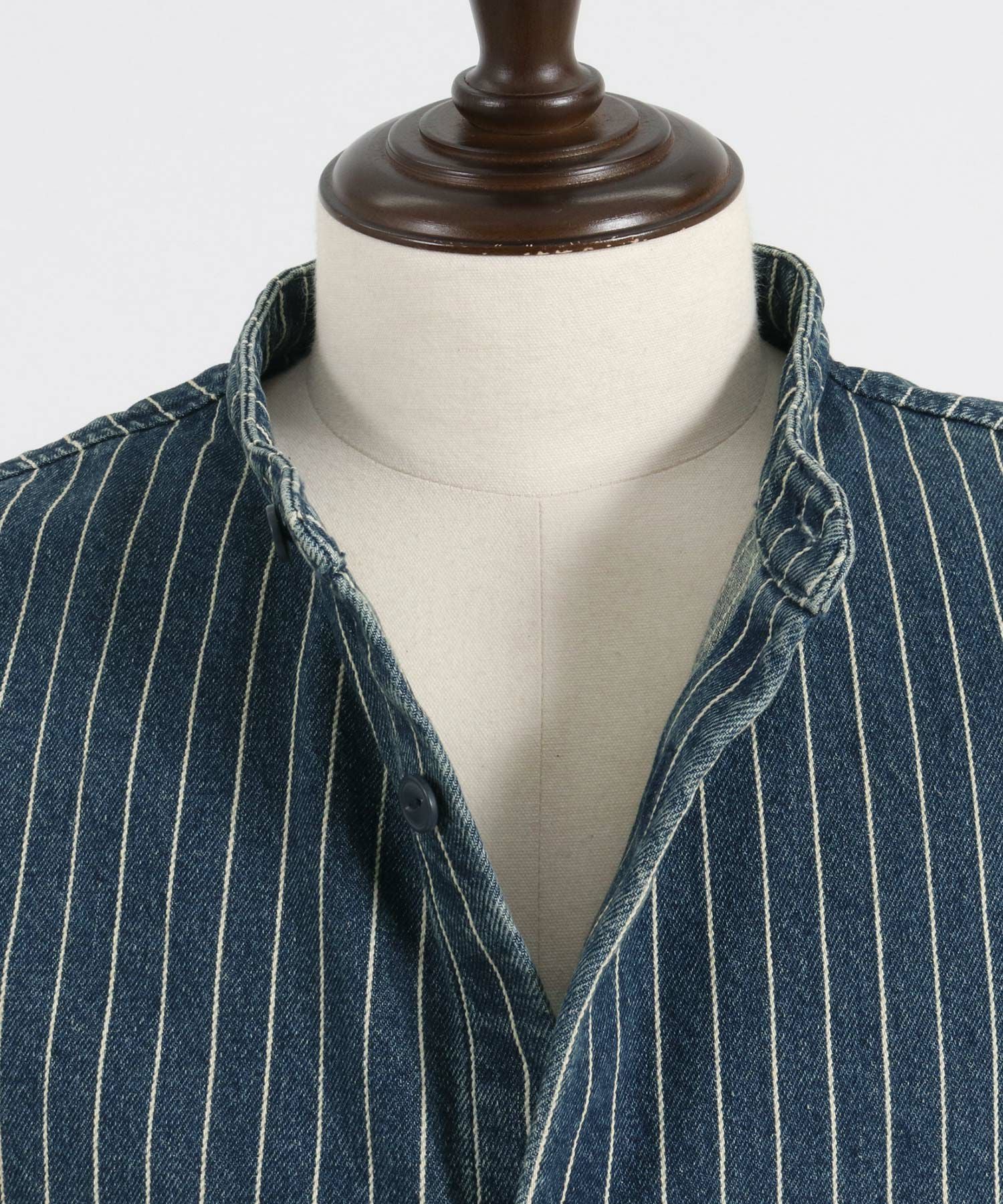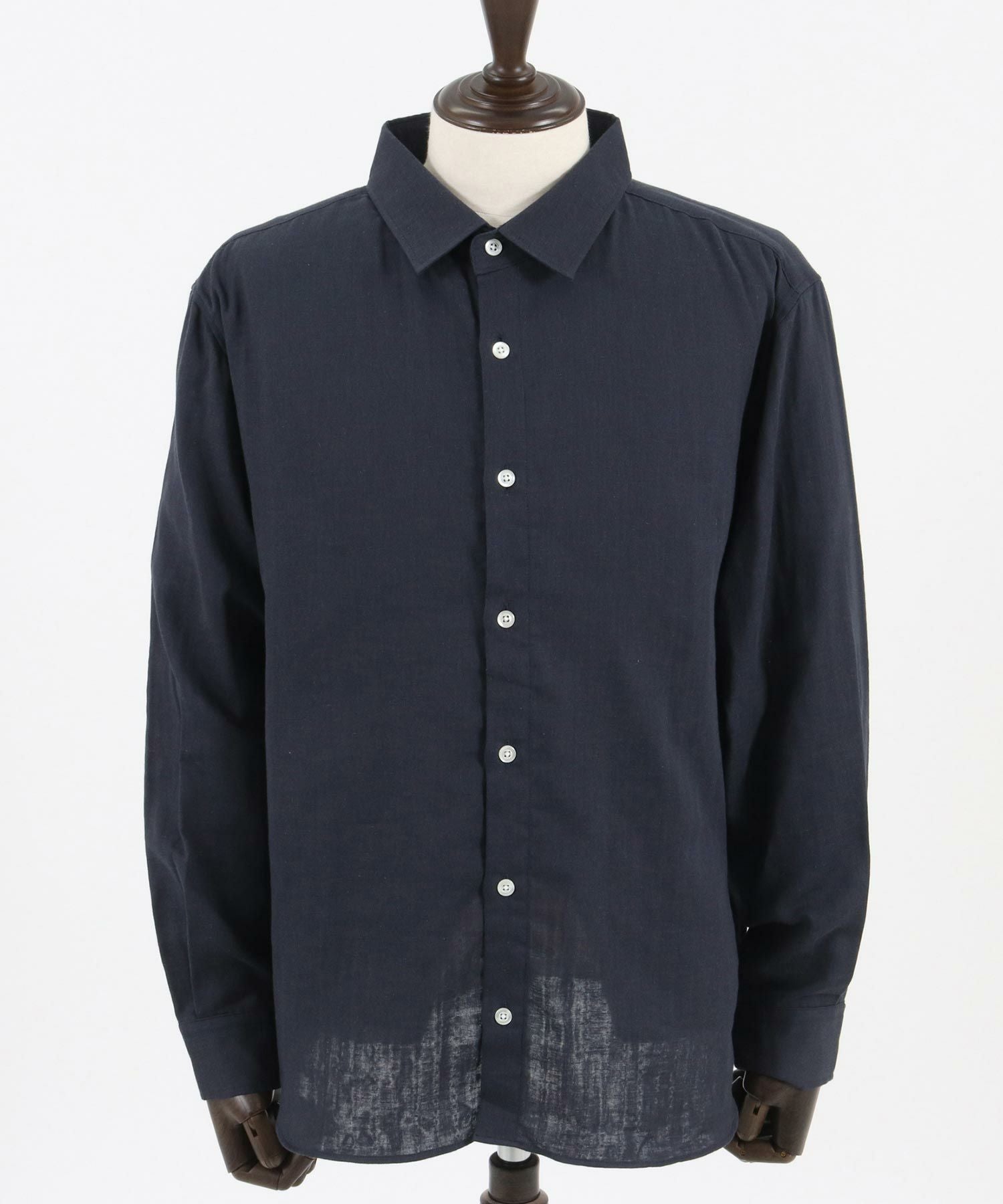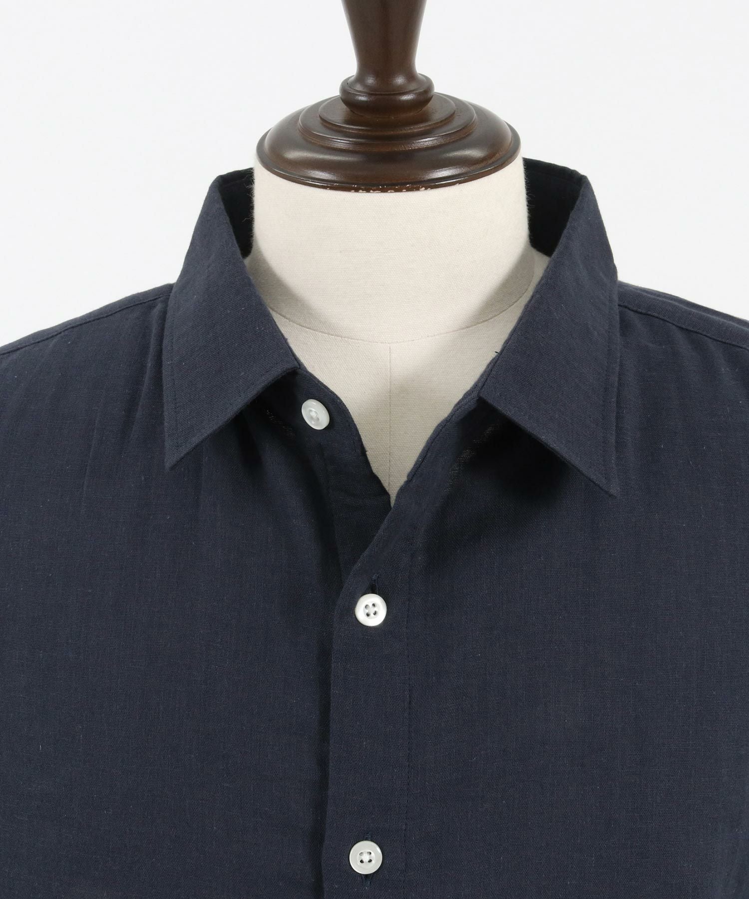 MROLIVE 50%OFF【MROLIVE(ミスターオリーブ)】CLASSIC PATTERN INDIGO LINEN - BAND COLLAR SHIRT バンドカラーシャツ(M241114)