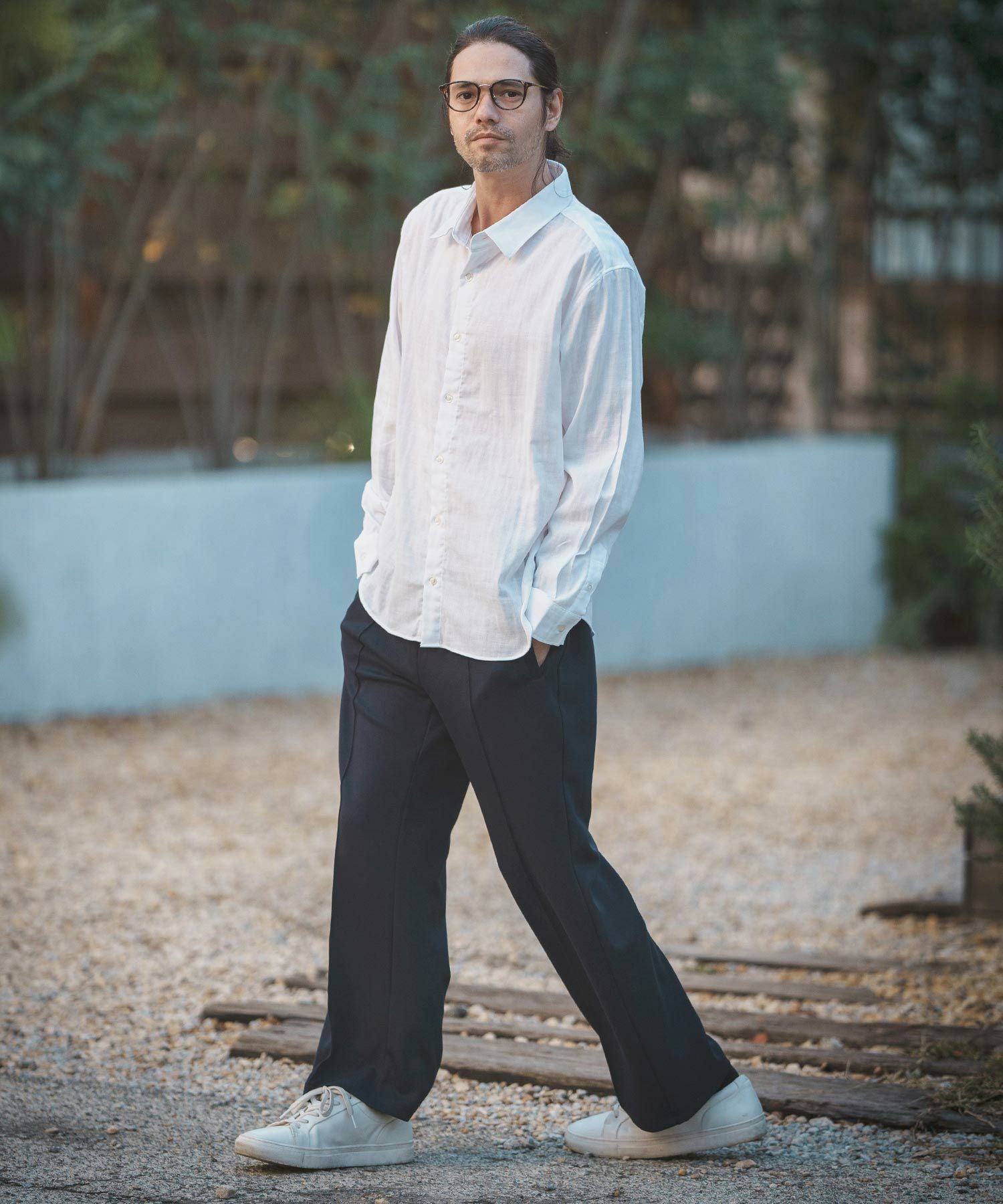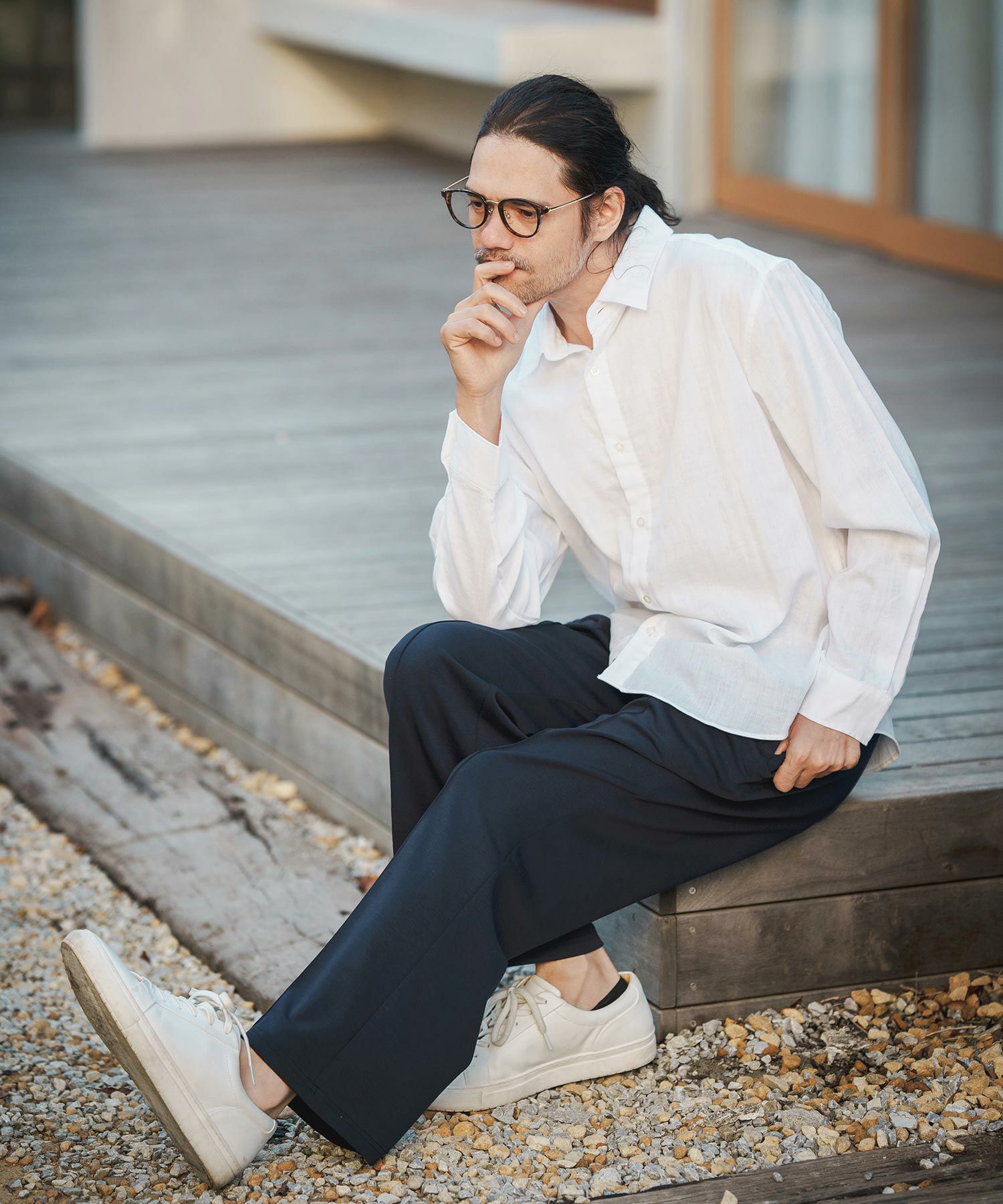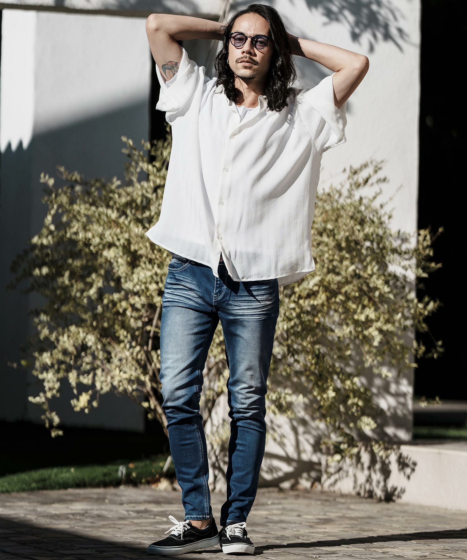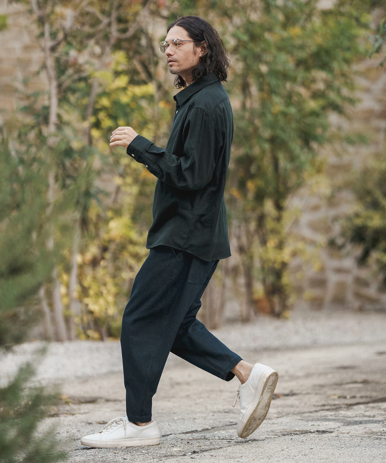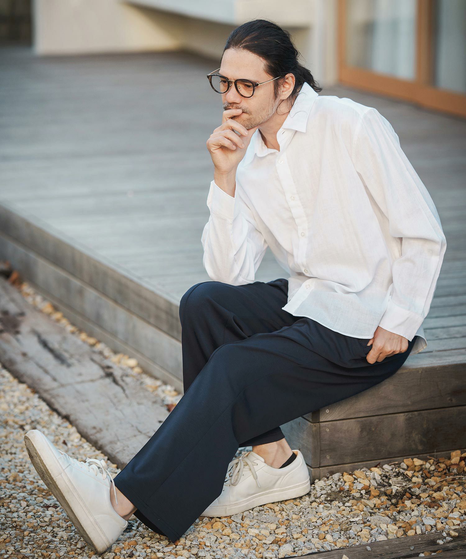 MROLIVE 50%OFF【MROLIVE(ミスターオリーブ)】CLASSIC PATTERN INDIGO LINEN - BAND COLLAR SHIRT バンドカラーシャツ(M241114)