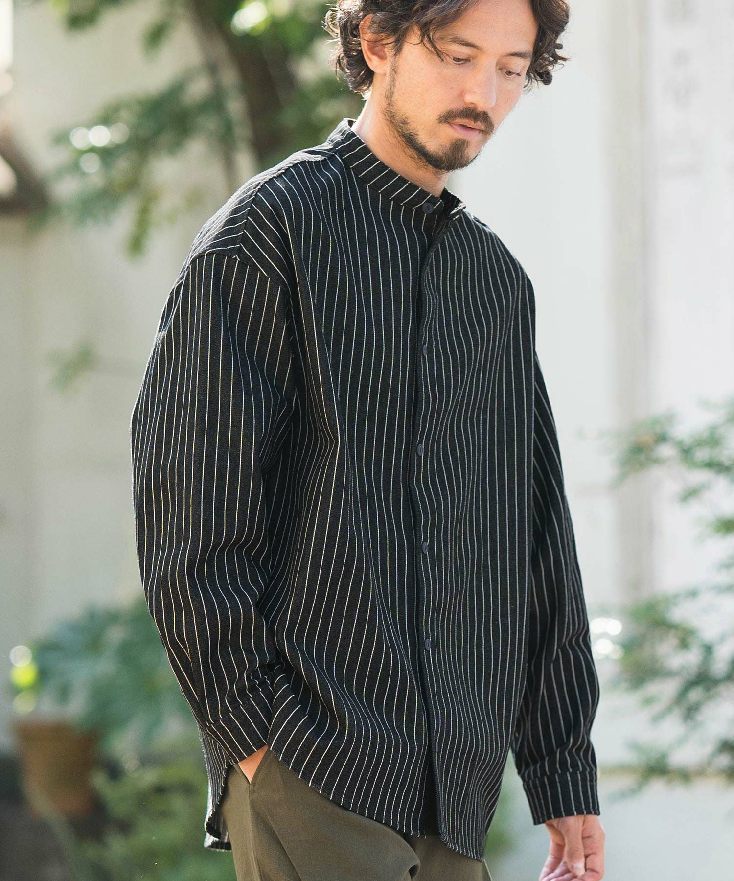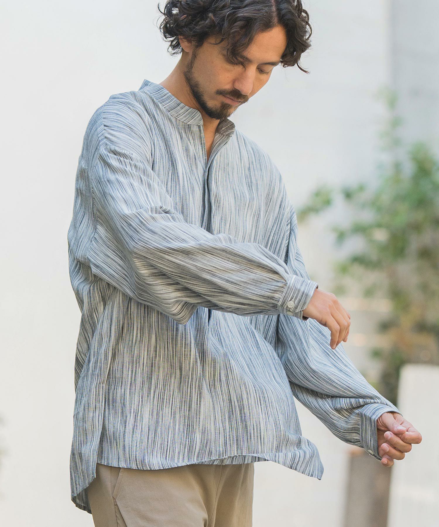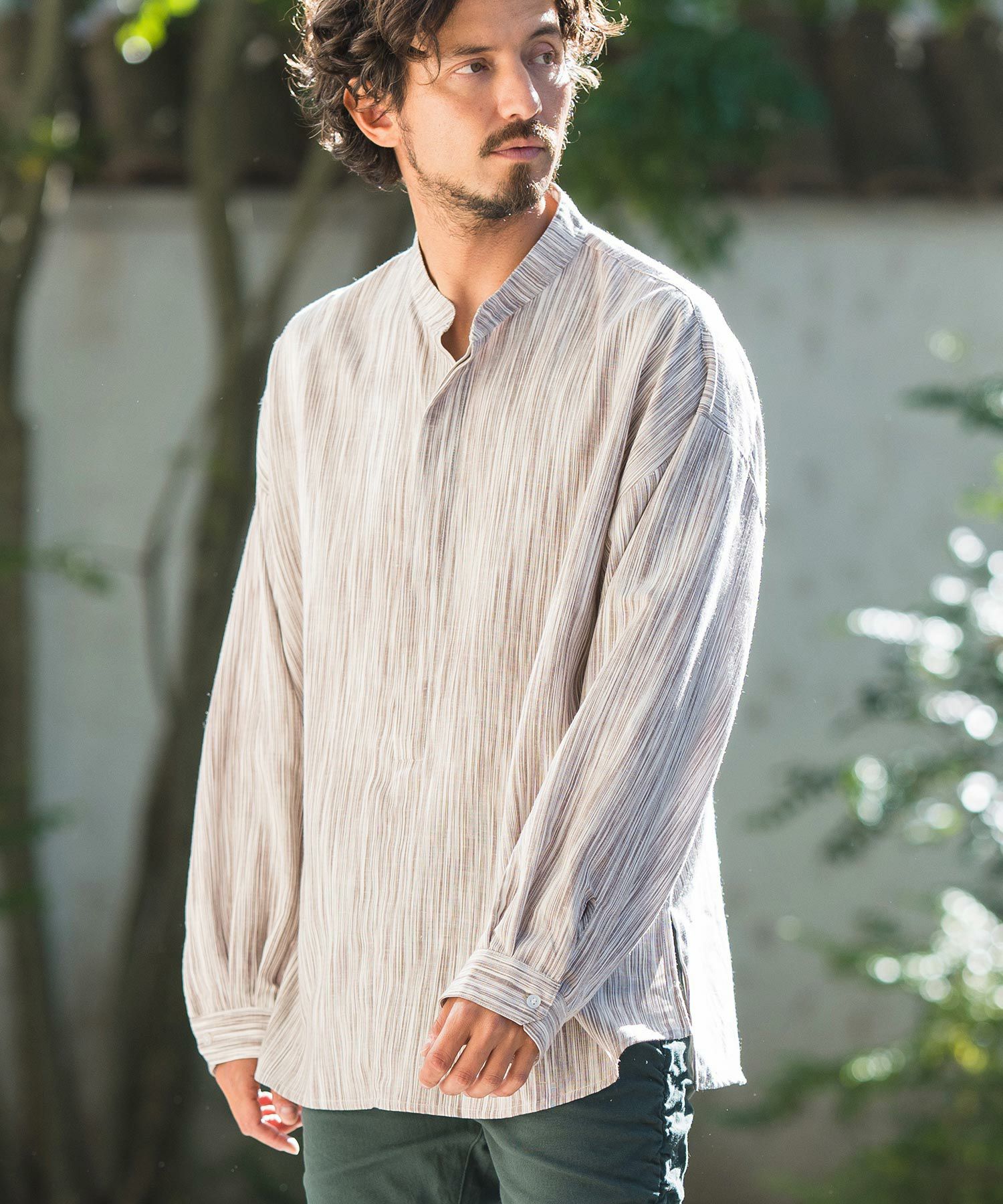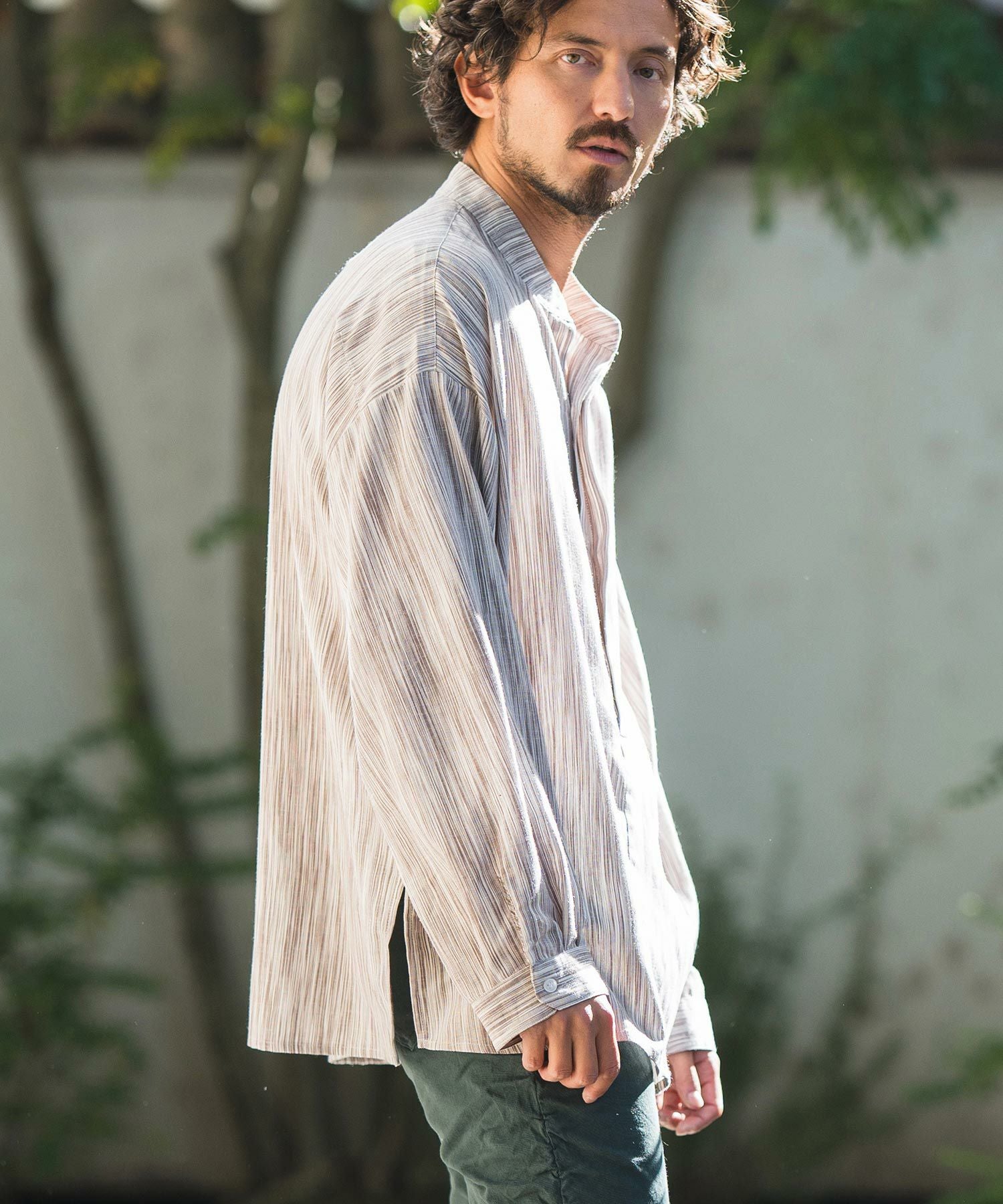 CAMBIO 50%OFF【CAMBIO(カンビオ)】バンドカラーストライププルオーバー シャツ(CMB-R0073)