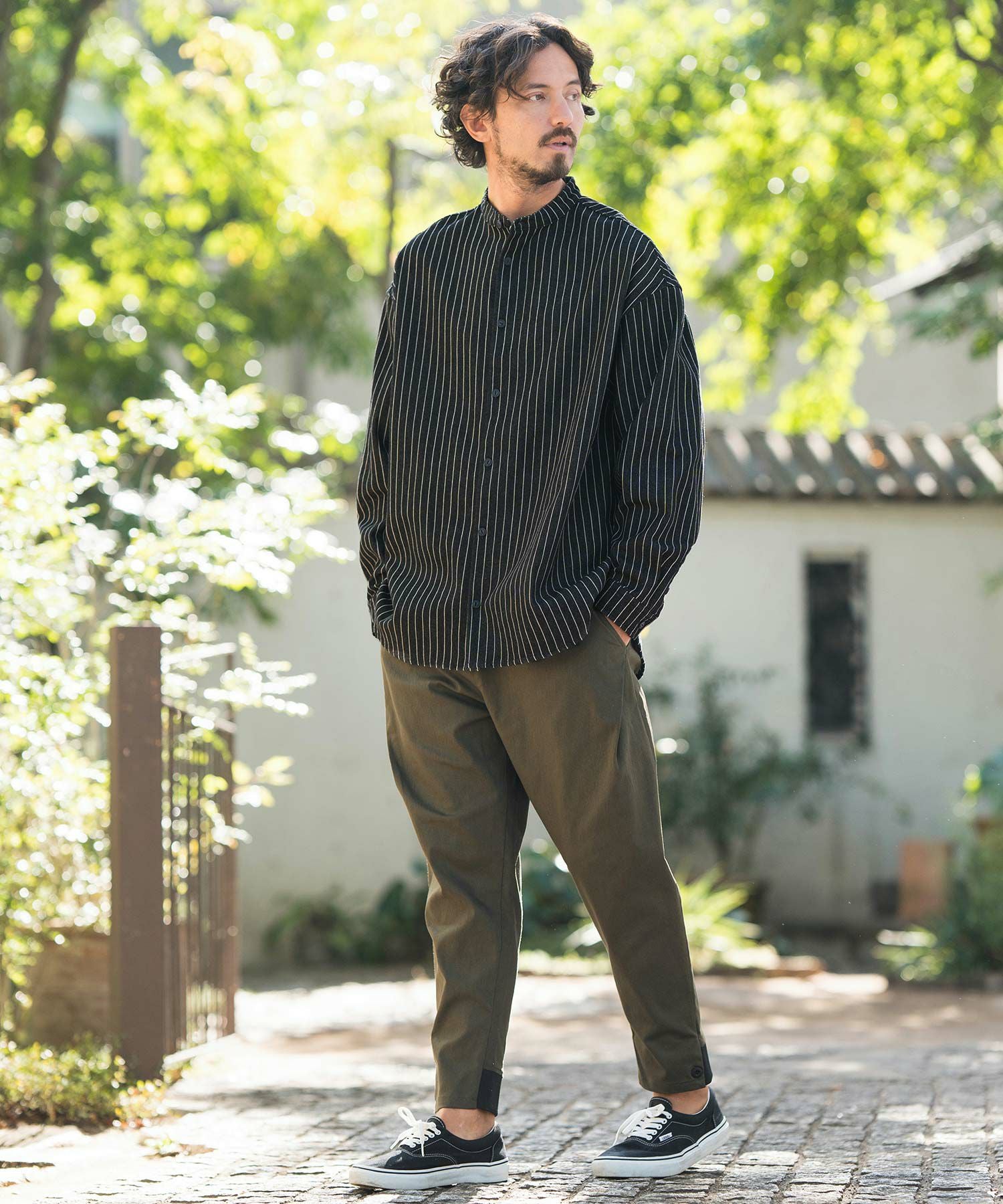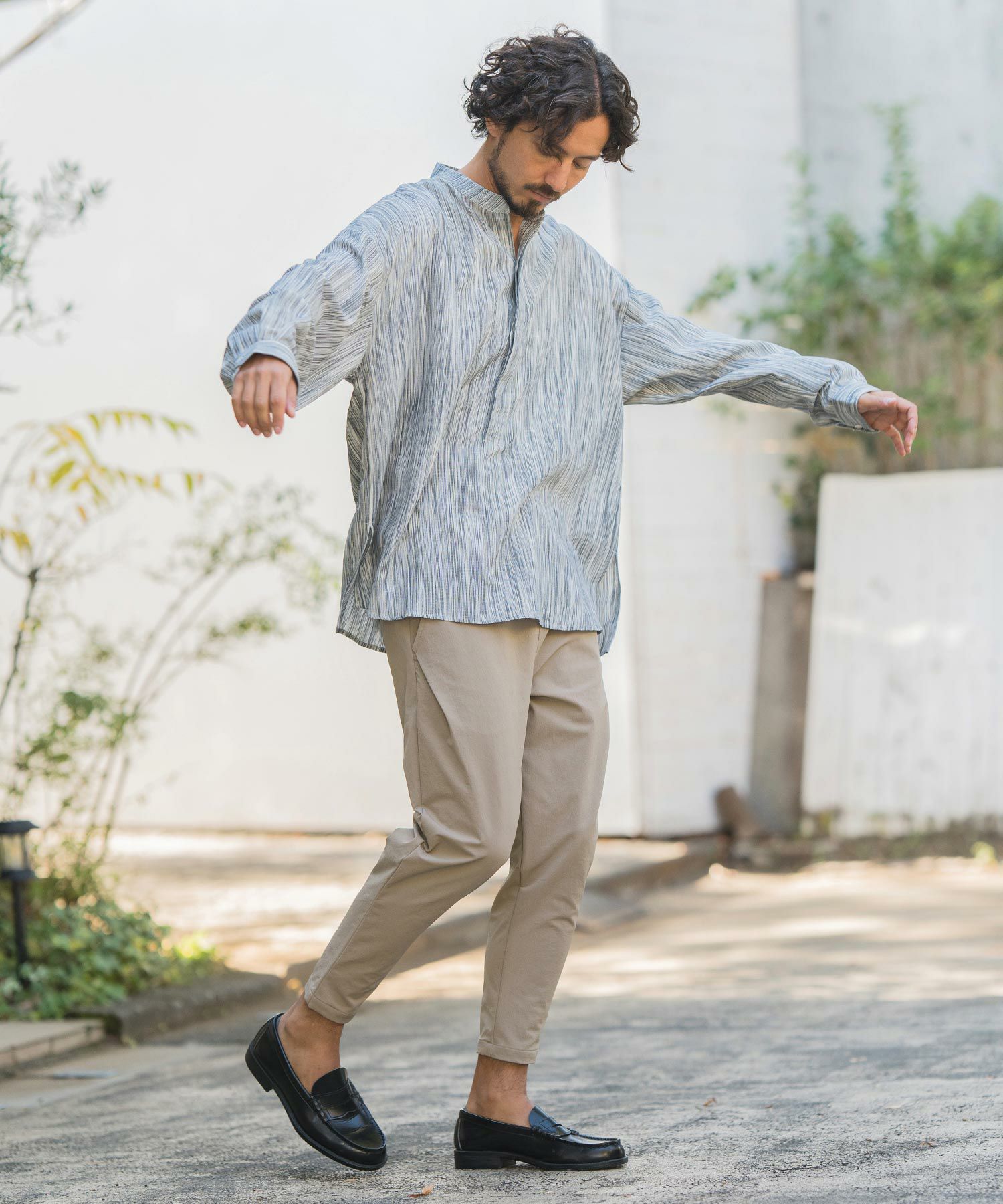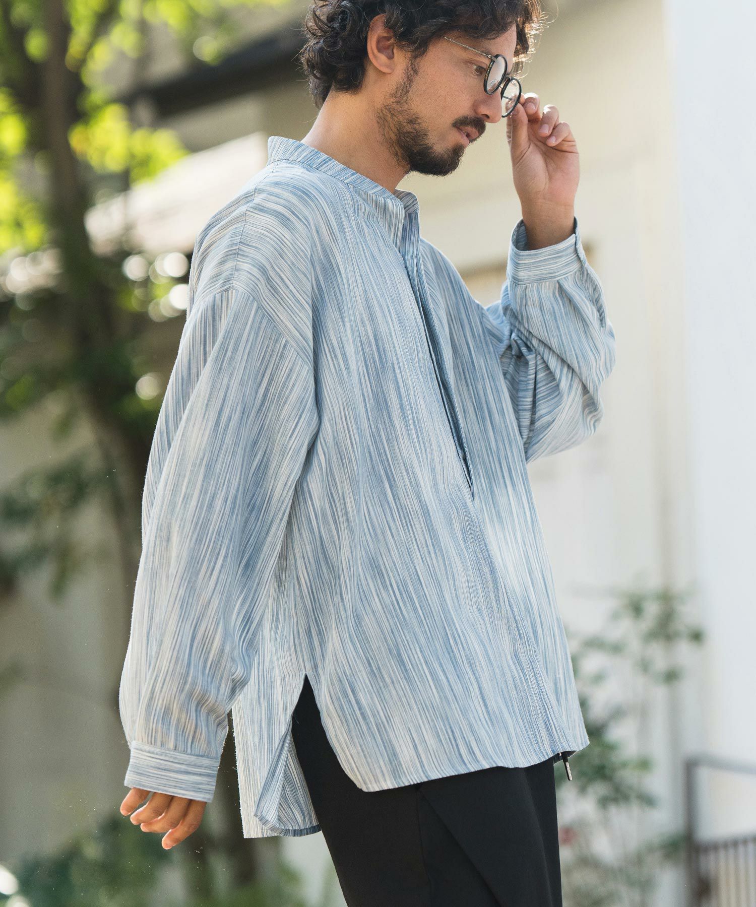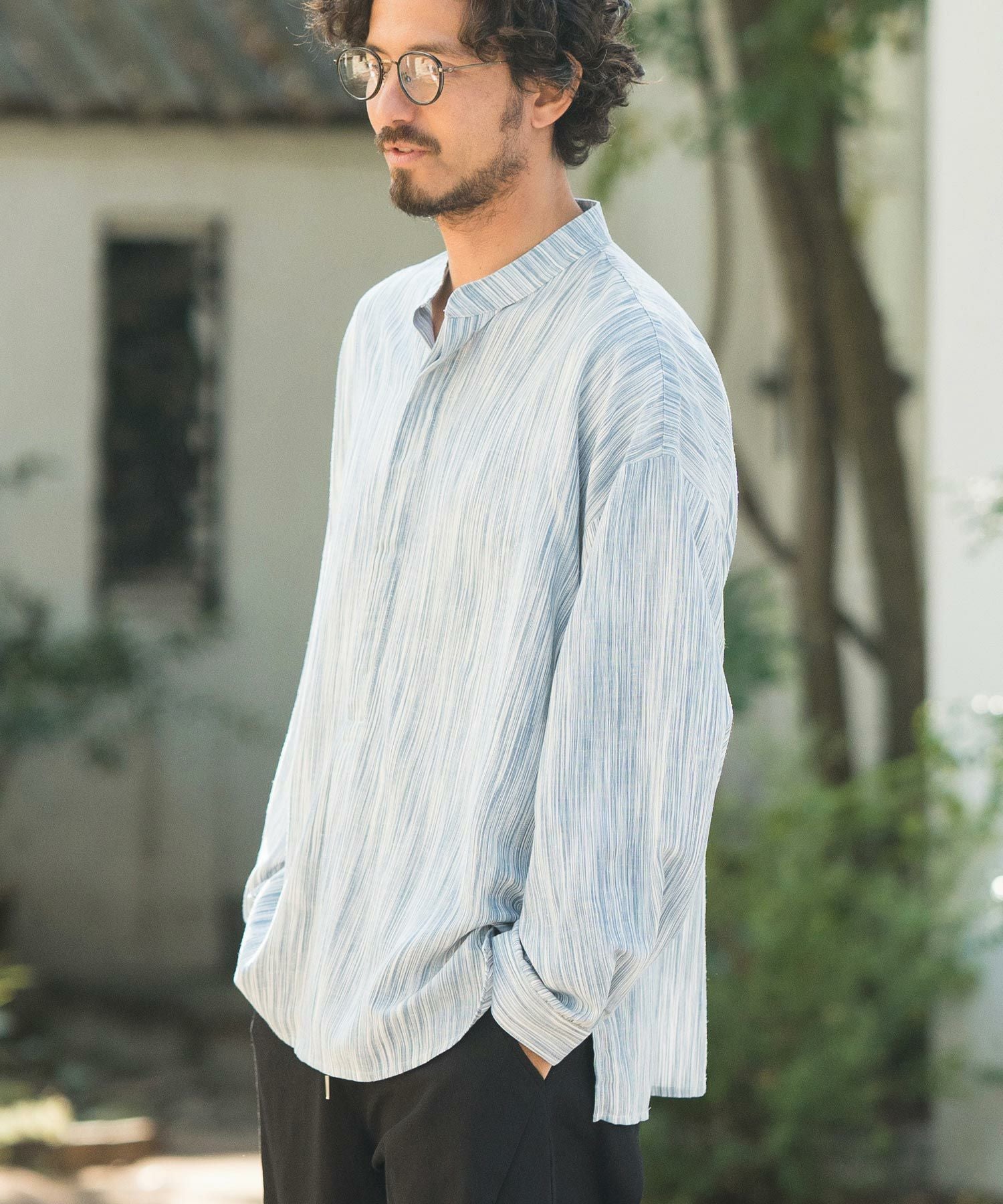 CAMBIO 50%OFF【CAMBIO(カンビオ)】バンドカラーストライププルオーバー シャツ(CMB-R0073)
