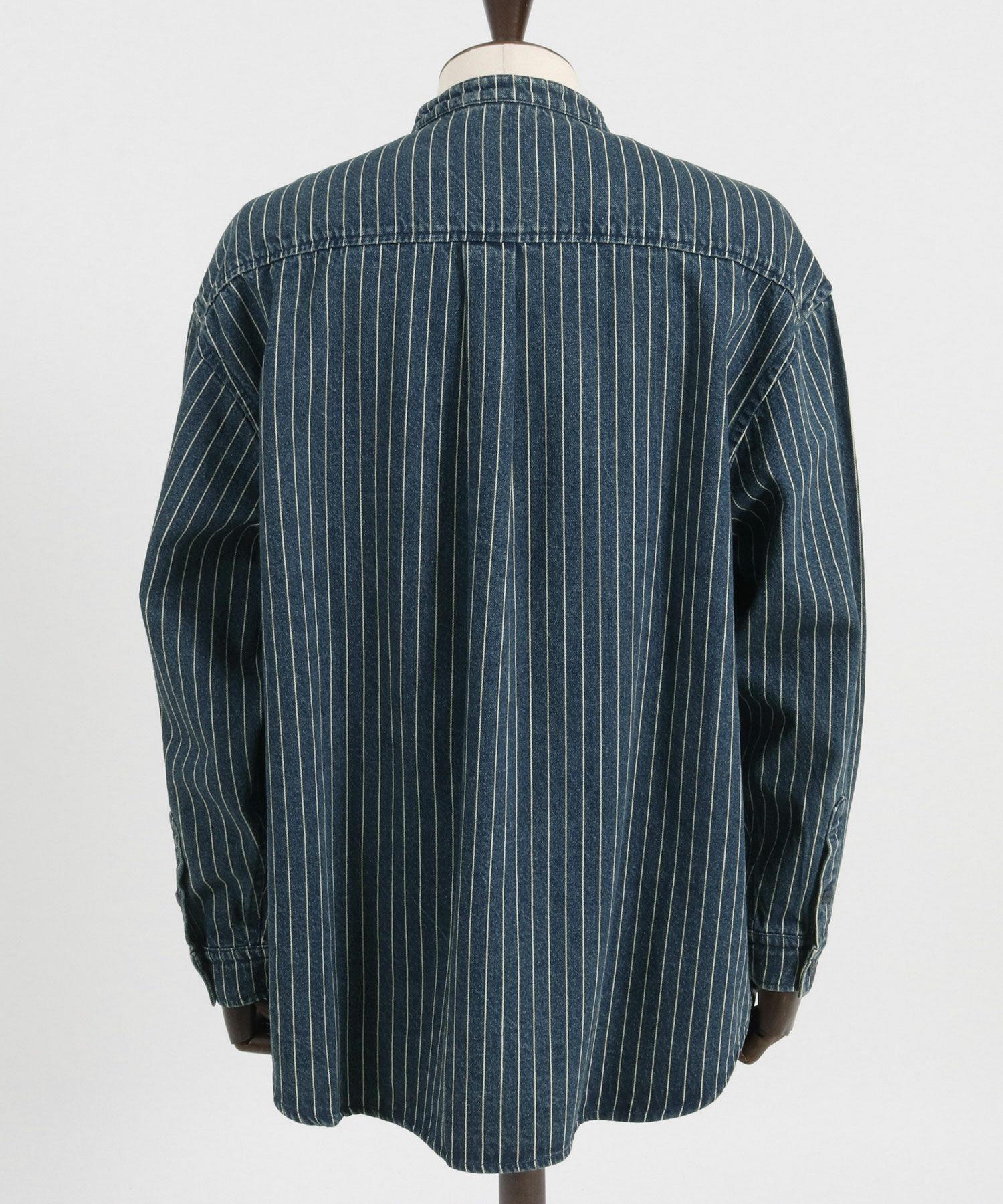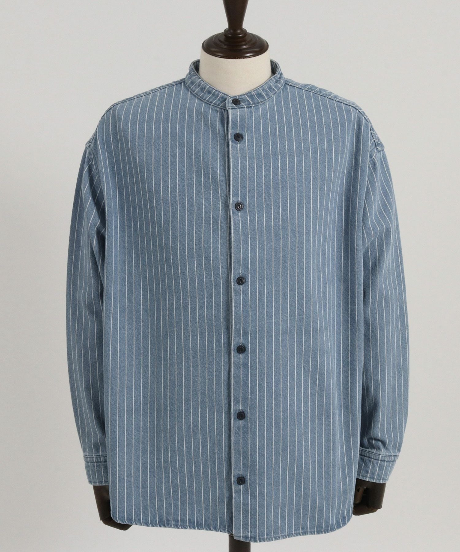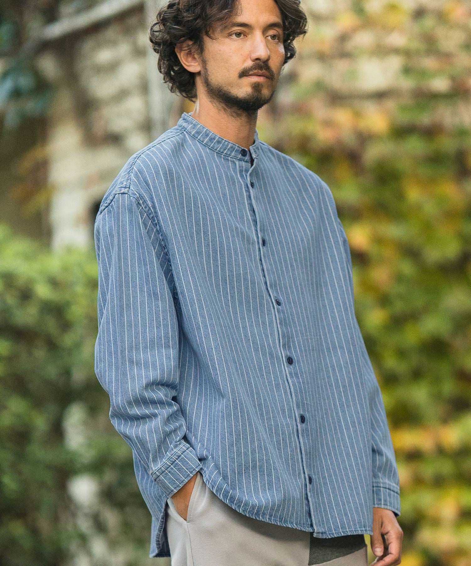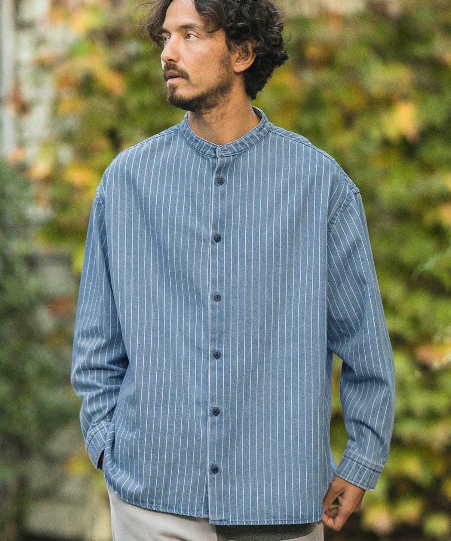 CAMBIO 30%OFF【CAMBIO(カンビオ)】Stripe Denim Chemical Wash Band Collar Shirts シャツ(MIU-241-005)
