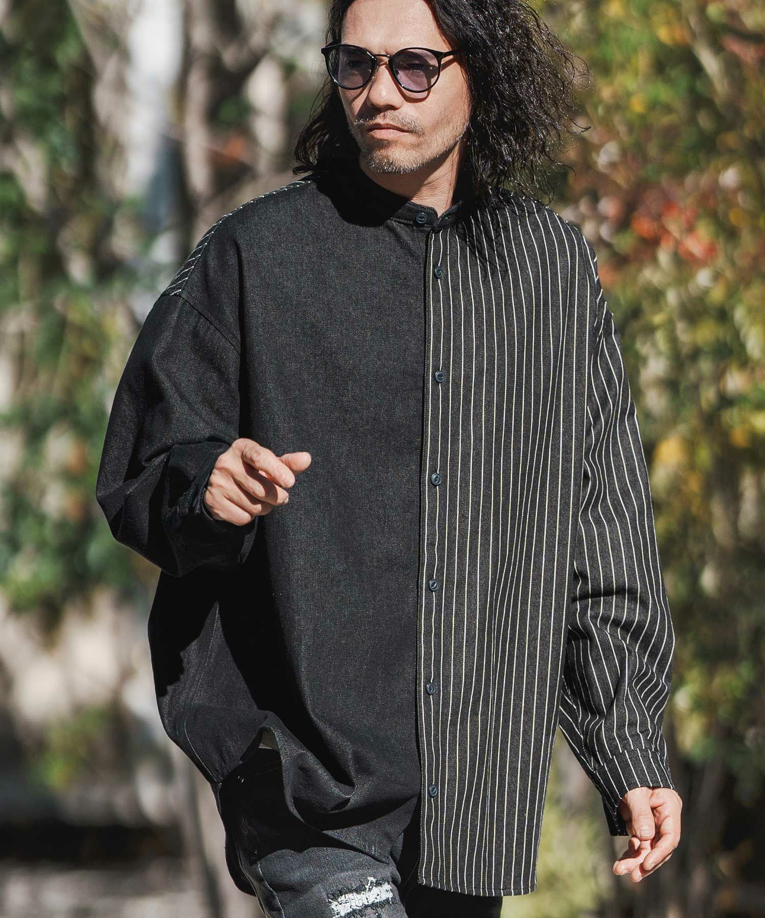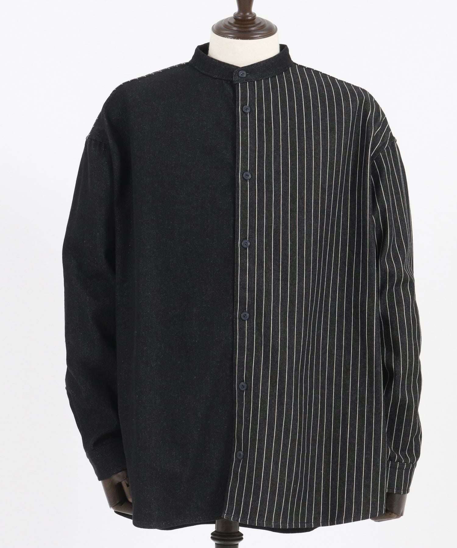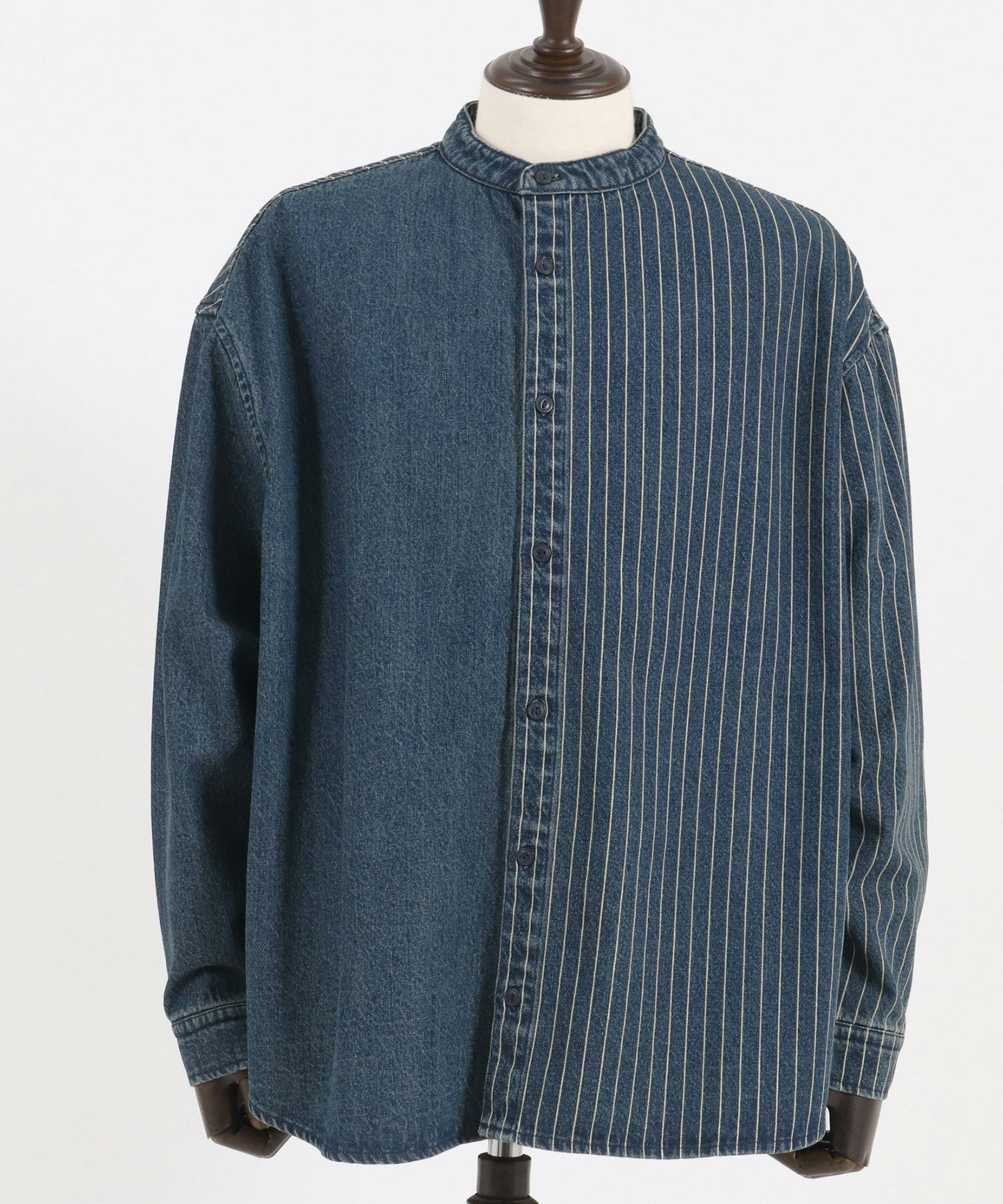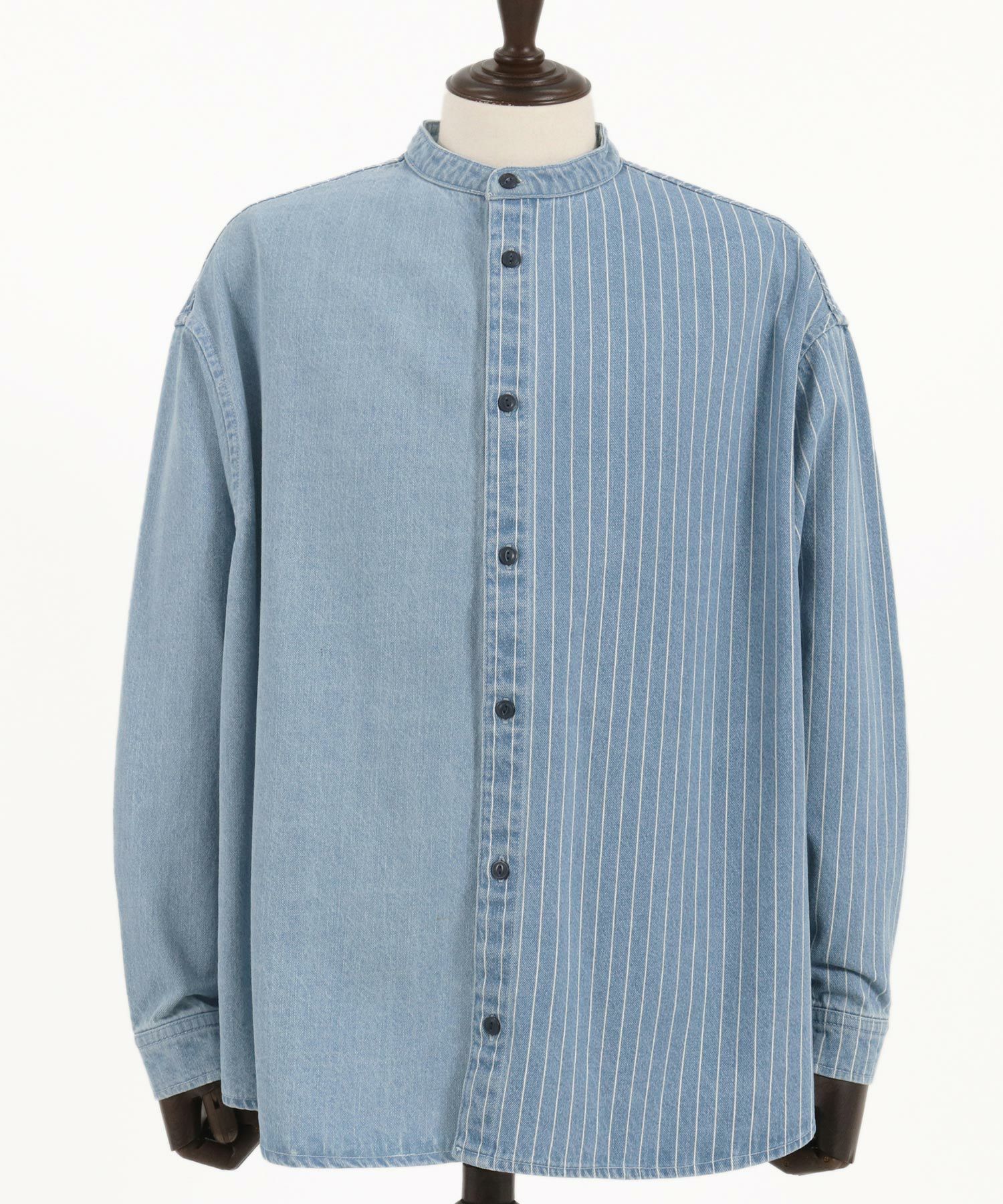 CAMBIO 50%OFF【CAMBIO(カンビオ)】 Stripe Switch Band Collar Denim Shirts デニムシャツ(MIU-241-023)