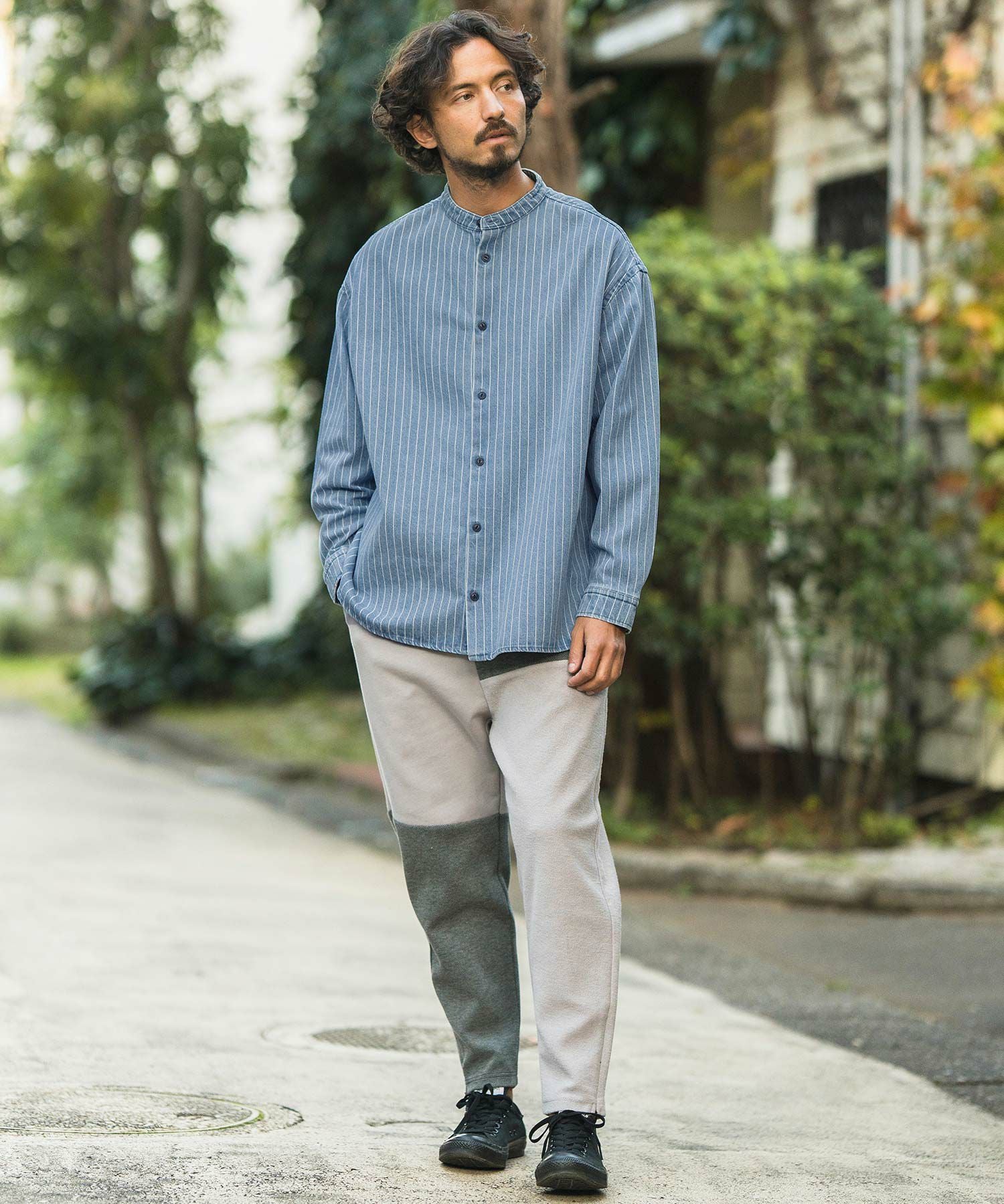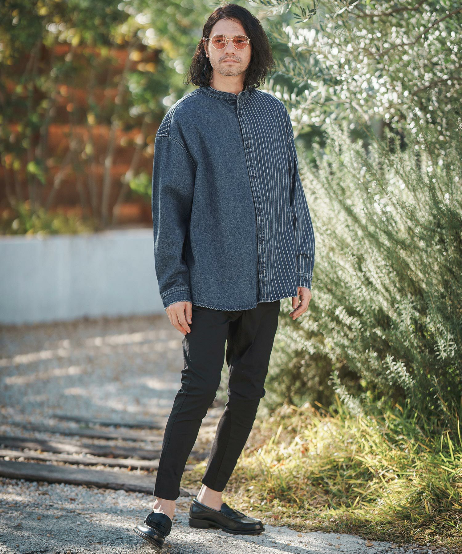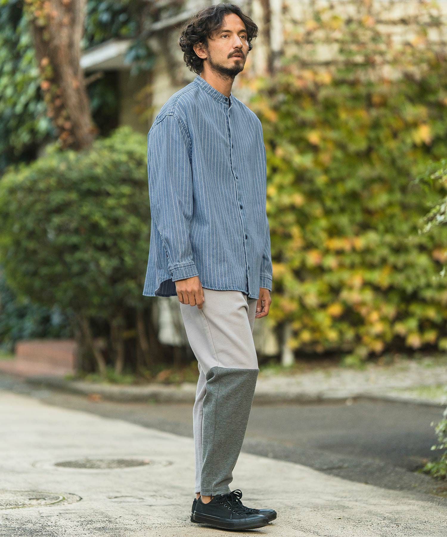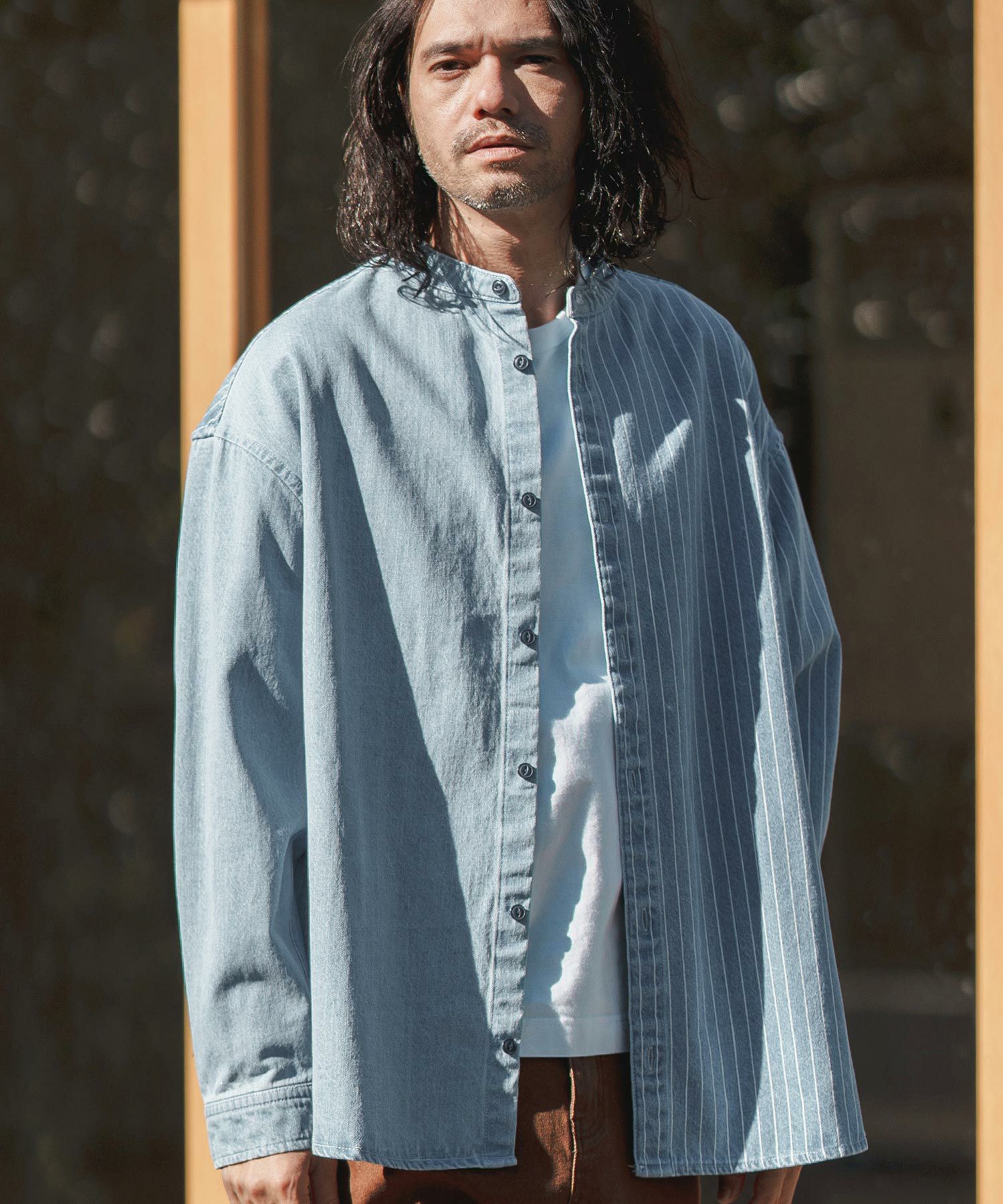 CAMBIO 50%OFF【CAMBIO(カンビオ)】 Stripe Switch Band Collar Denim Shirts デニムシャツ(MIU-241-023)