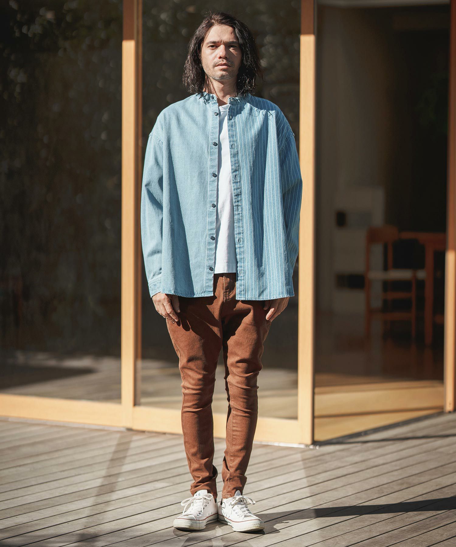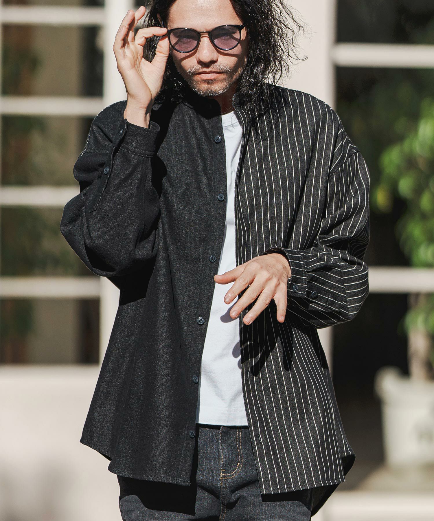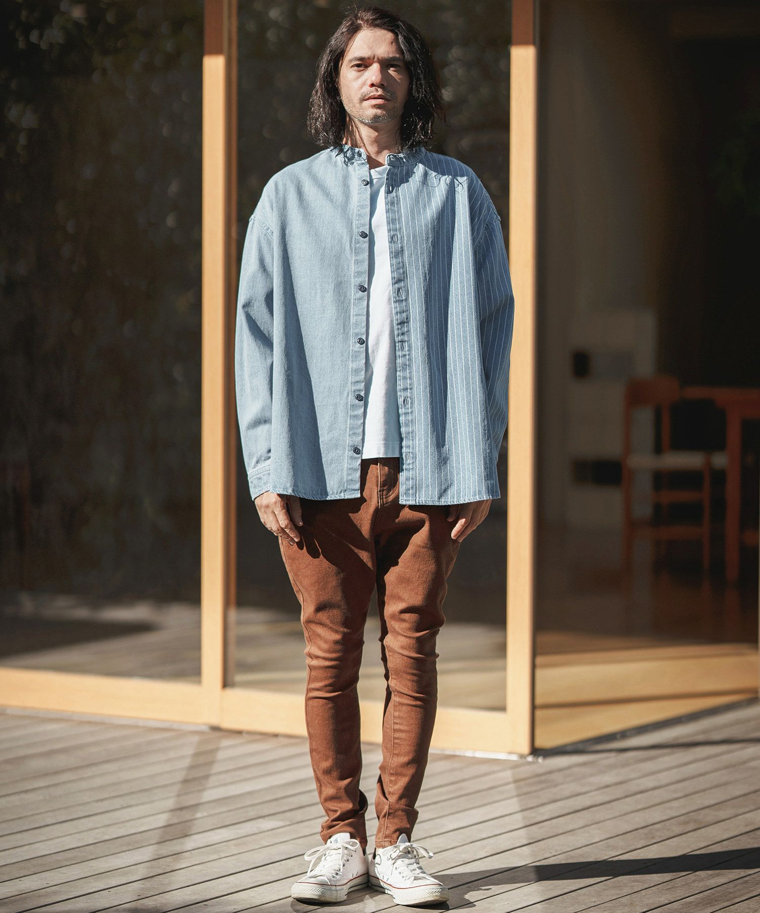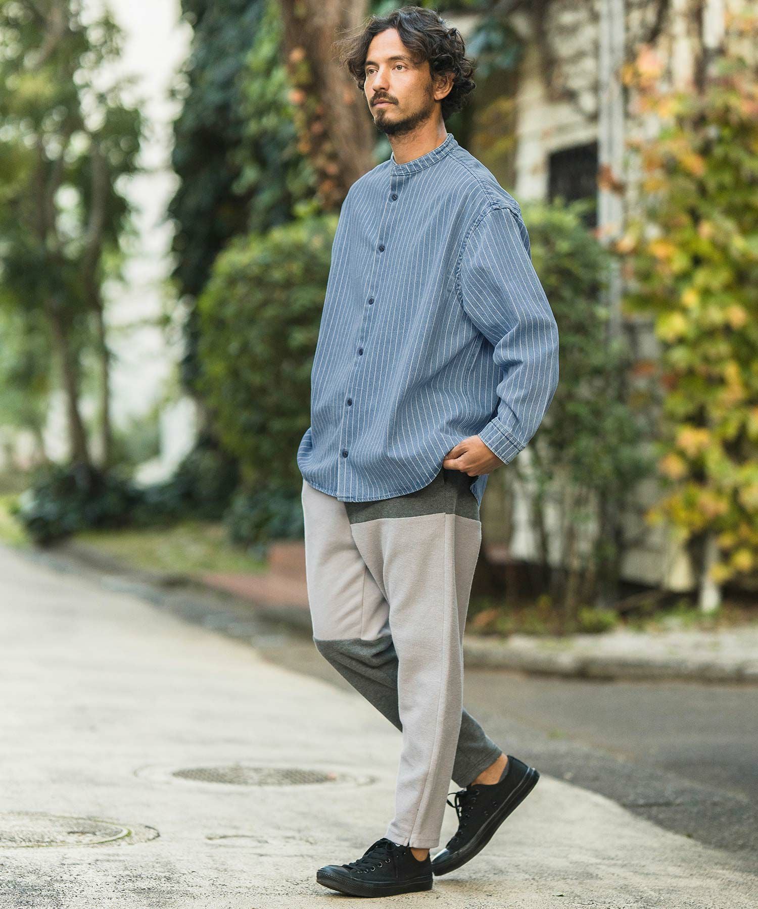 CAMBIO 50%OFF【CAMBIO(カンビオ)】 Stripe Switch Band Collar Denim Shirts デニムシャツ(MIU-241-023)