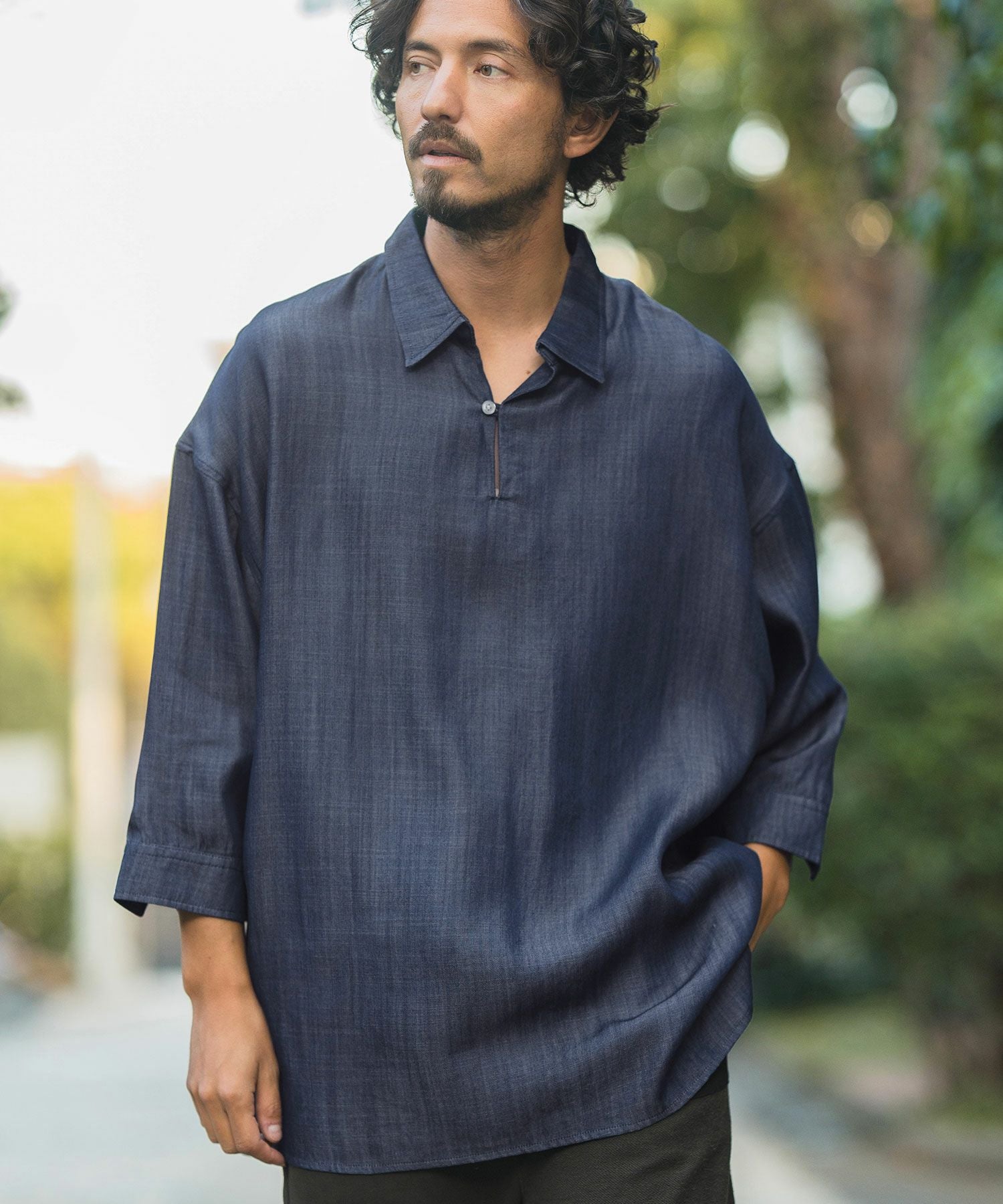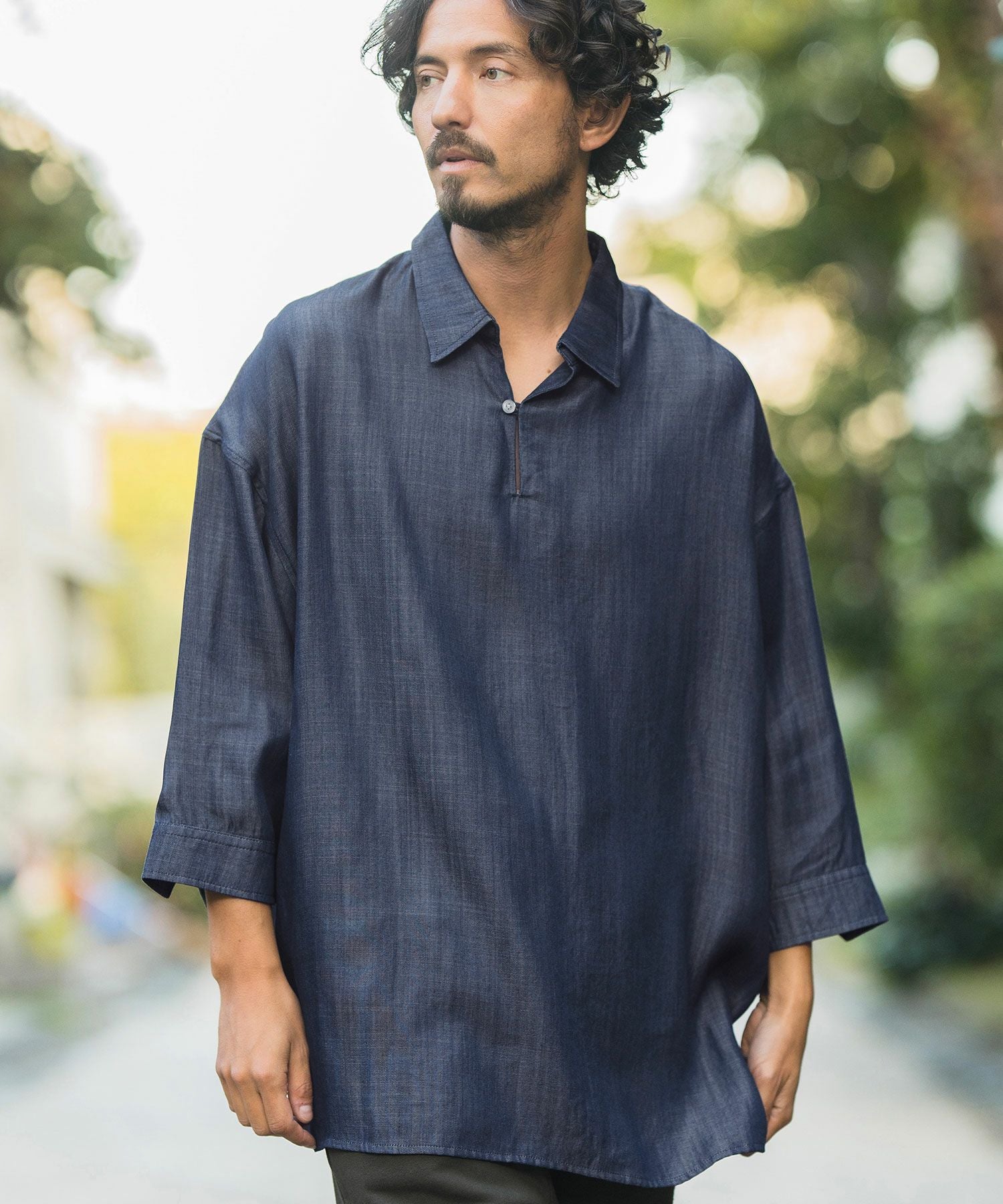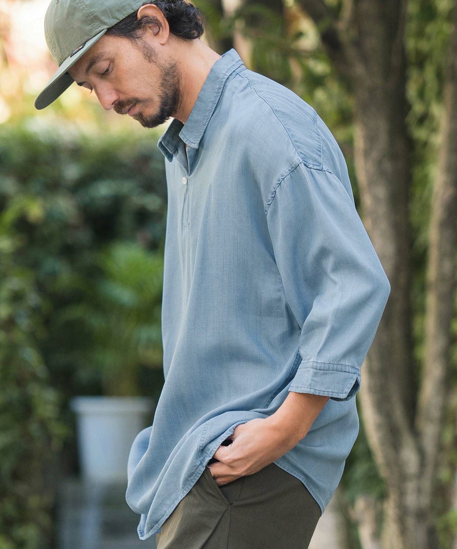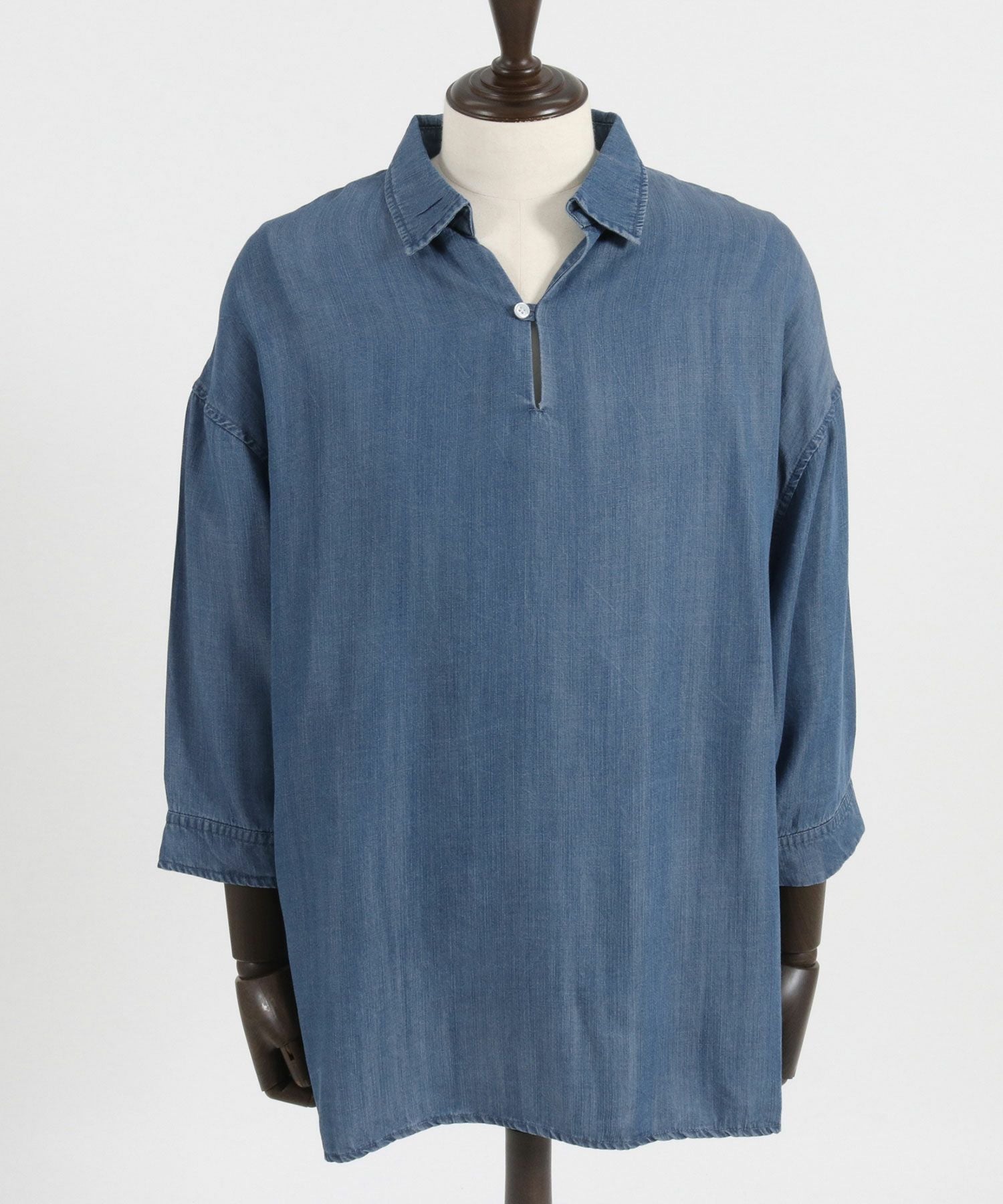 CAMBIO 50%OFF【CAMBIO(カンビオ)】Silky Denim Three quarter sleeve Skipper Pullover Shirts シャツ(MIU-241-004)
