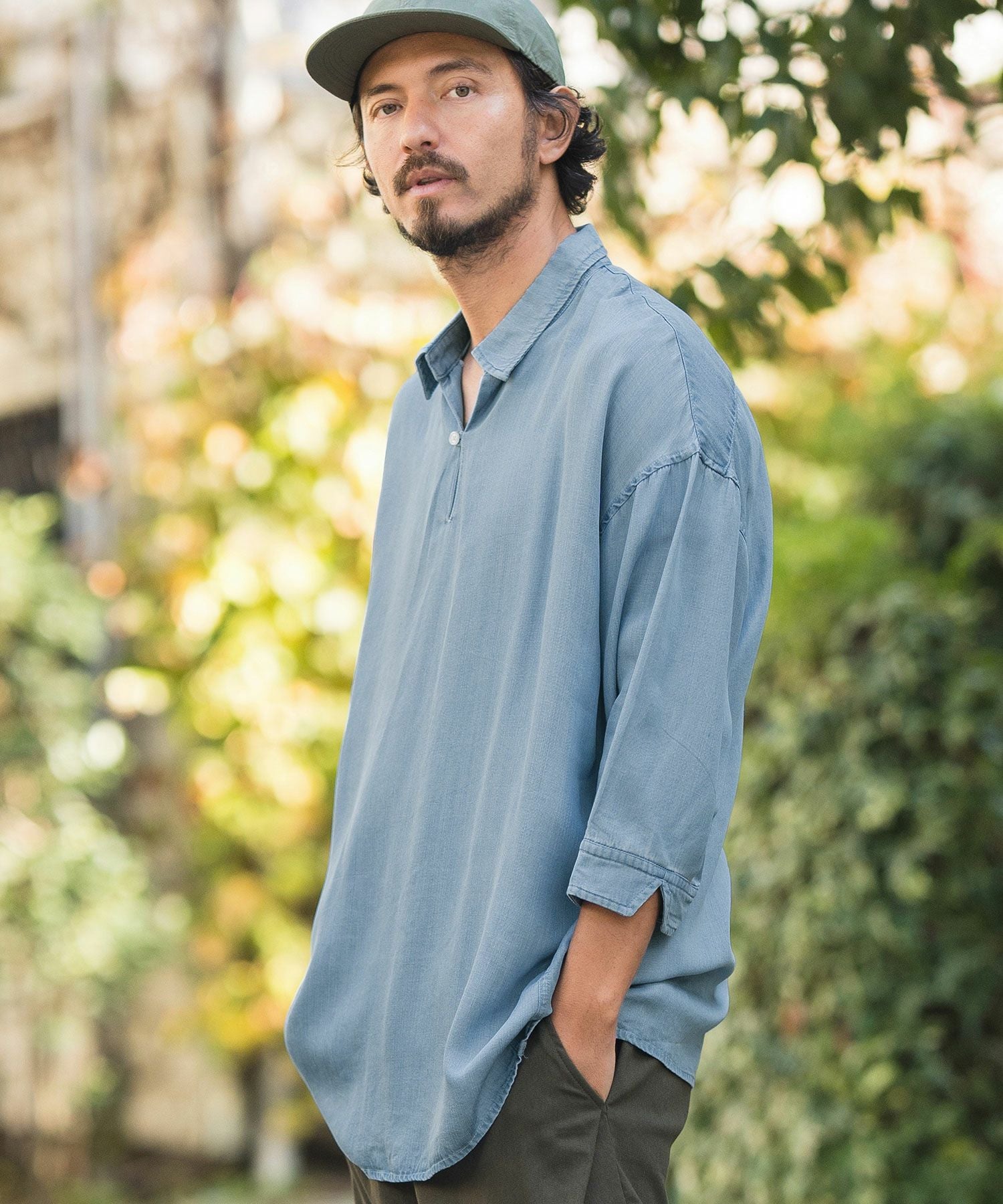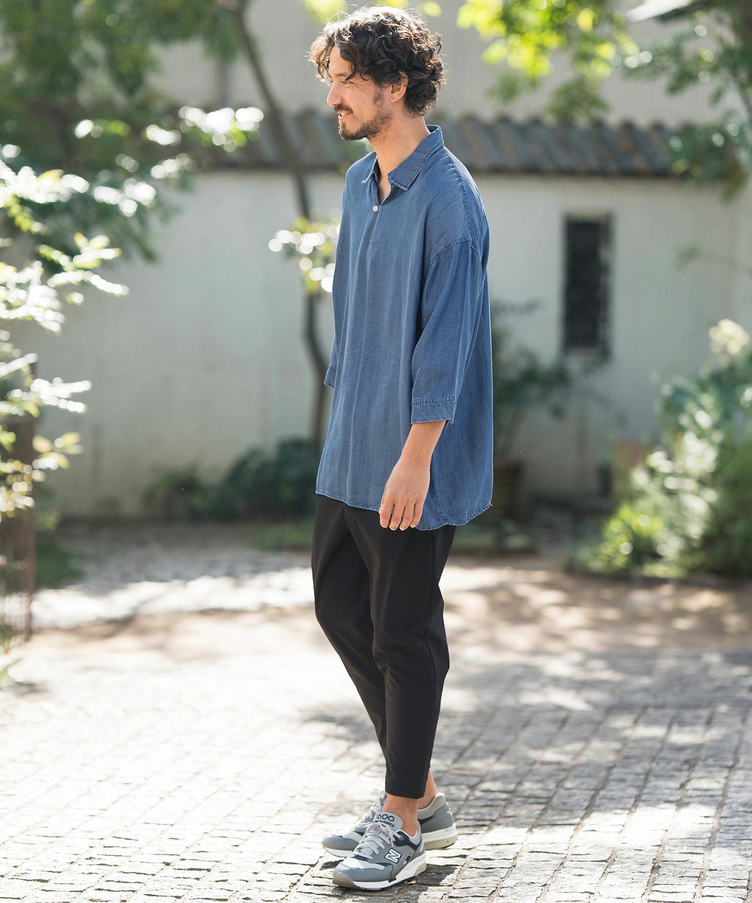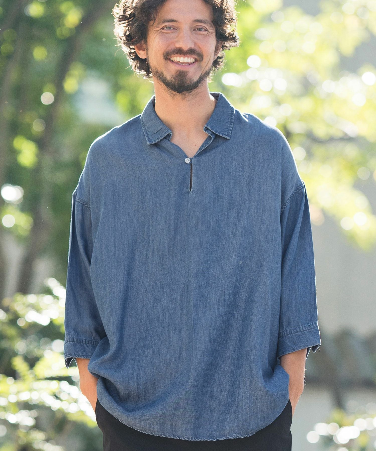 CAMBIO 50%OFF【CAMBIO(カンビオ)】Silky Denim Three quarter sleeve Skipper Pullover Shirts シャツ(MIU-241-004)