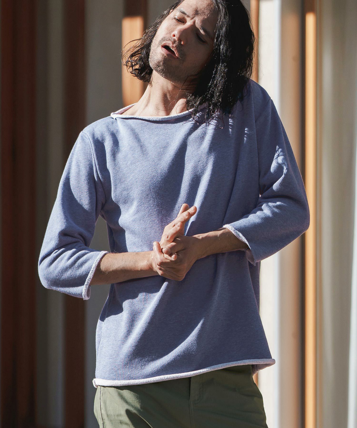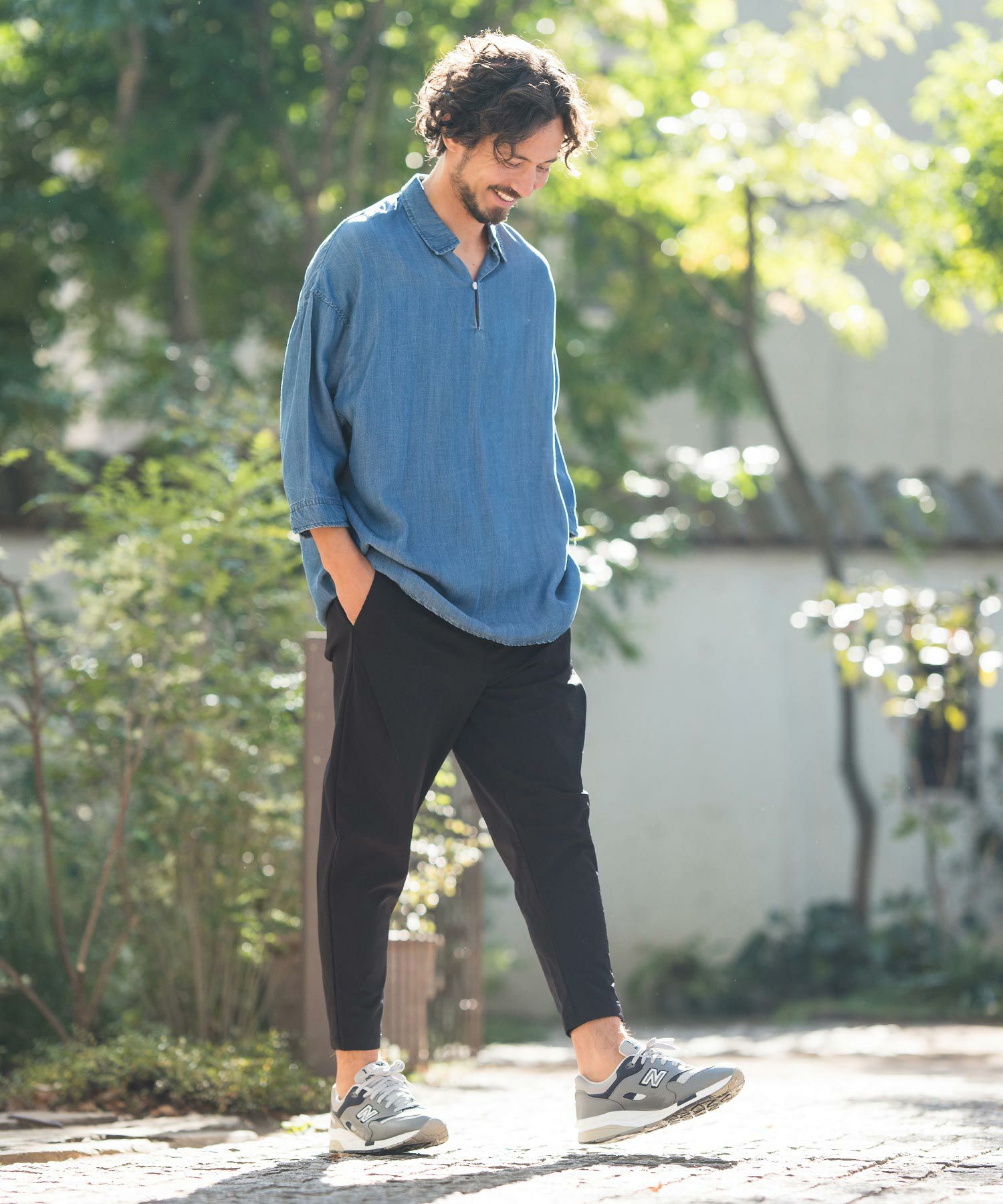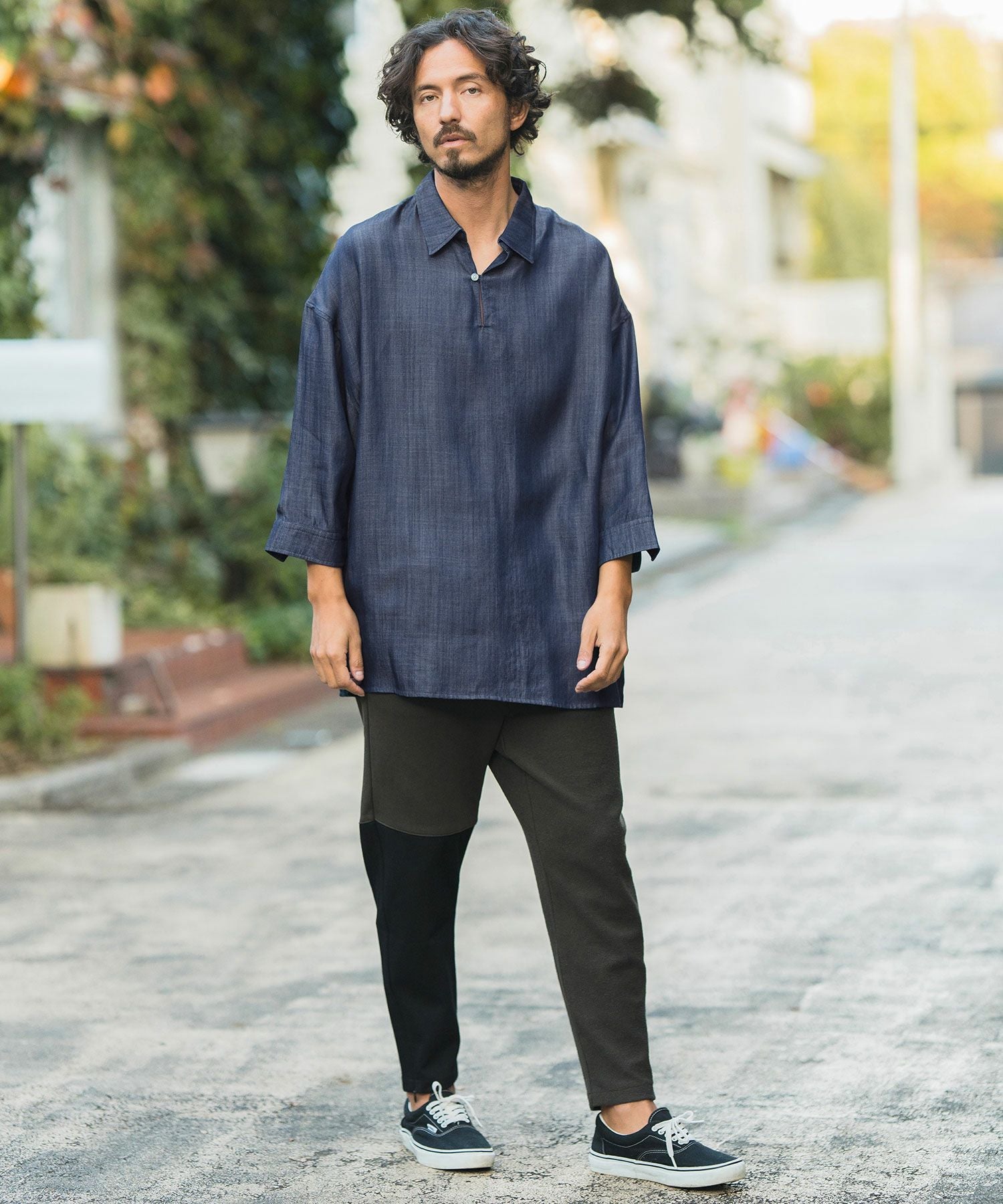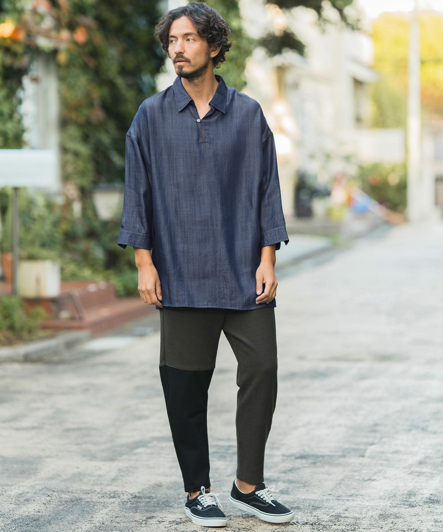 CAMBIO 50%OFF【CAMBIO(カンビオ)】Silky Denim Three quarter sleeve Skipper Pullover Shirts シャツ(MIU-241-004)