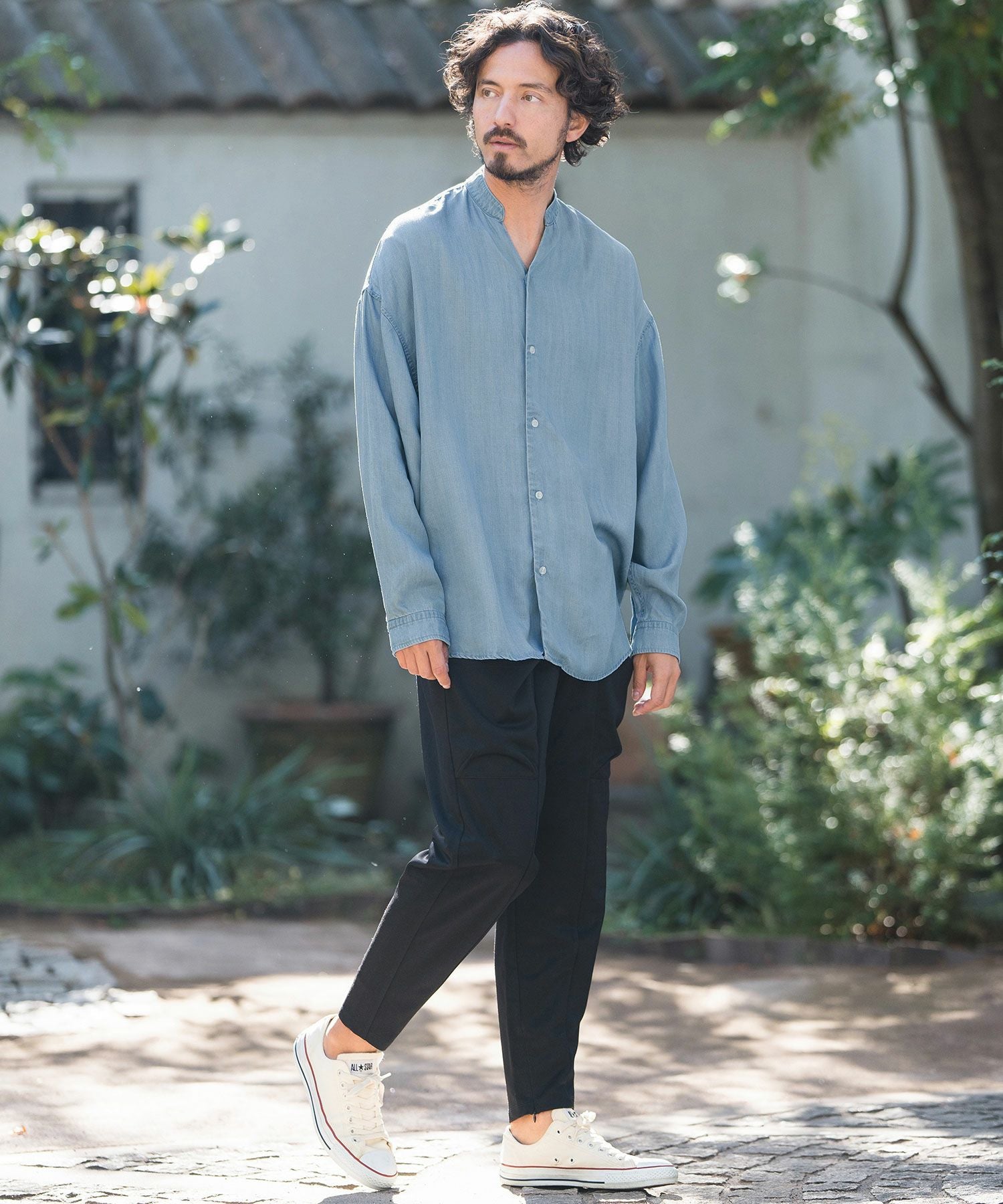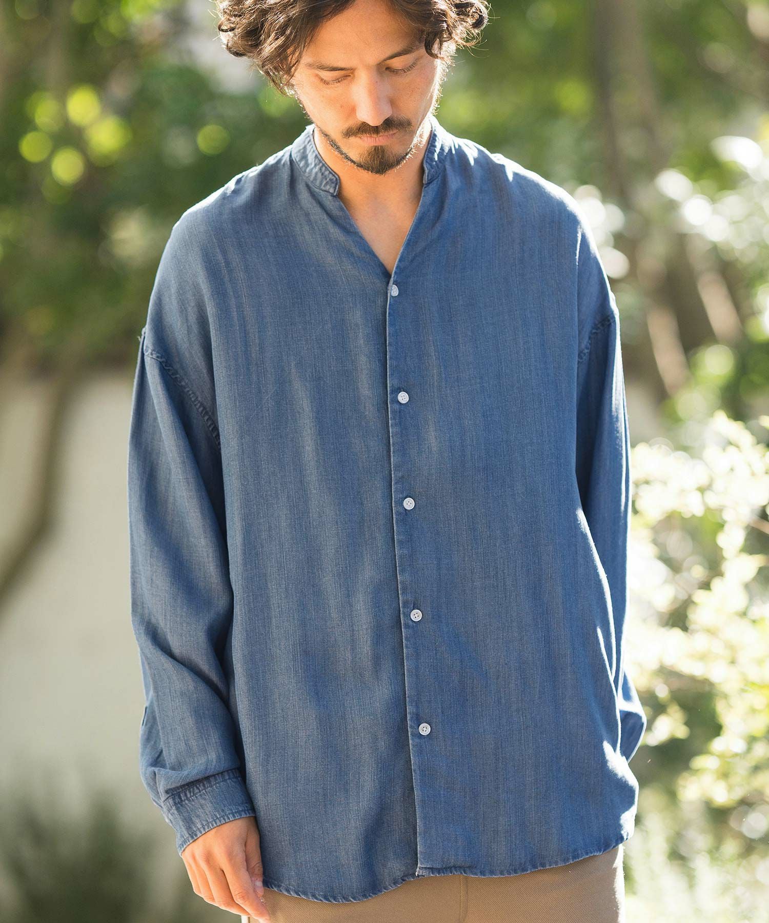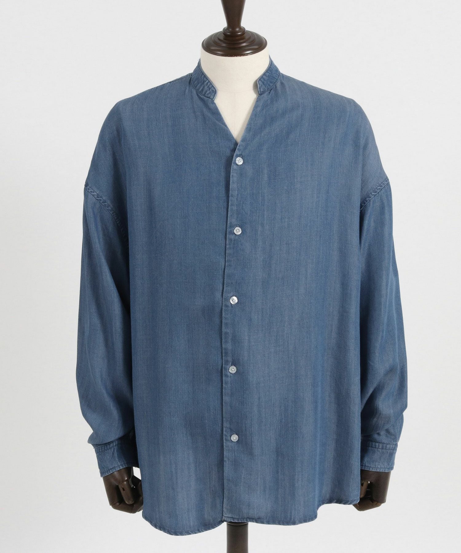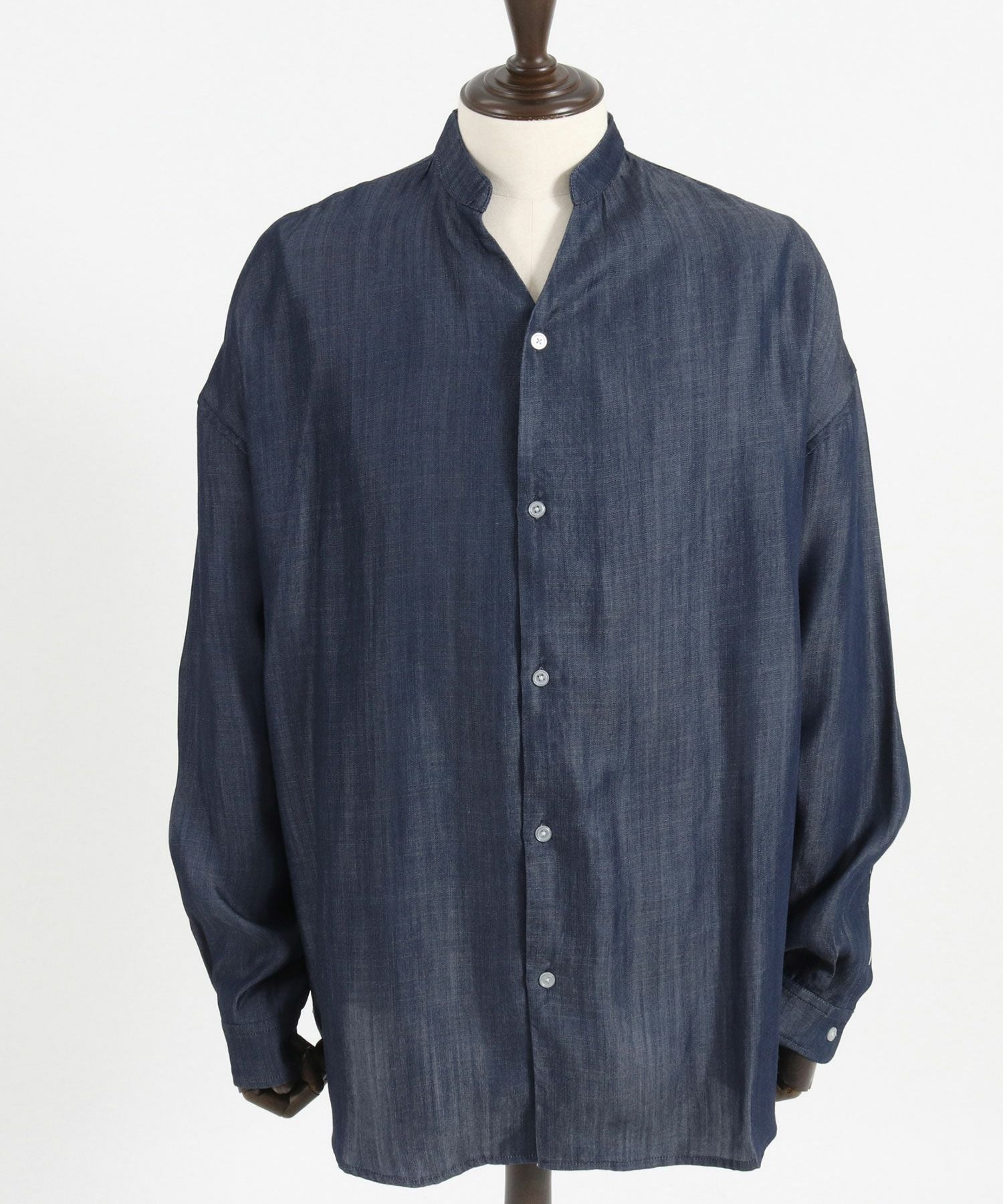 CAMBIO 30%OFF【CAMBIO(カンビオ)】Silky Denim Band Collar Skipper Shirts シャツ(MIU-241-003)
