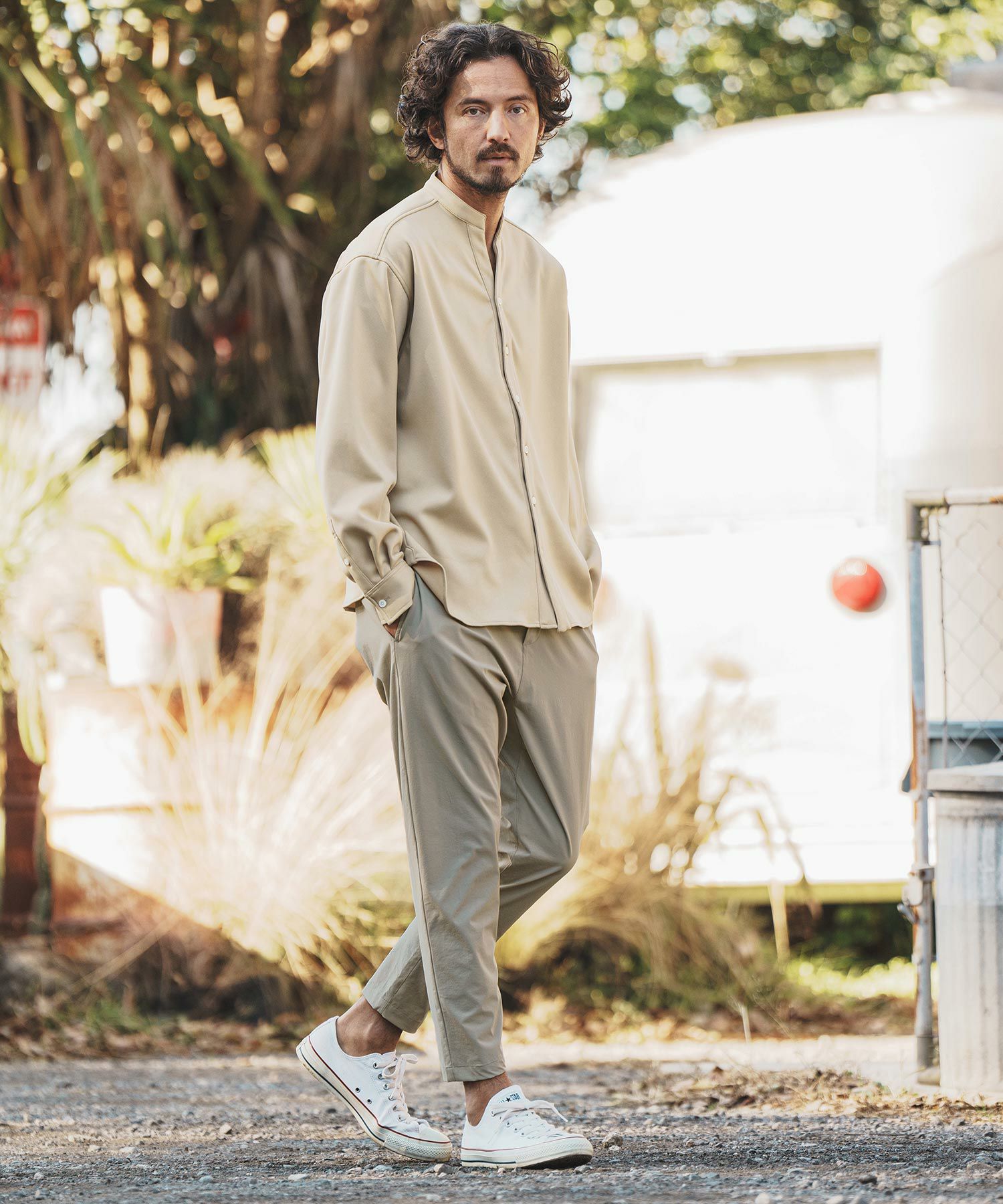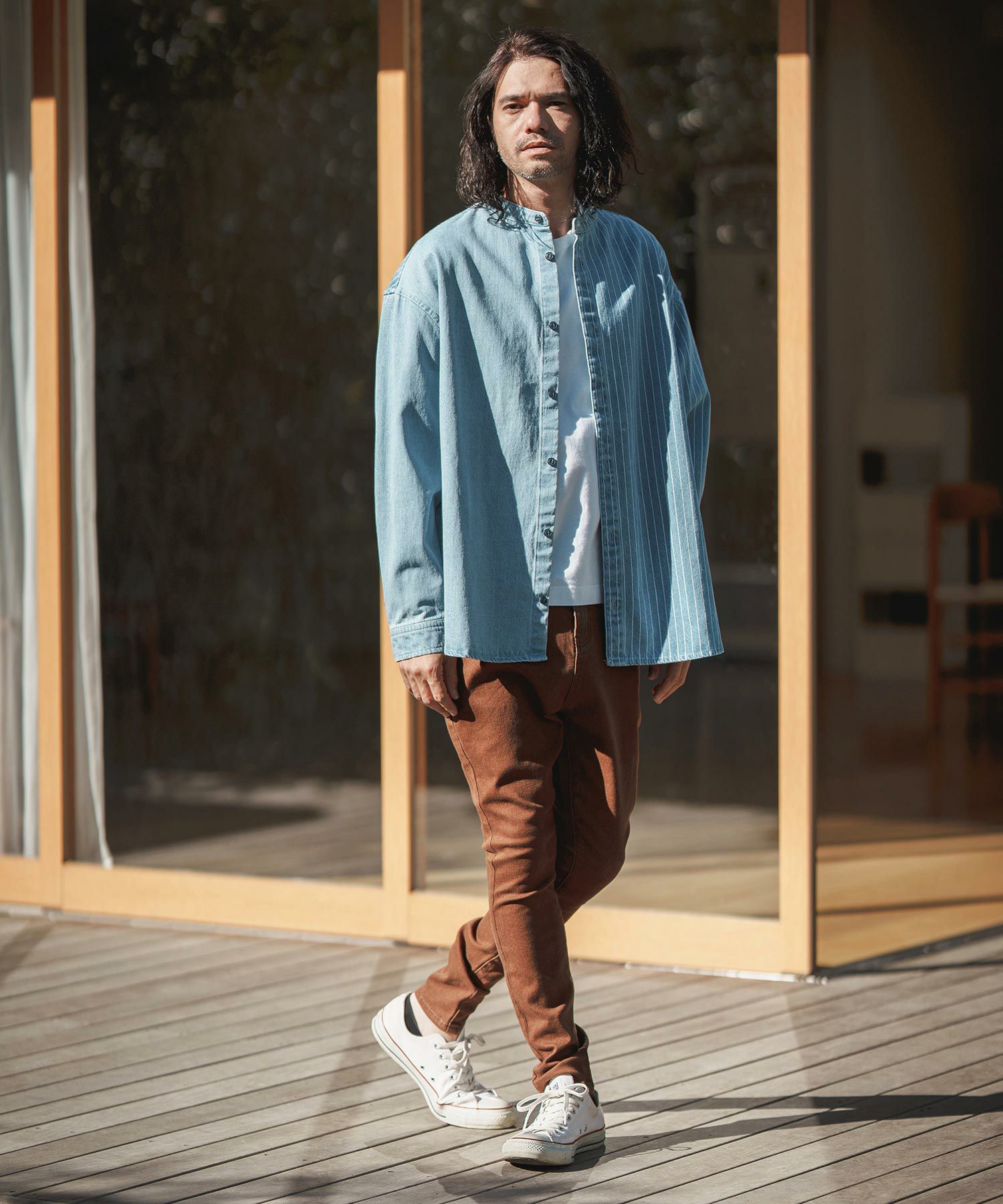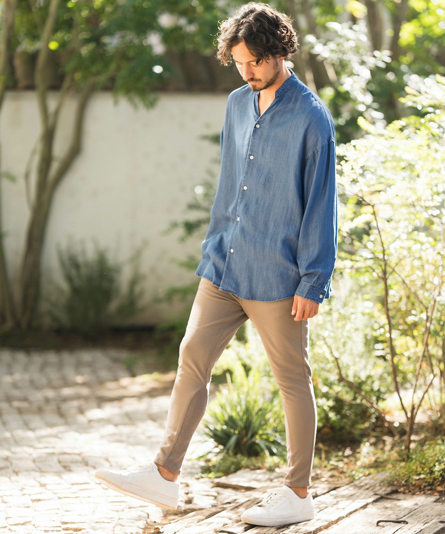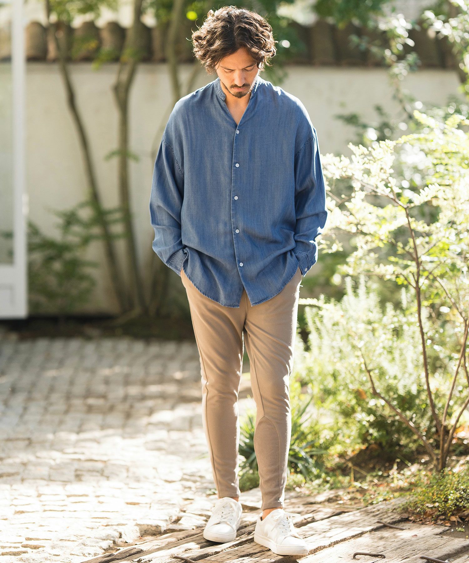 CAMBIO 30%OFF【CAMBIO(カンビオ)】Silky Denim Band Collar Skipper Shirts シャツ(MIU-241-003)
