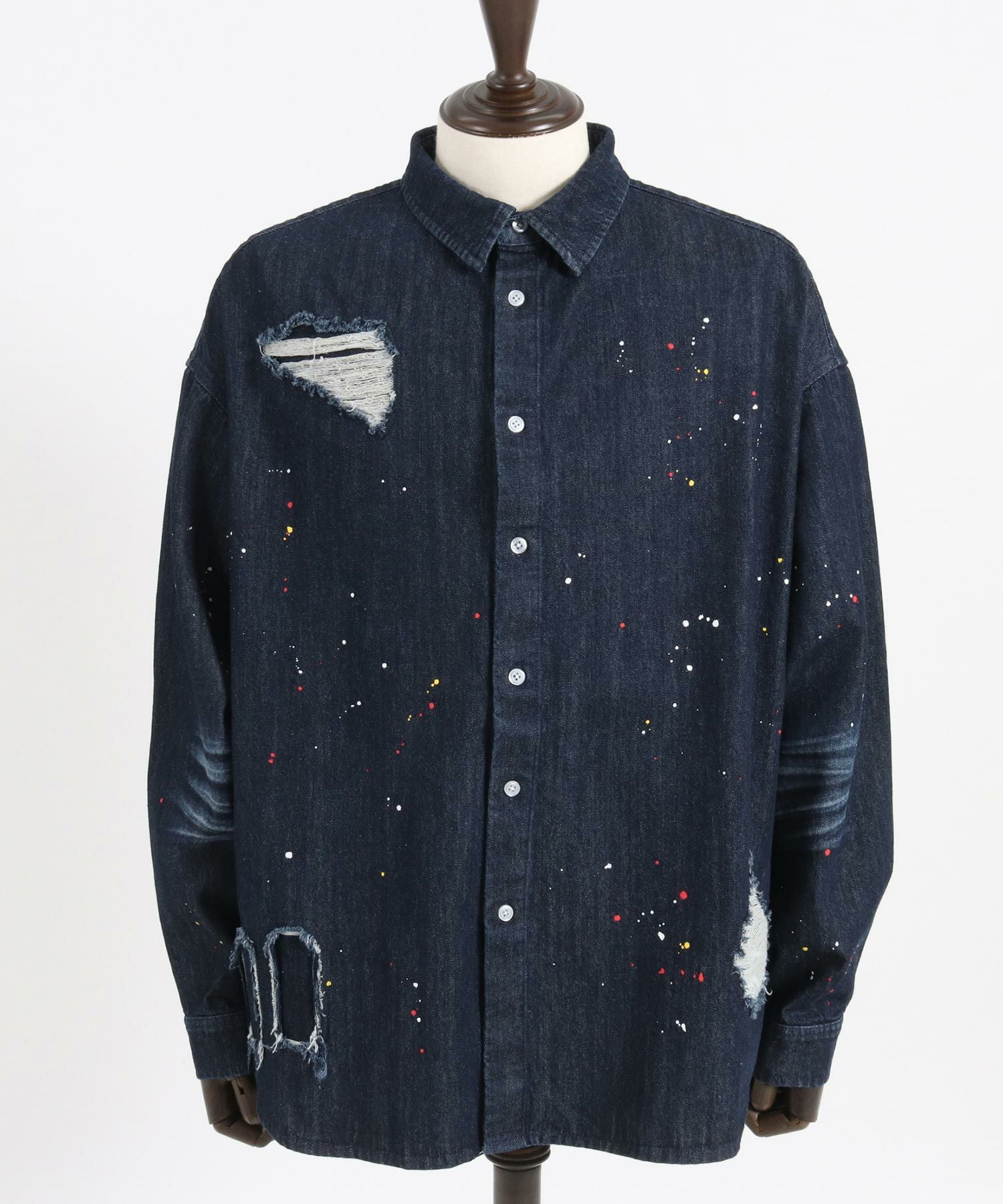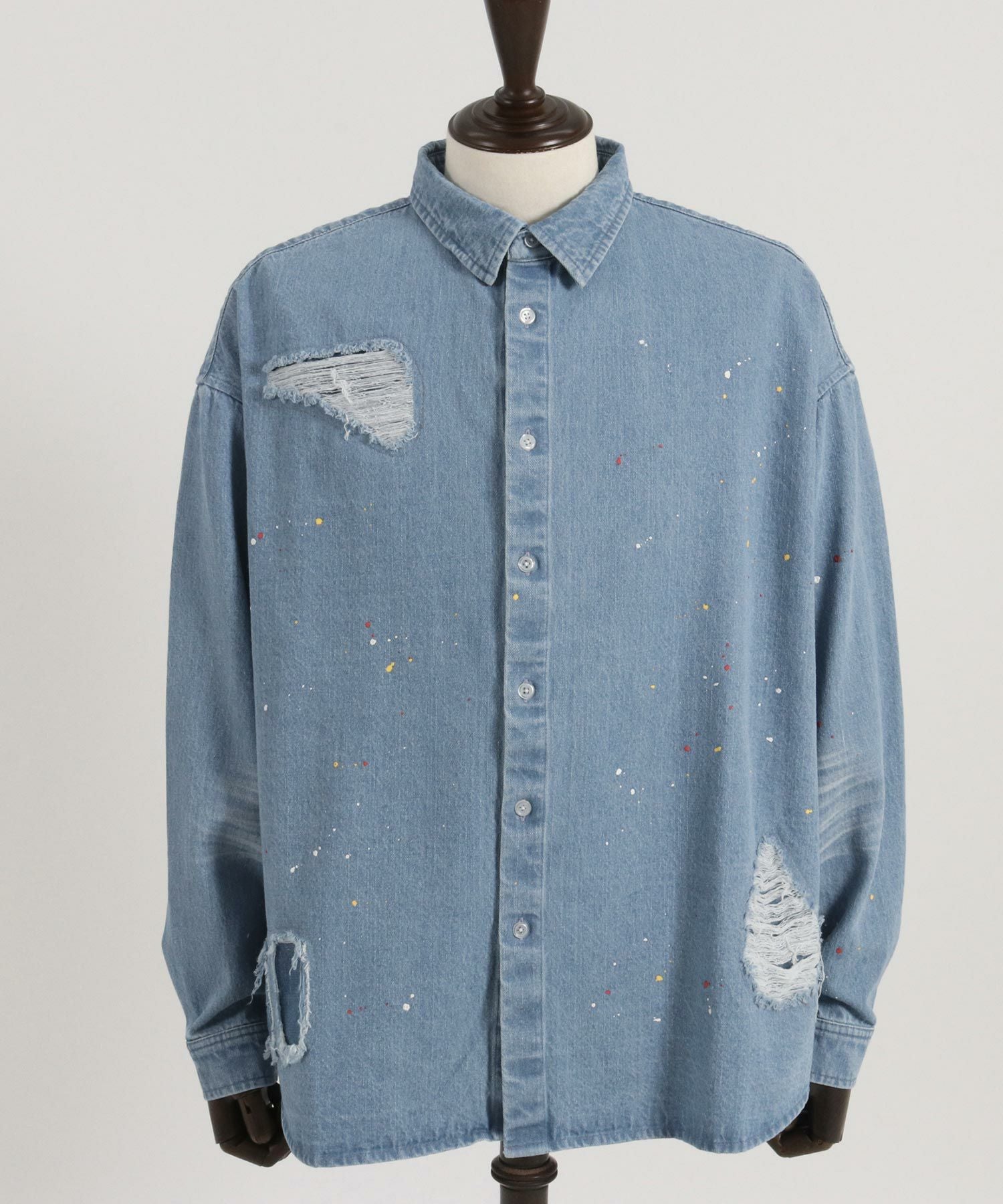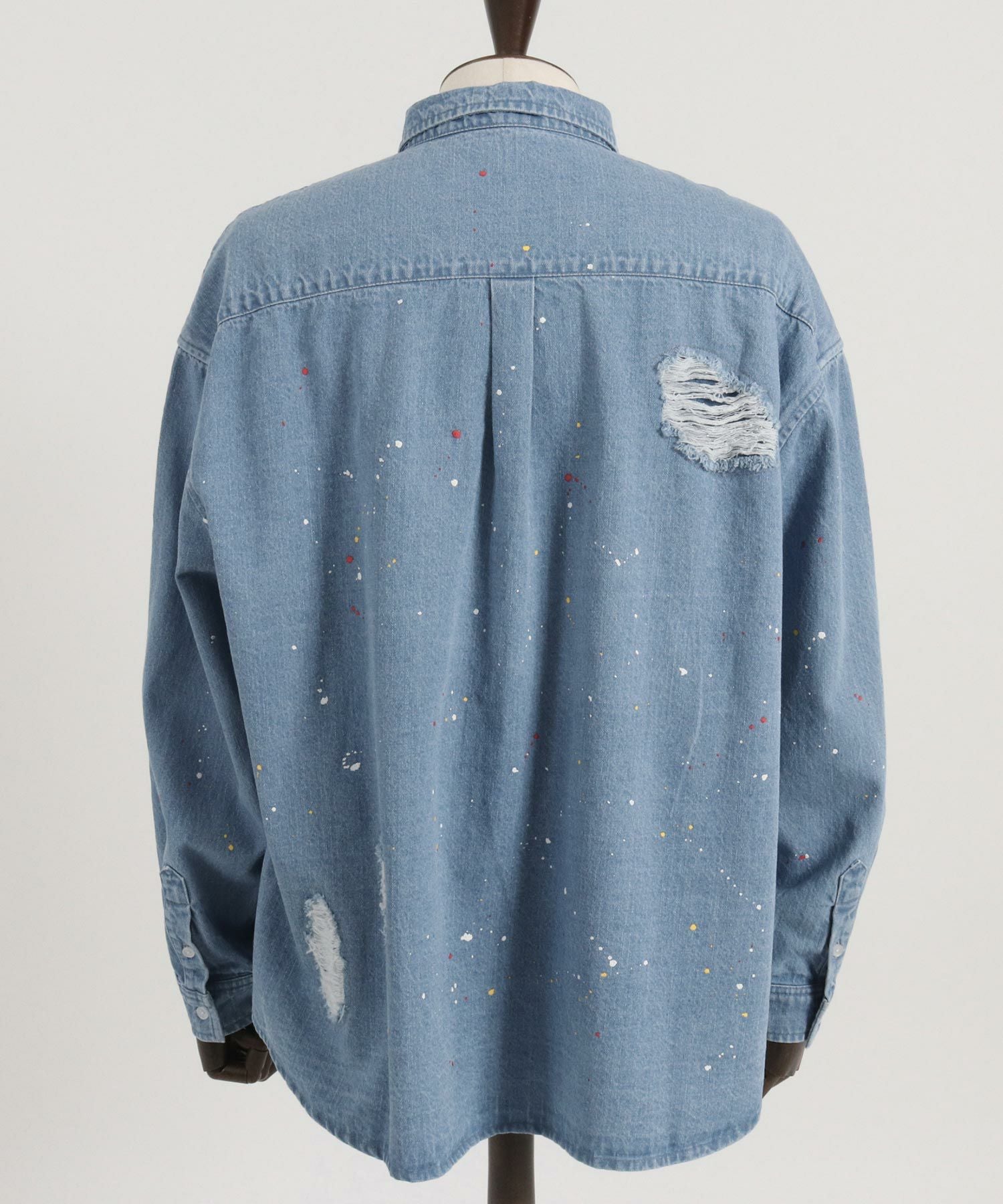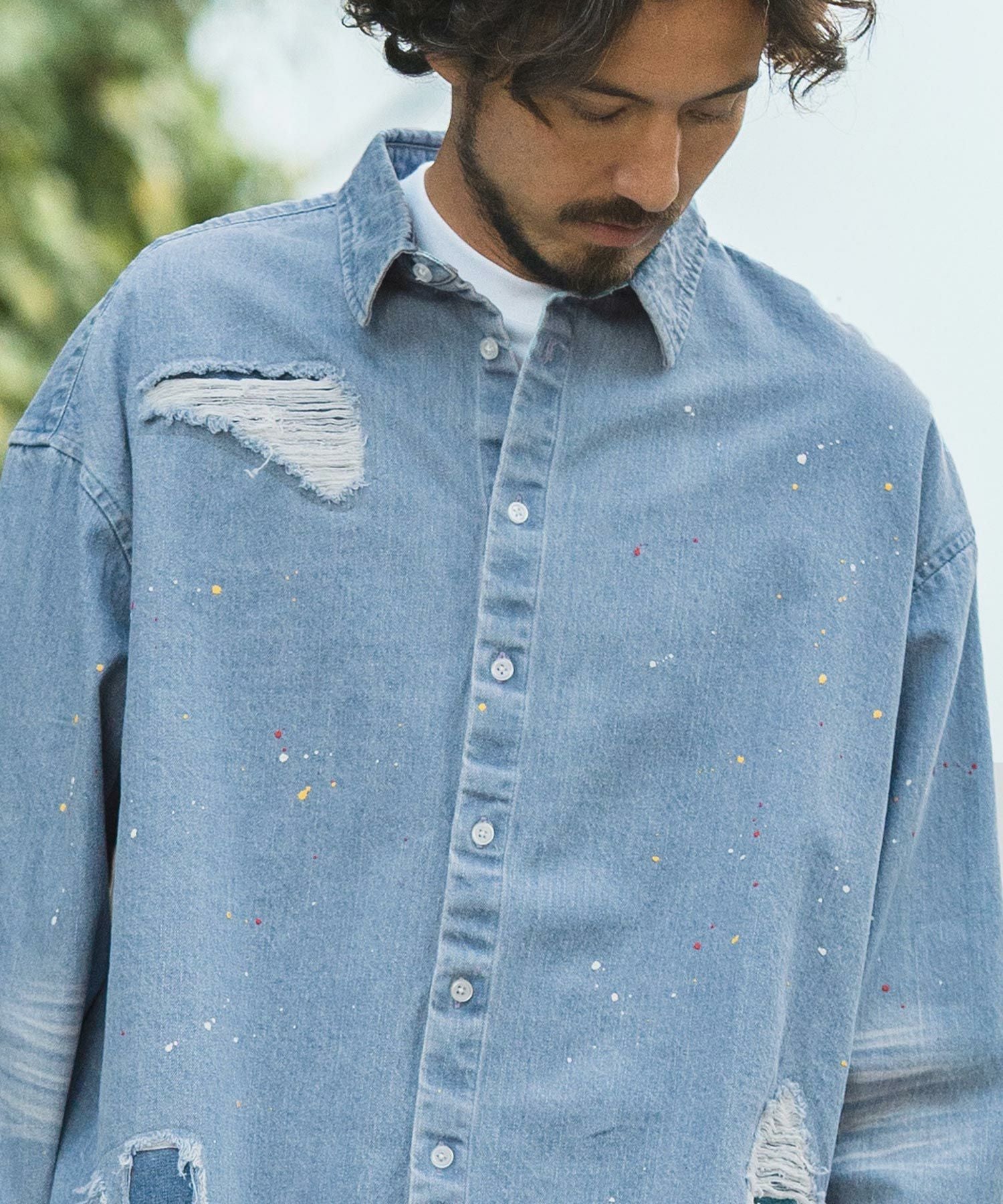 CAMBIO 30%OFF【CAMBIO(カンビオ)】Paint Distressed Over size Denim Shirts デニムシャツ(MIU-241-006)