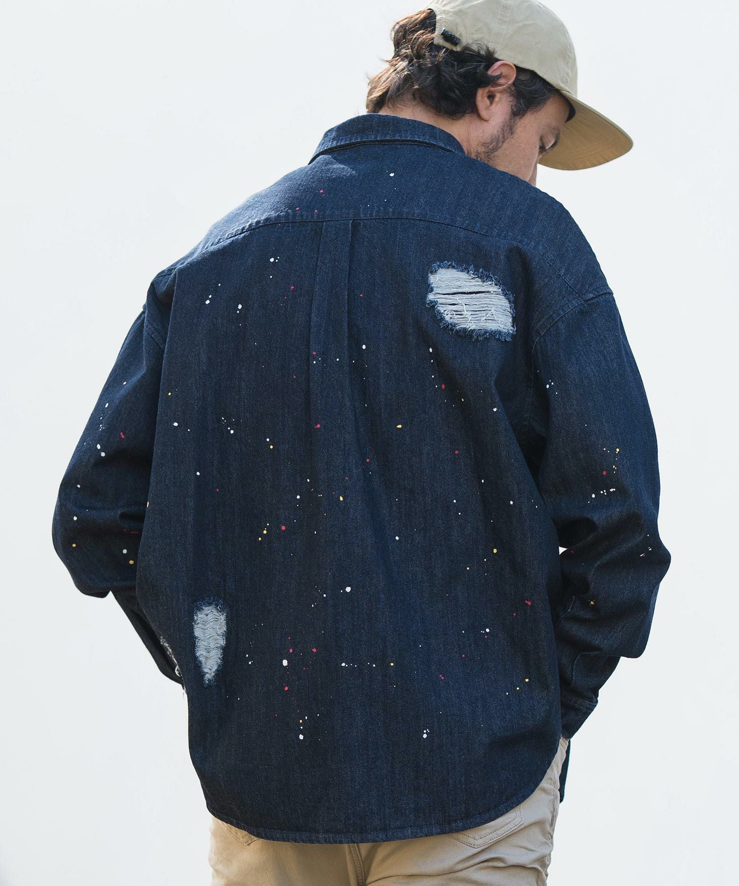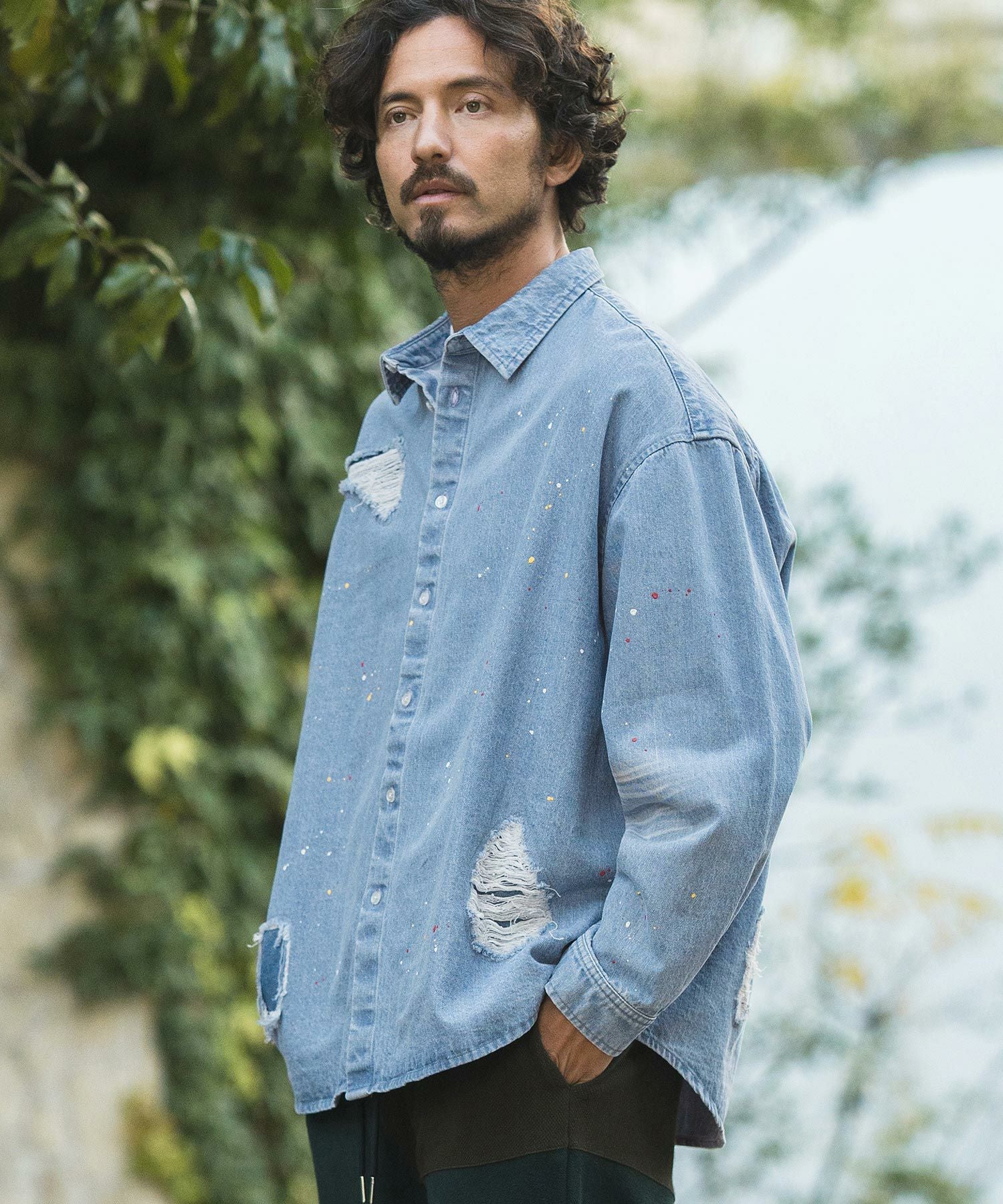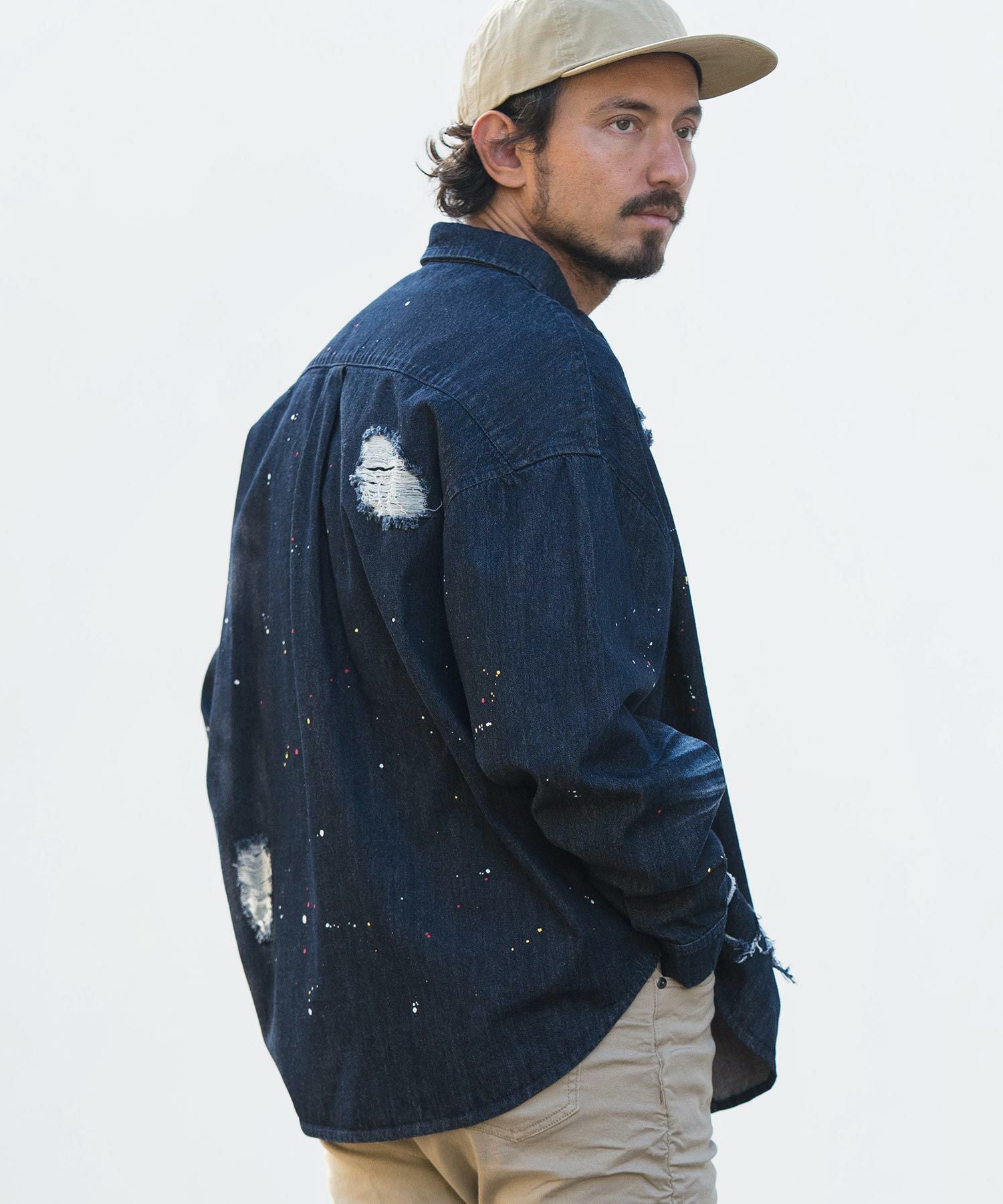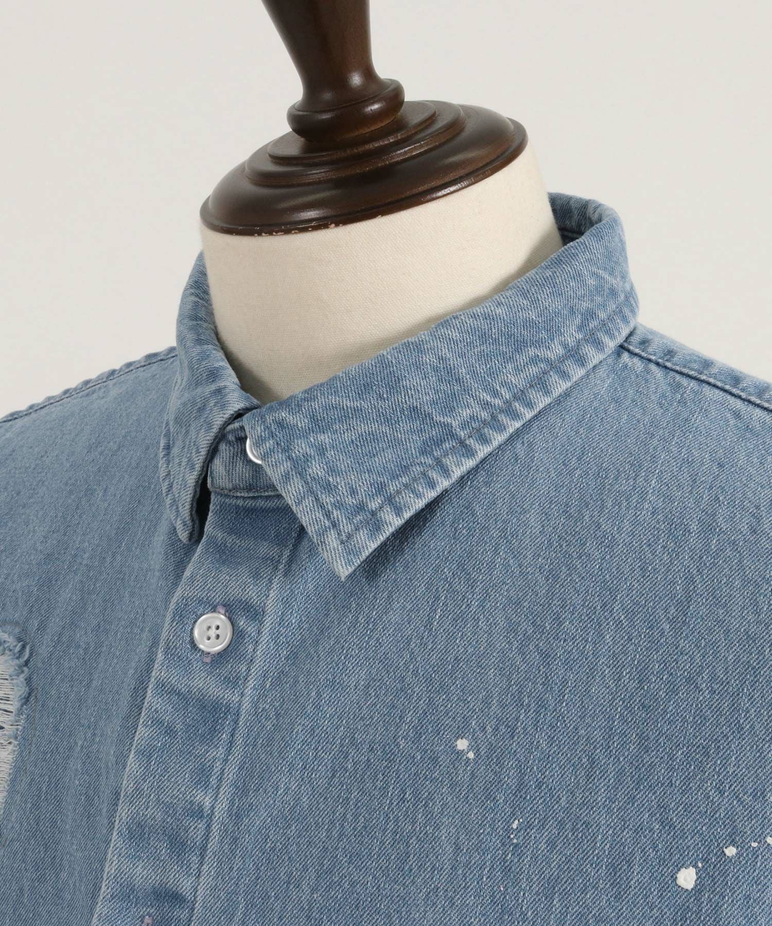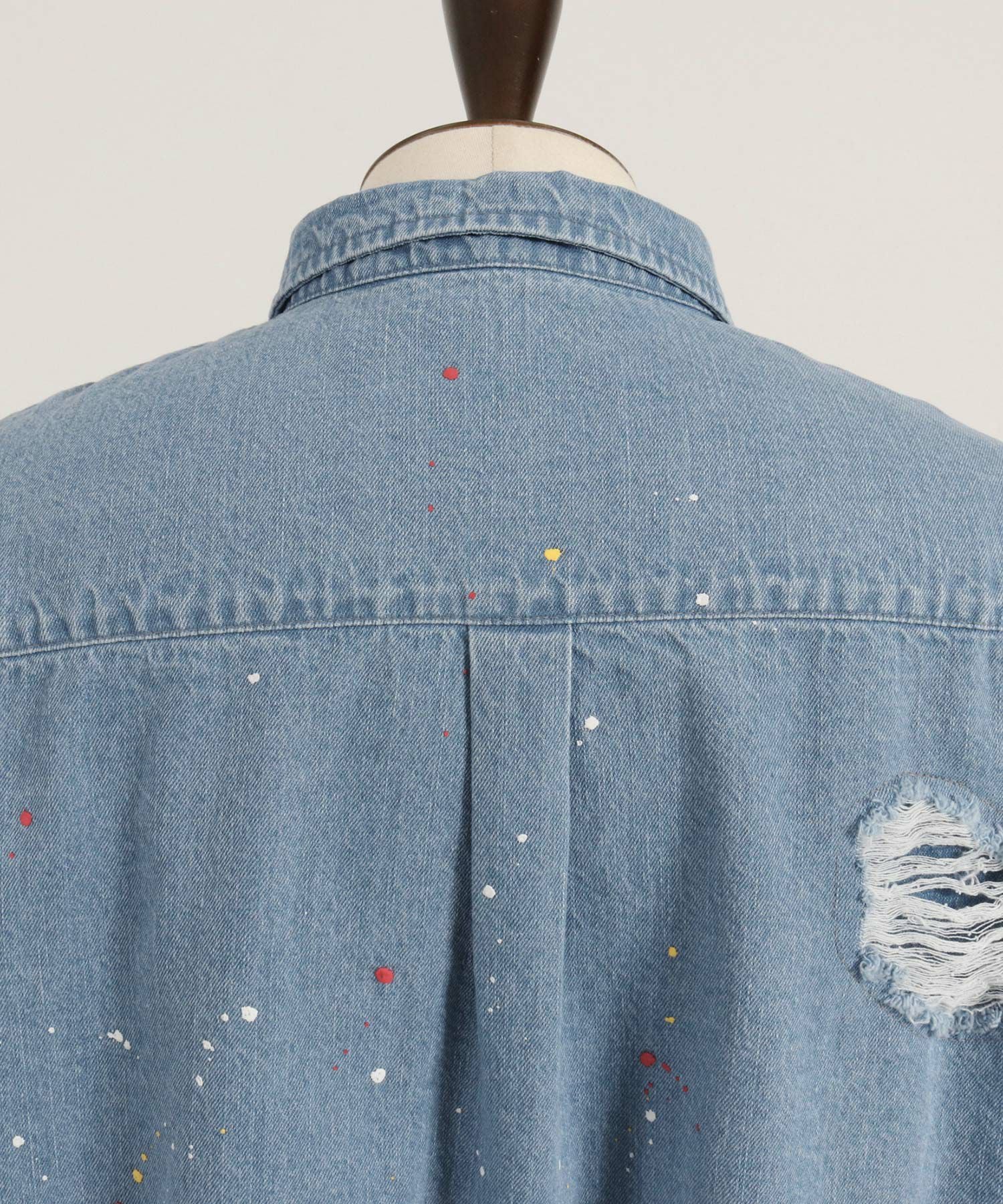 CAMBIO 30%OFF【CAMBIO(カンビオ)】Paint Distressed Over size Denim Shirts デニムシャツ(MIU-241-006)