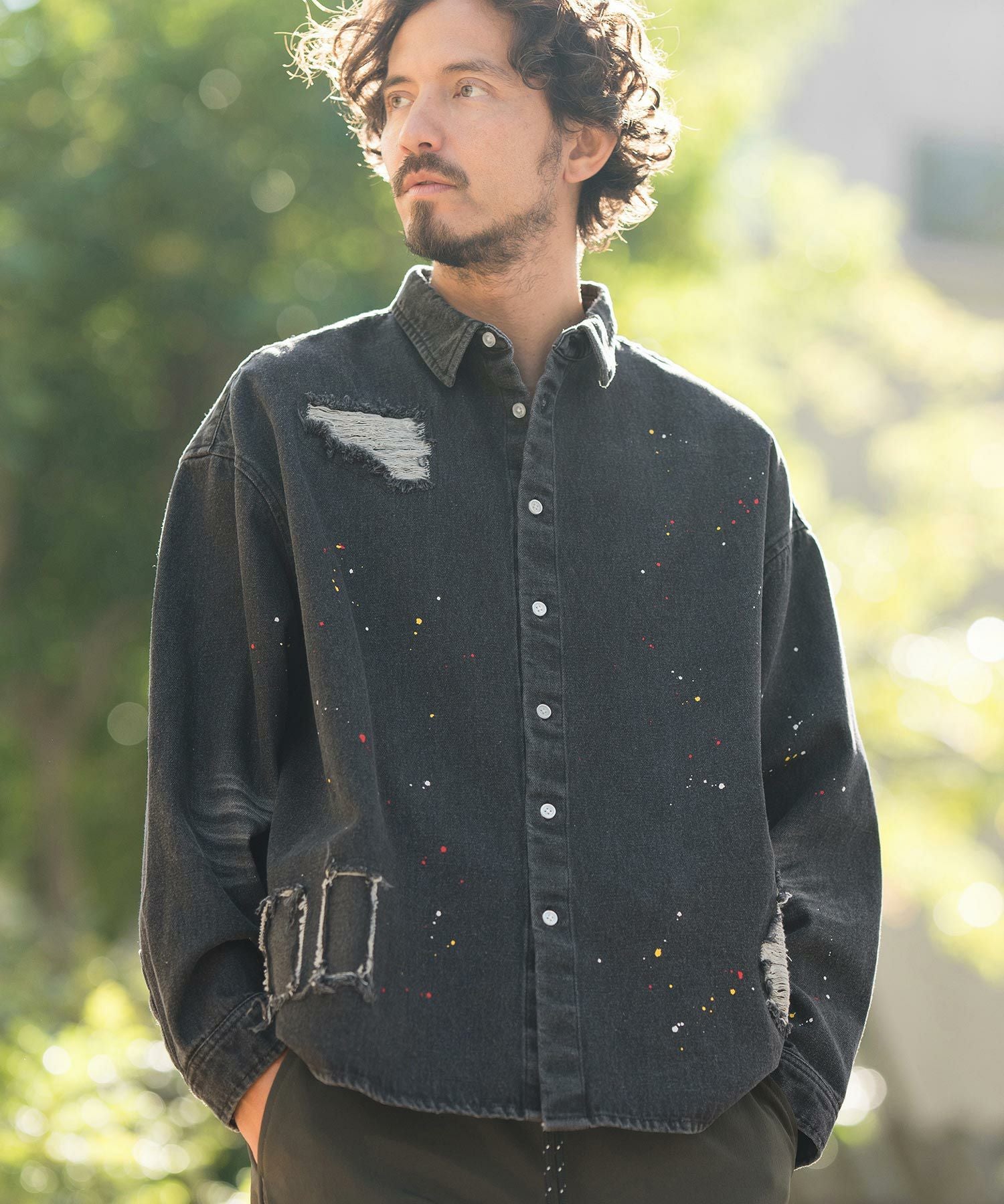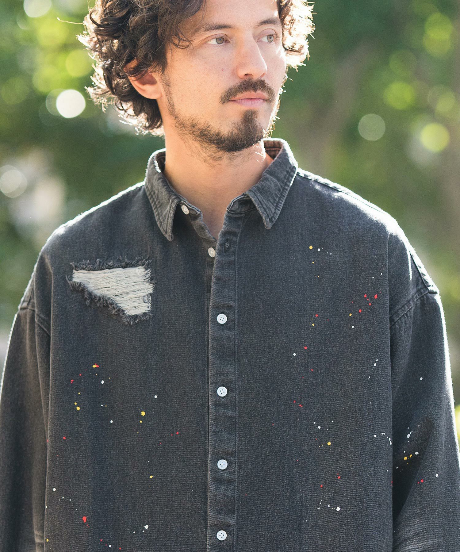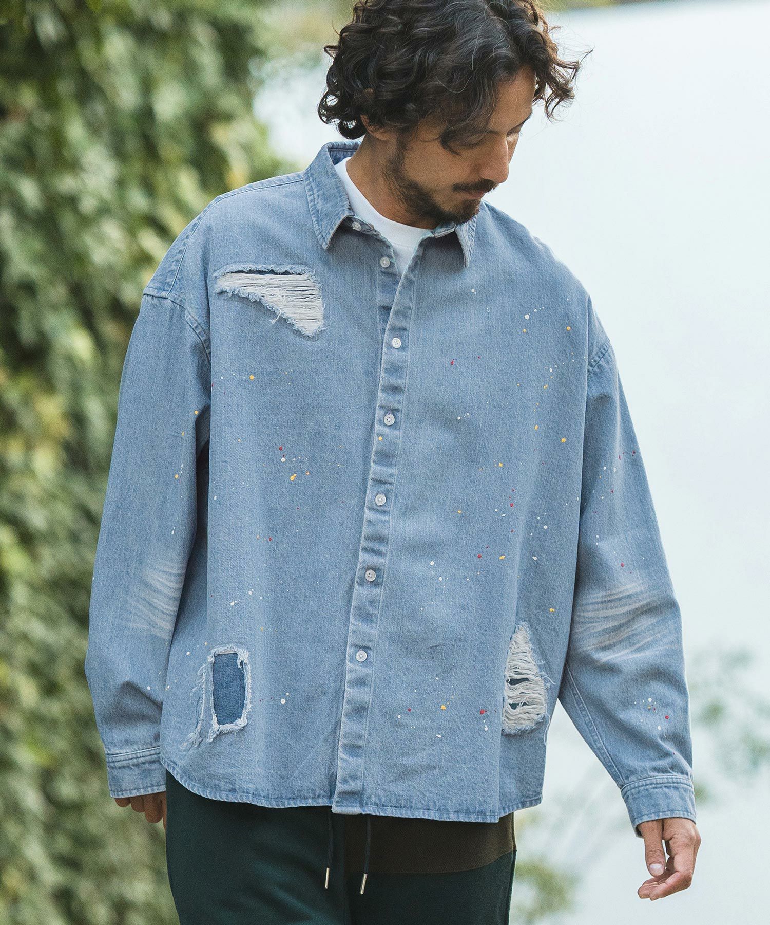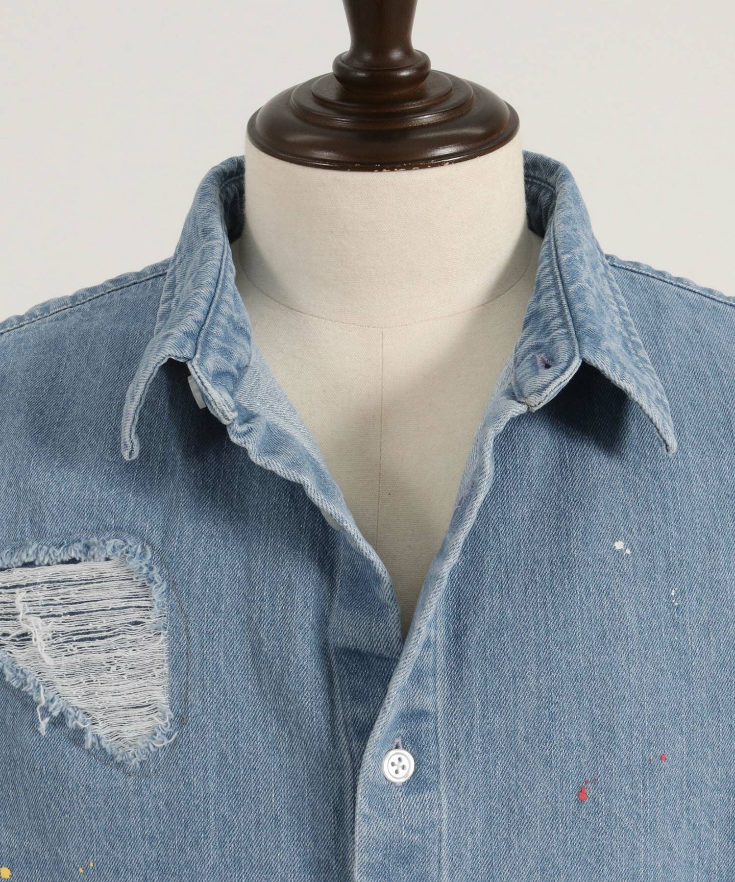 CAMBIO 30%OFF【CAMBIO(カンビオ)】Paint Distressed Over size Denim Shirts デニムシャツ(MIU-241-006)
