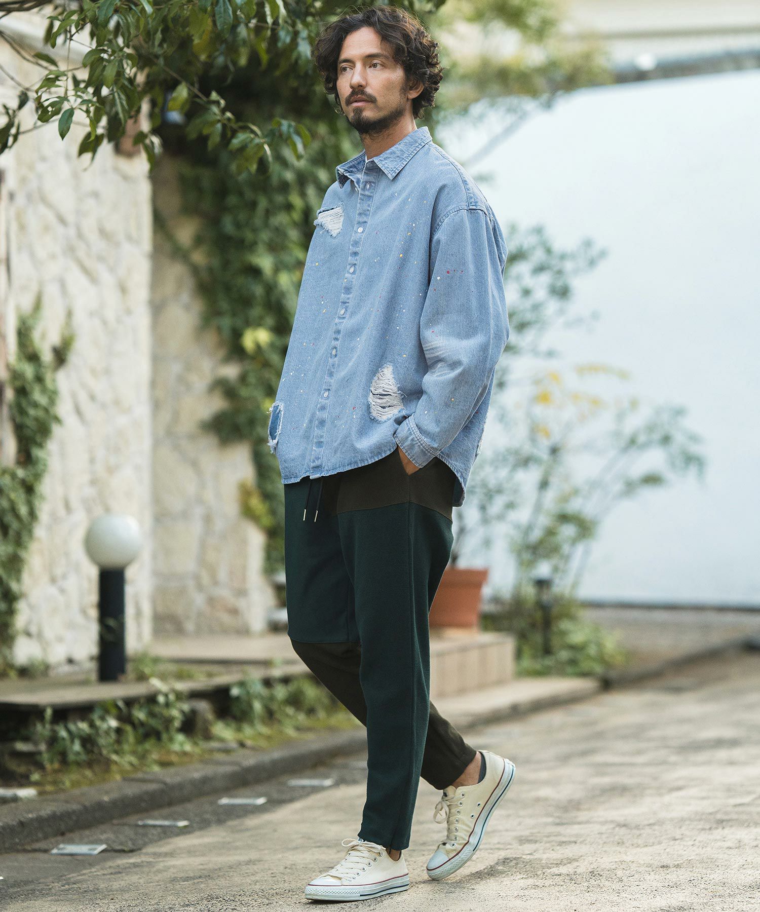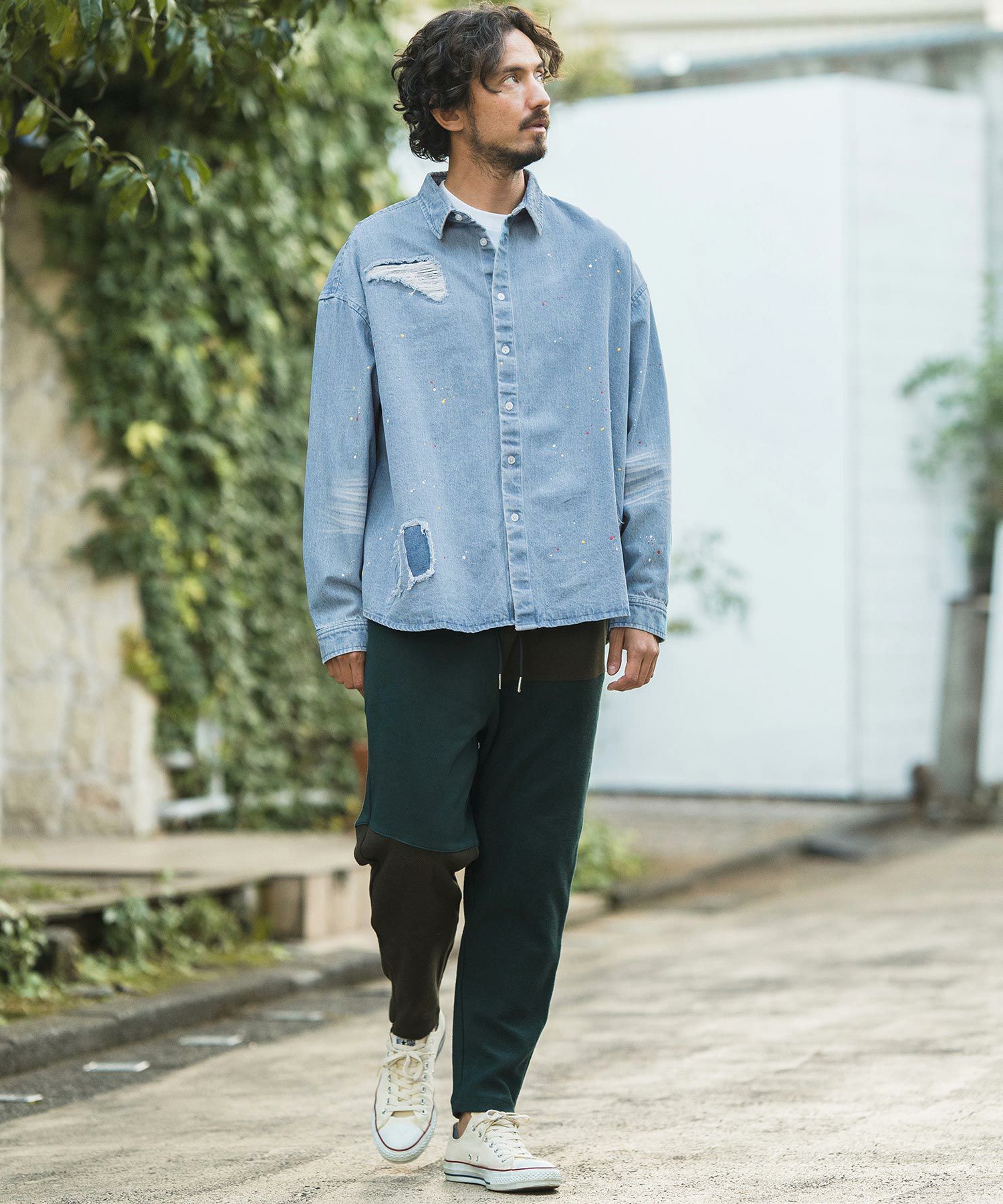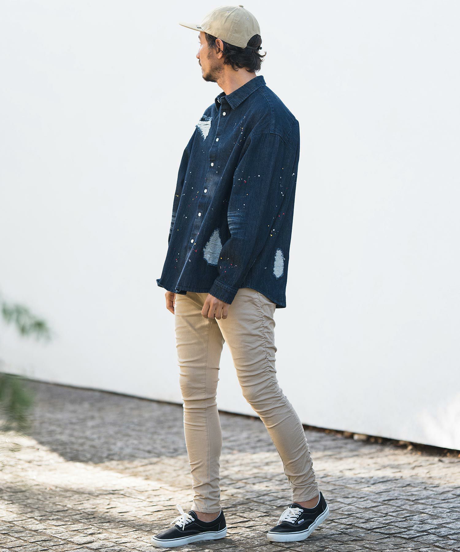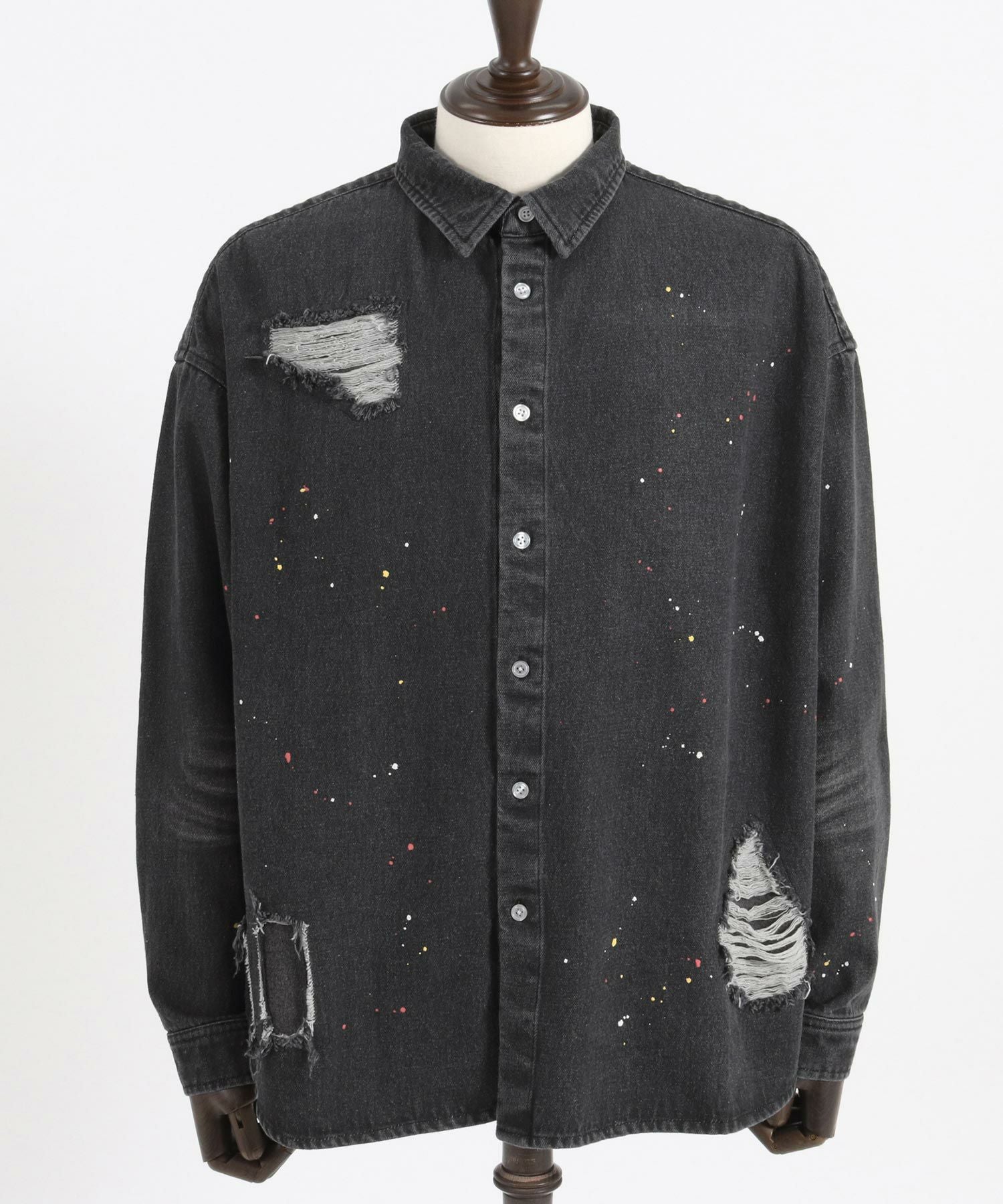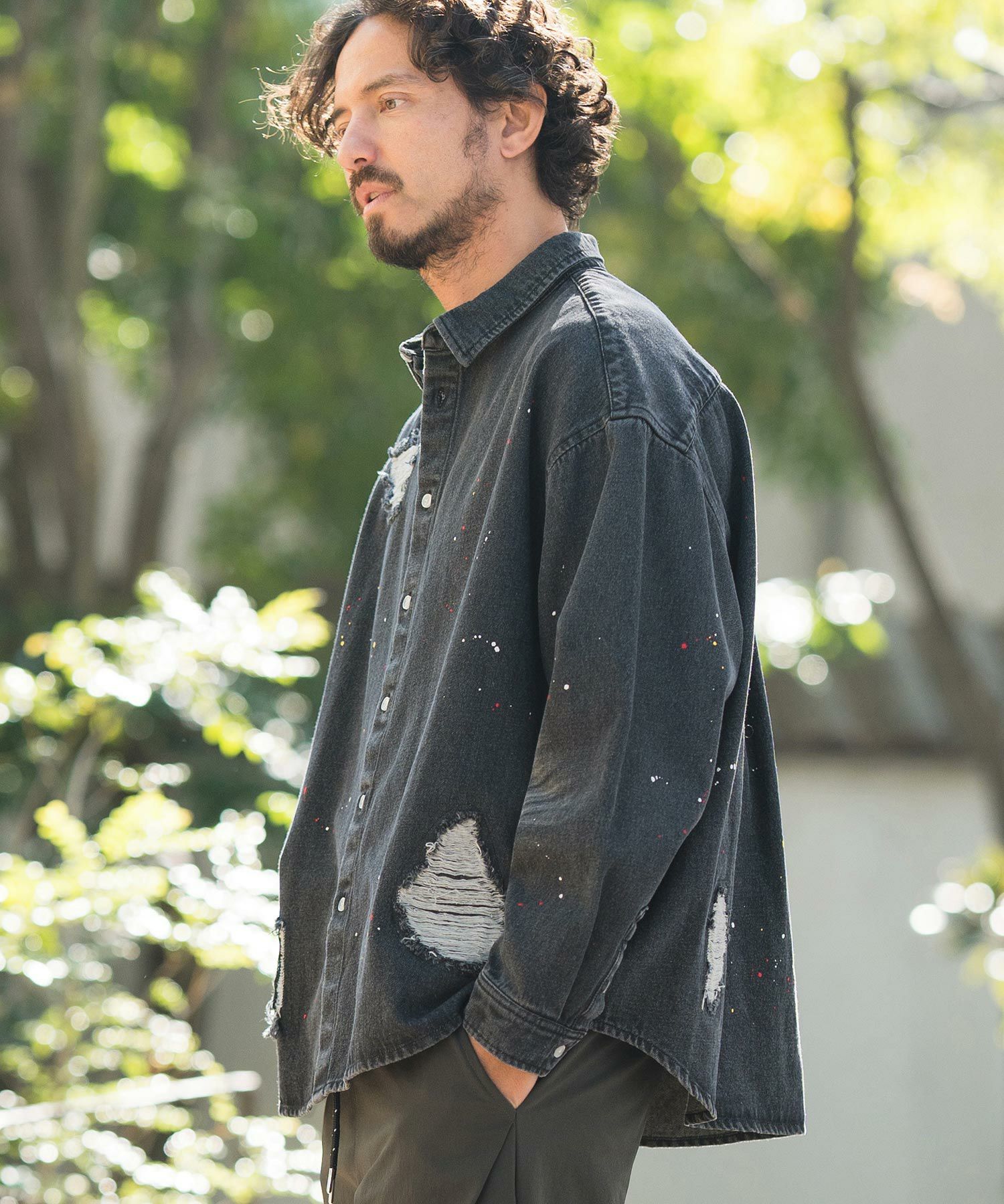 CAMBIO 30%OFF【CAMBIO(カンビオ)】Paint Distressed Over size Denim Shirts デニムシャツ(MIU-241-006)