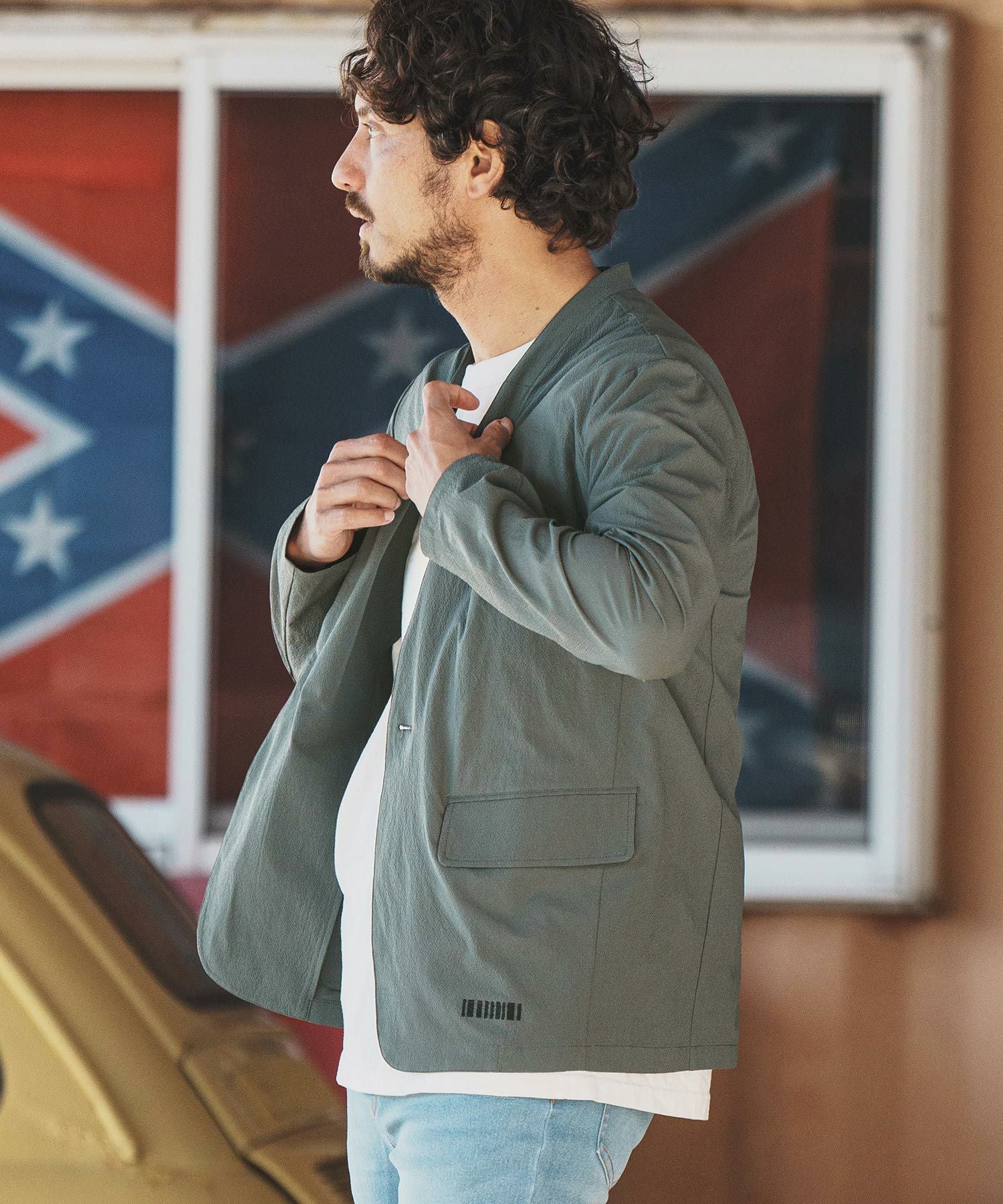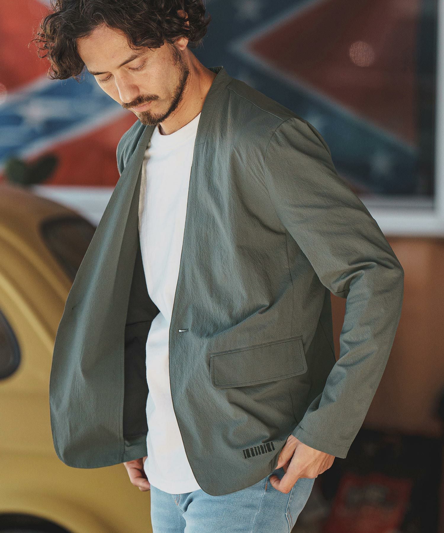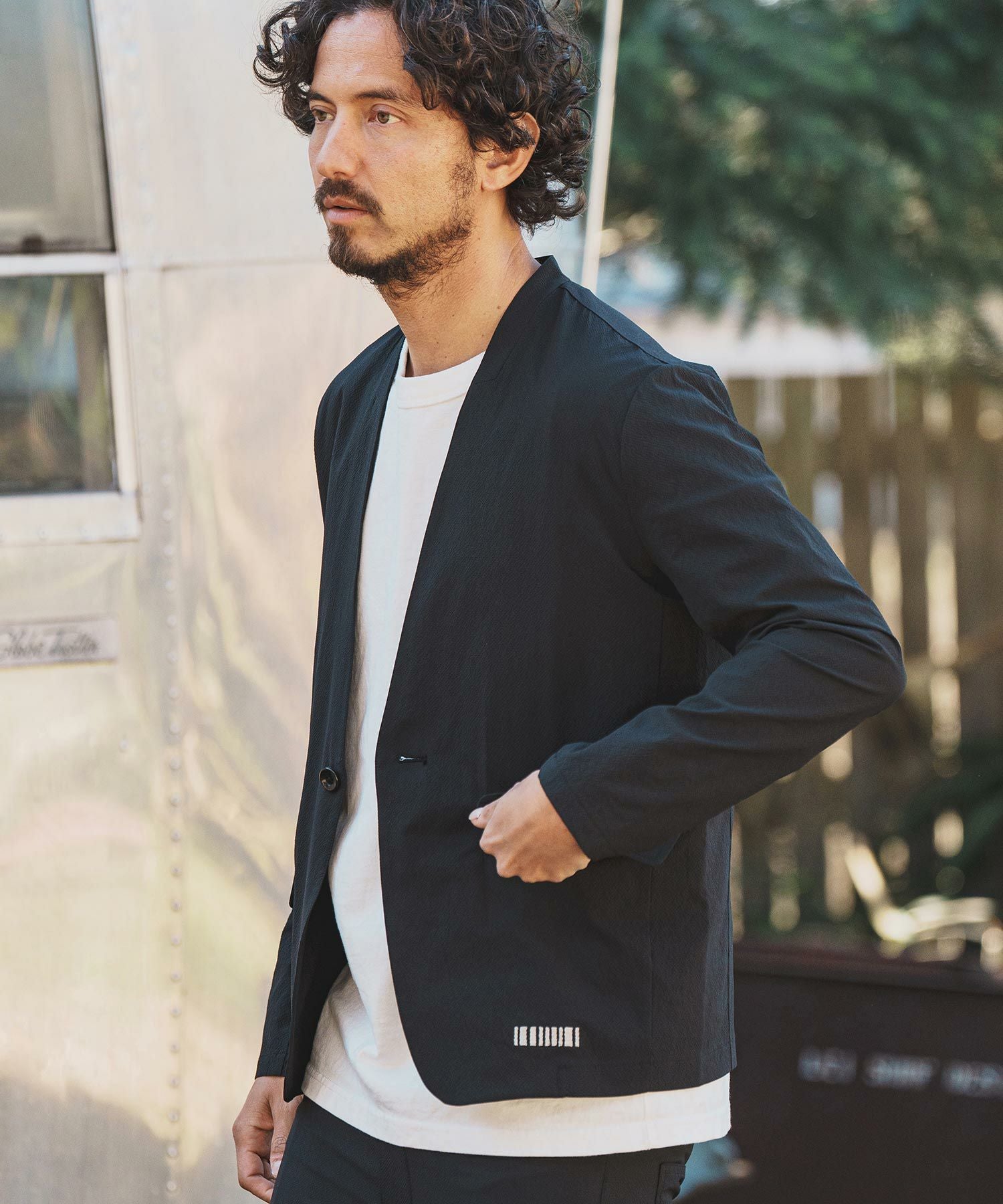felkod 50%OFF【felkod(フィルコッド)】Seersucker Collarless Jacket ノーカラージャケット(F24H020)