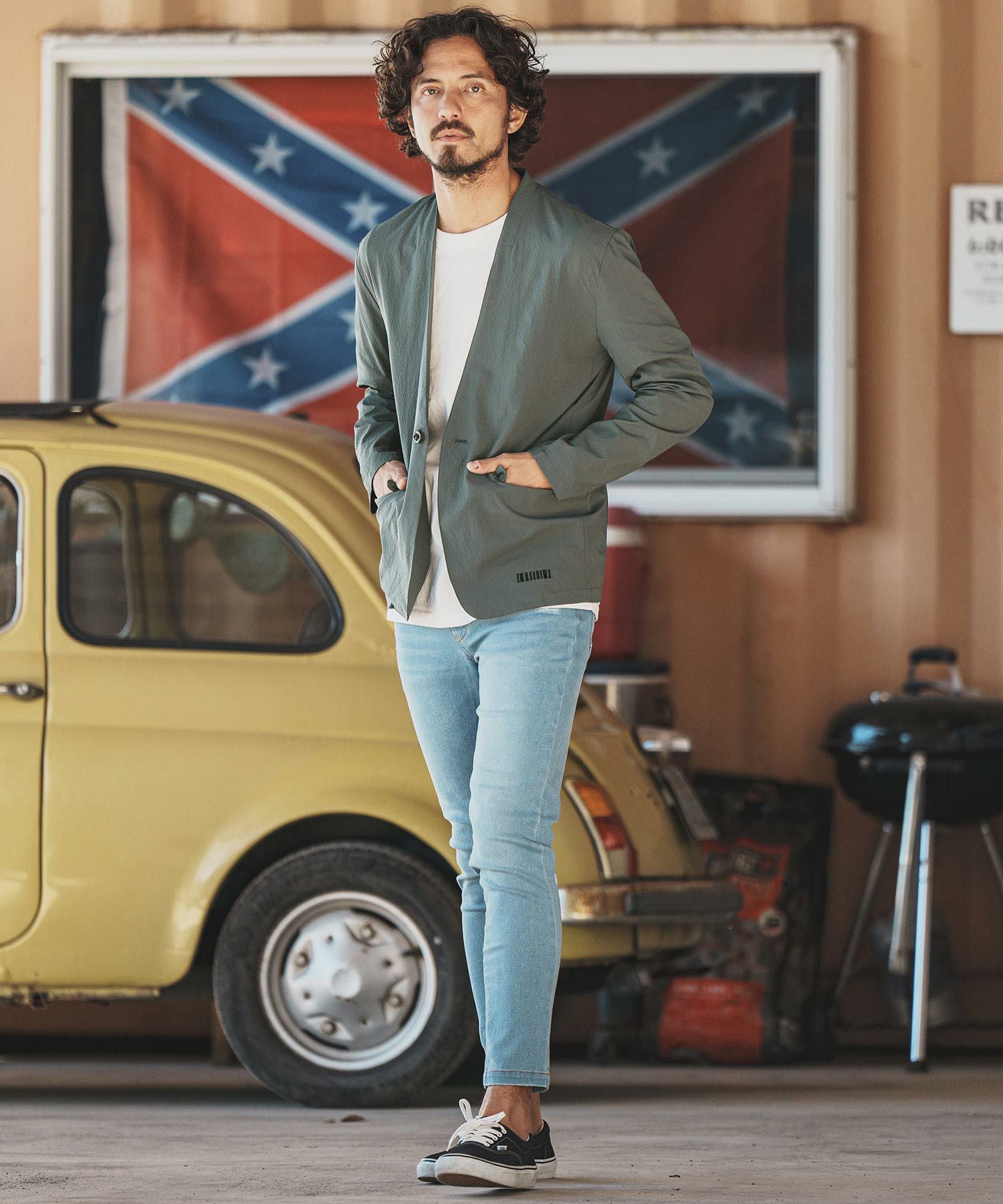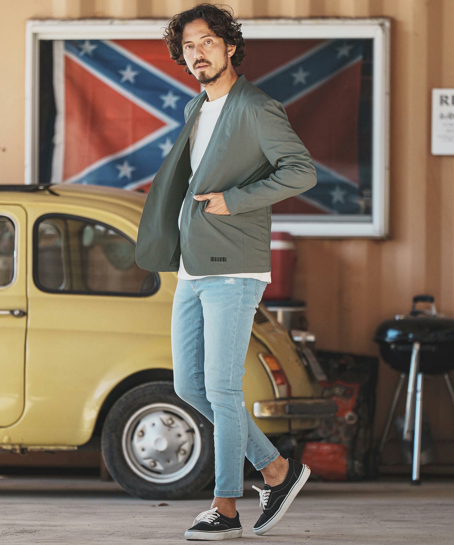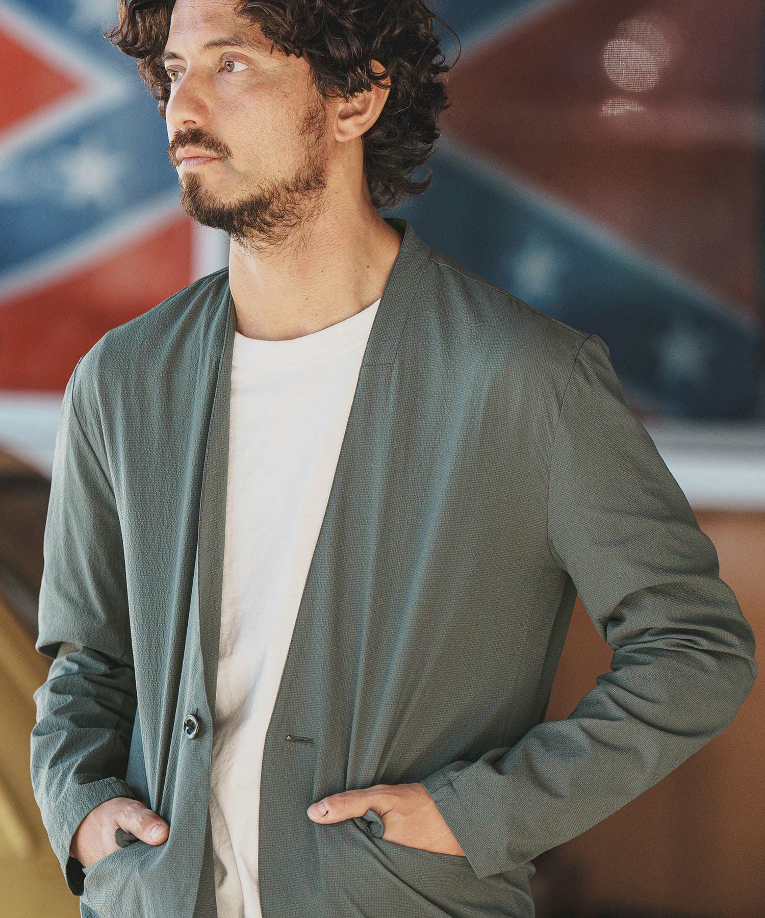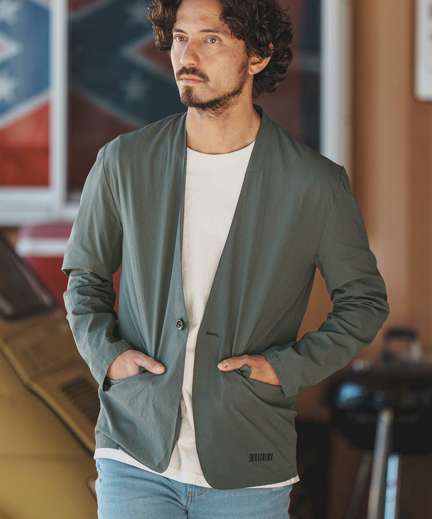 felkod 50%OFF【felkod(フィルコッド)】Seersucker Collarless Jacket ノーカラージャケット(F24H020)