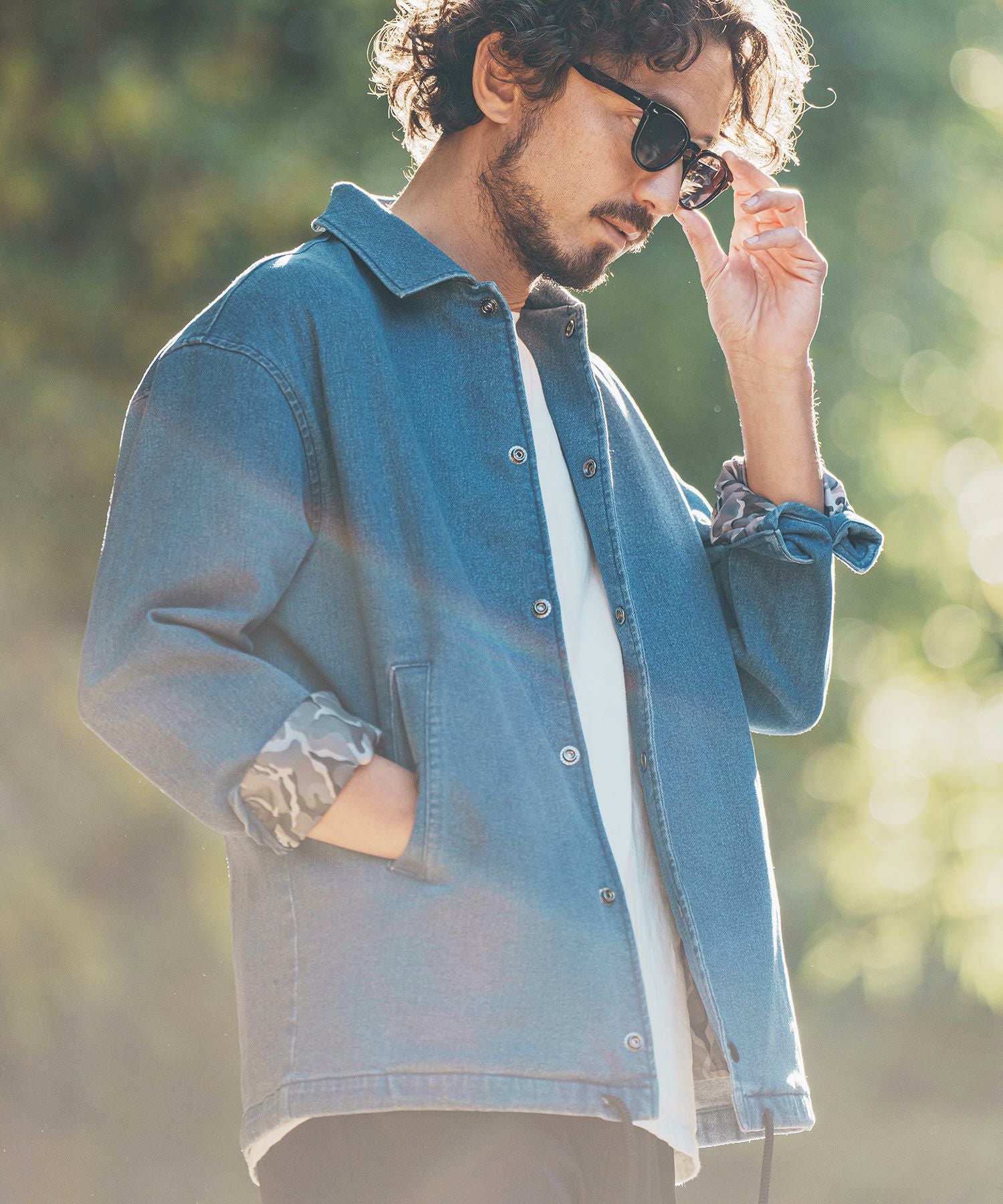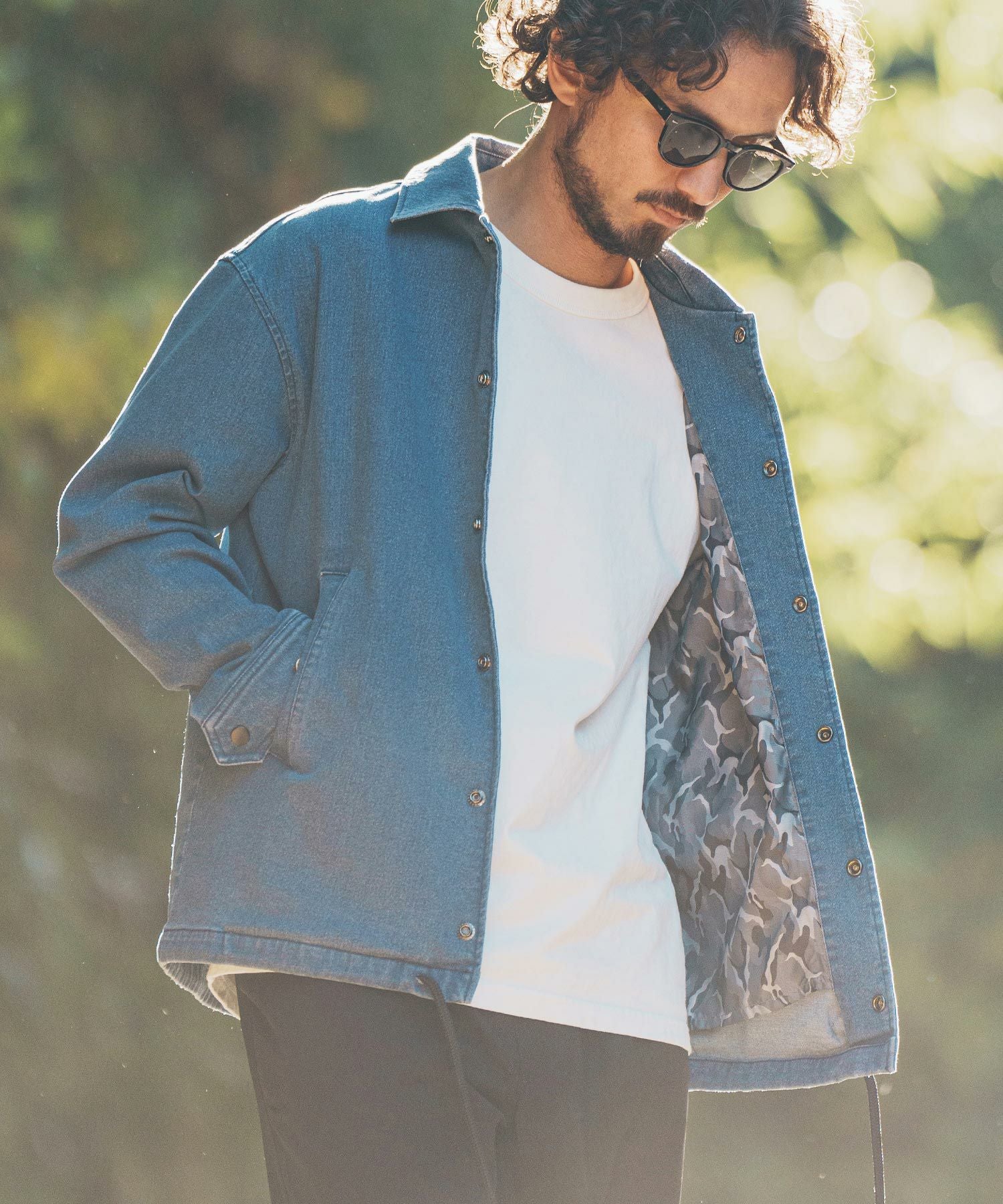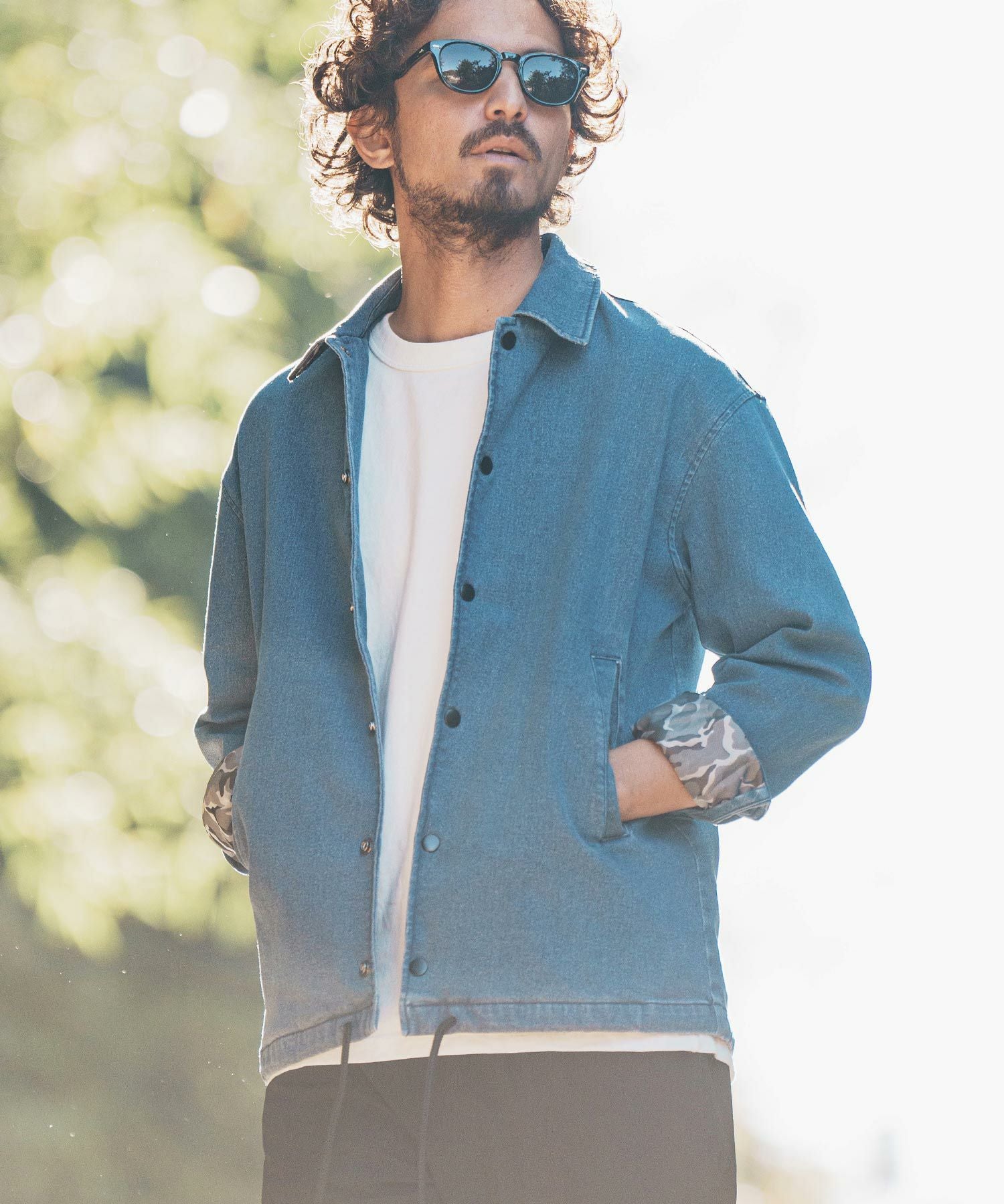 felkod 50%OFF【felkod(フィルコッド)】Camouflage Accent Denim Coach Jacket デニム コーチジャケット(F24H080)