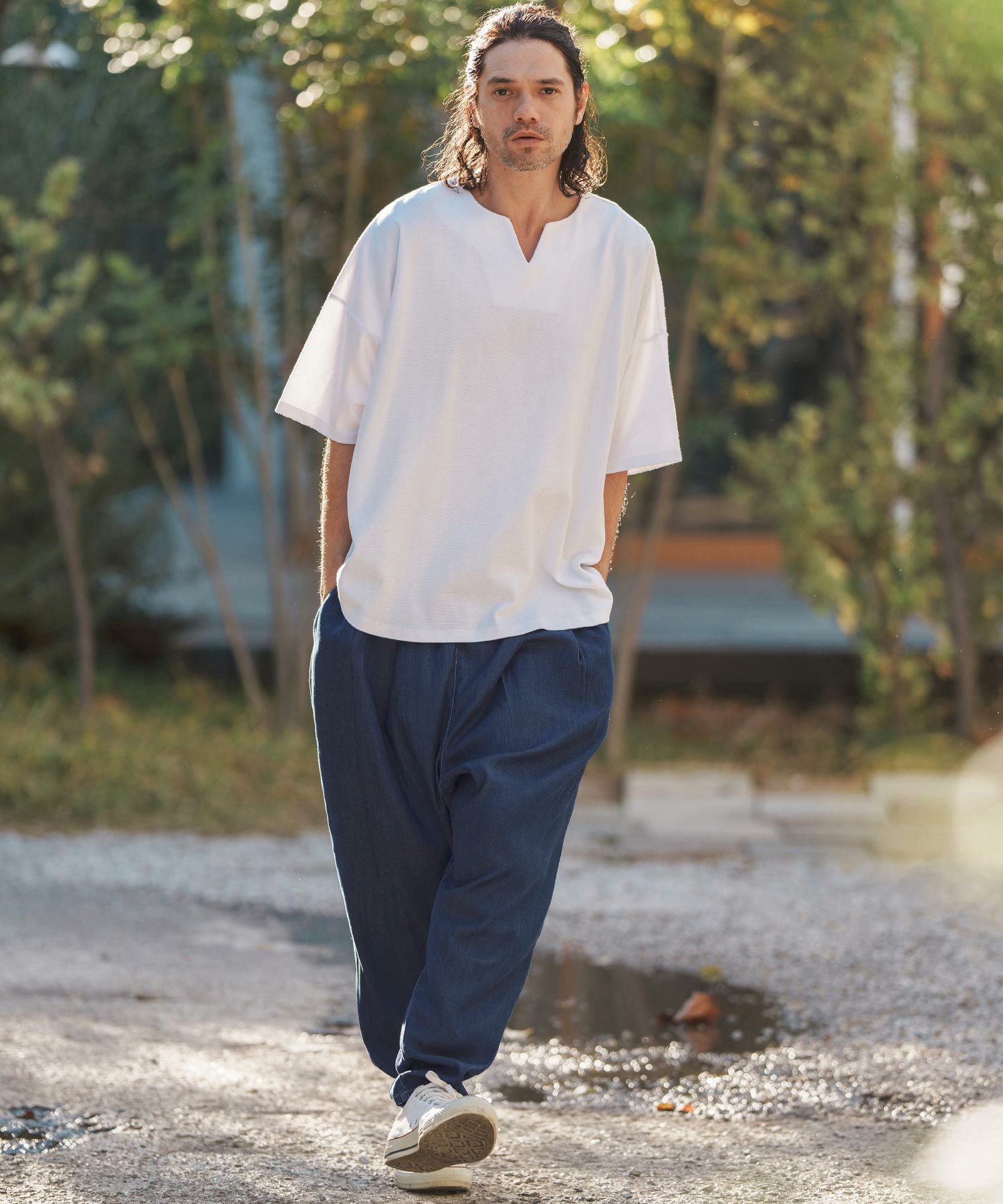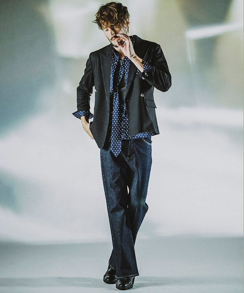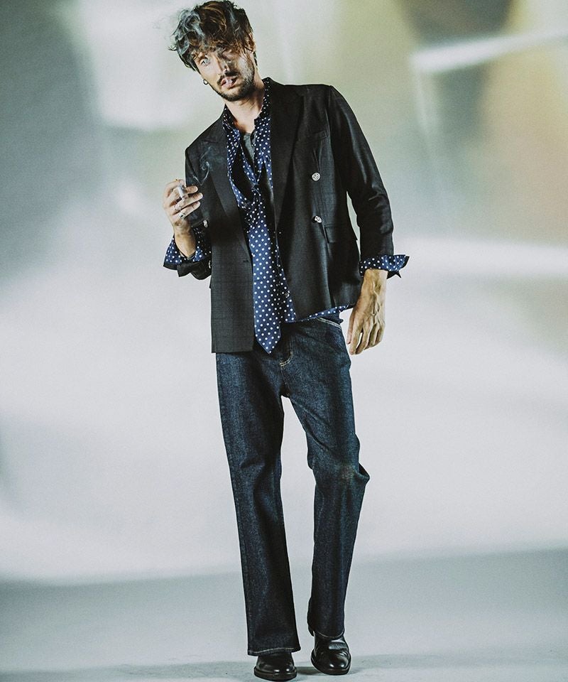 MROLIVE 50%OFF【MROLIVE(ミスターオリーブ)】RINSE WASH 8oz DENIM - 2TACK WIDE EASY PANTS デニムイージーパンツ(M241105)