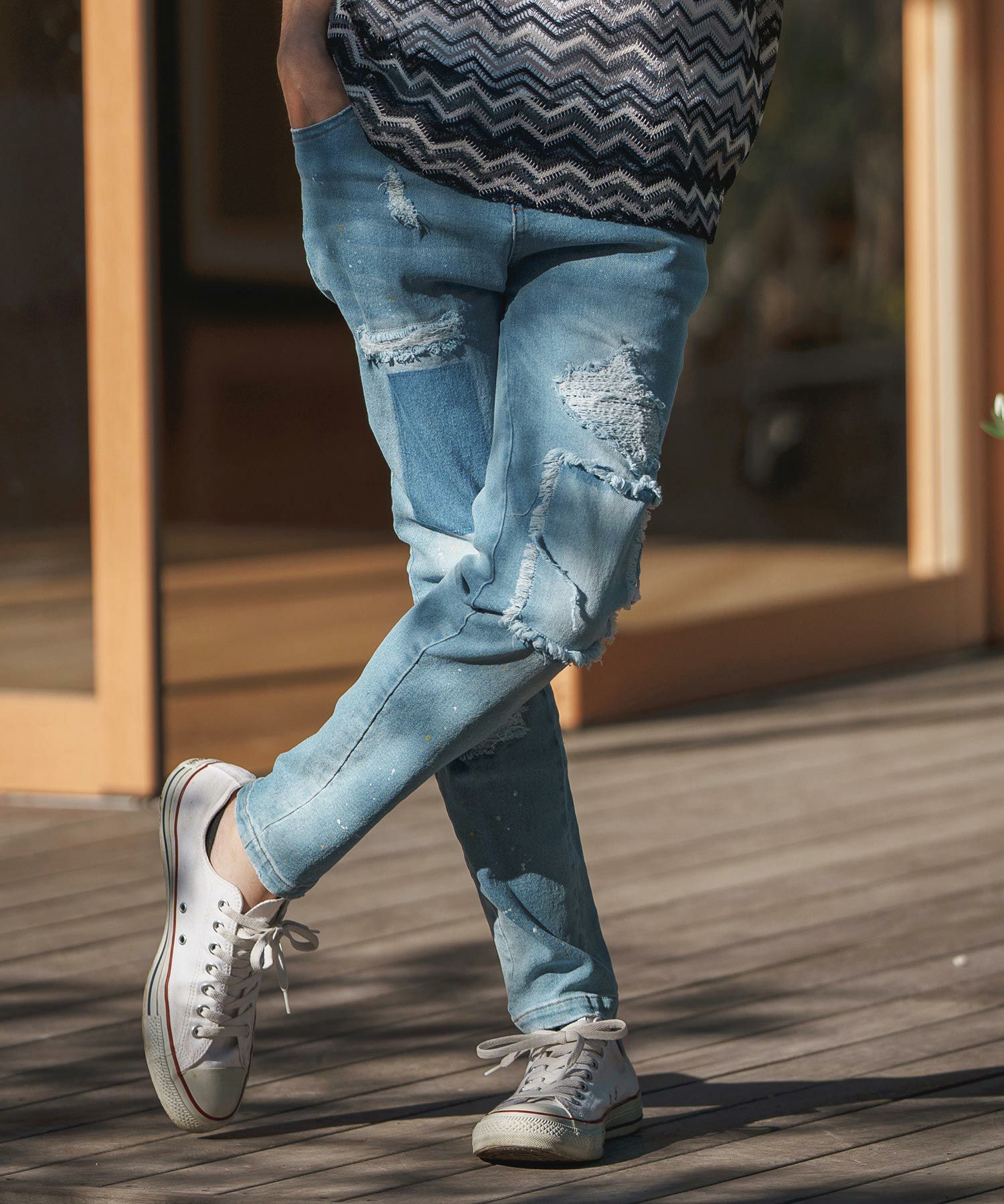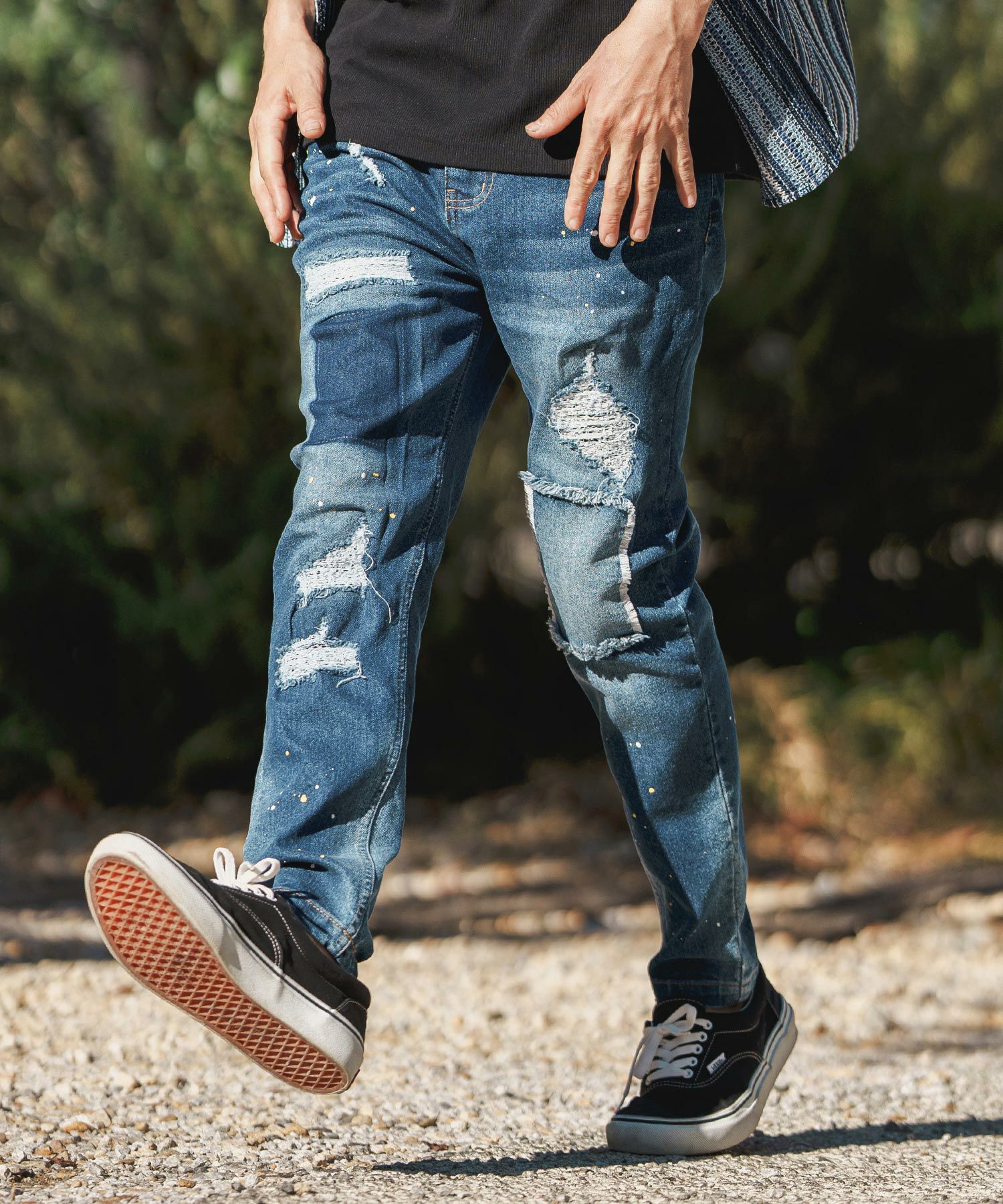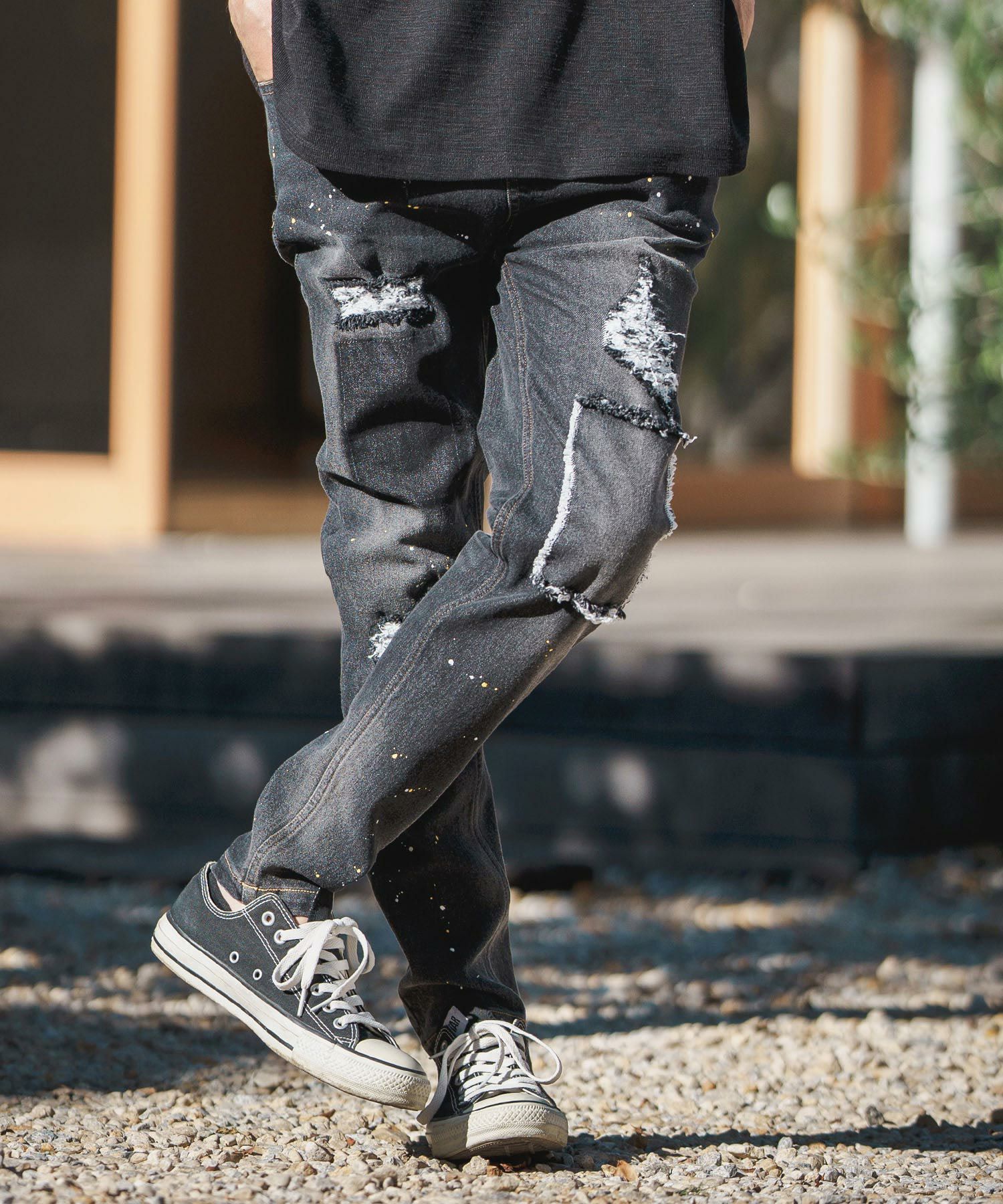 CAMBIO 30%OFF【CAMBIO(カンビオ)】11oz Damage Paint Stretch Denim Pants デニムパンツ(MIU-241-009)