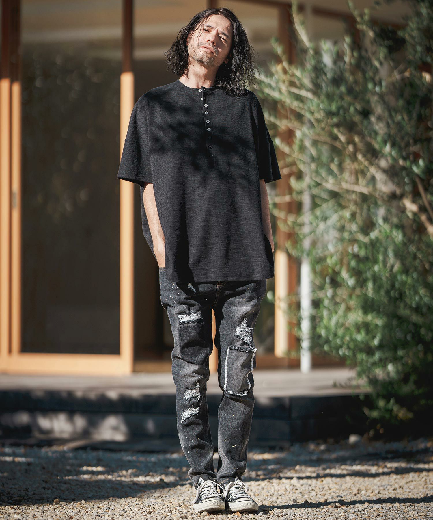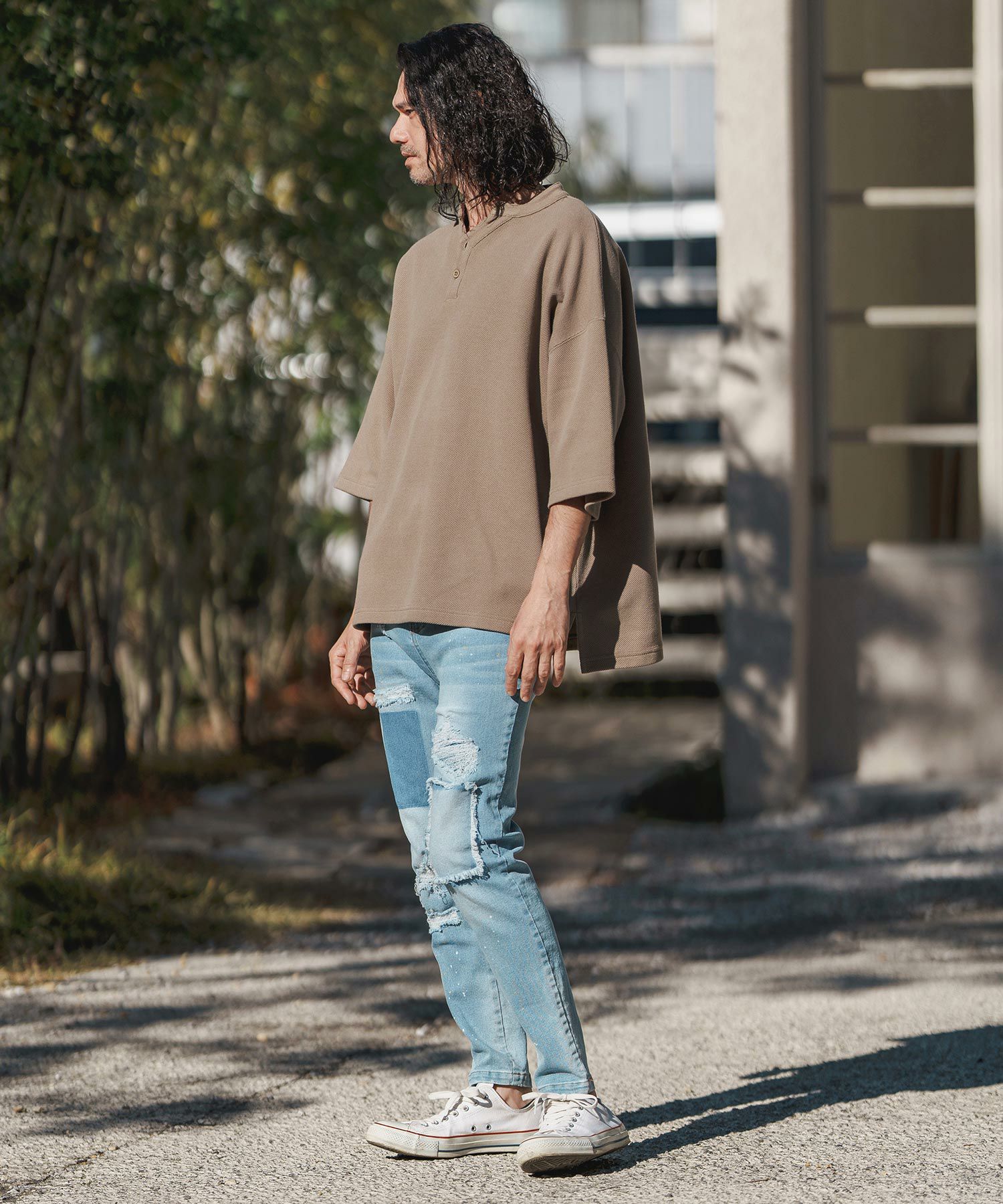 NO ID. 50%OFF【NO ID.(ノーアイディー)】 サーマルヘンリーネックBIG-T ビッグTシャツ(854006-692T)