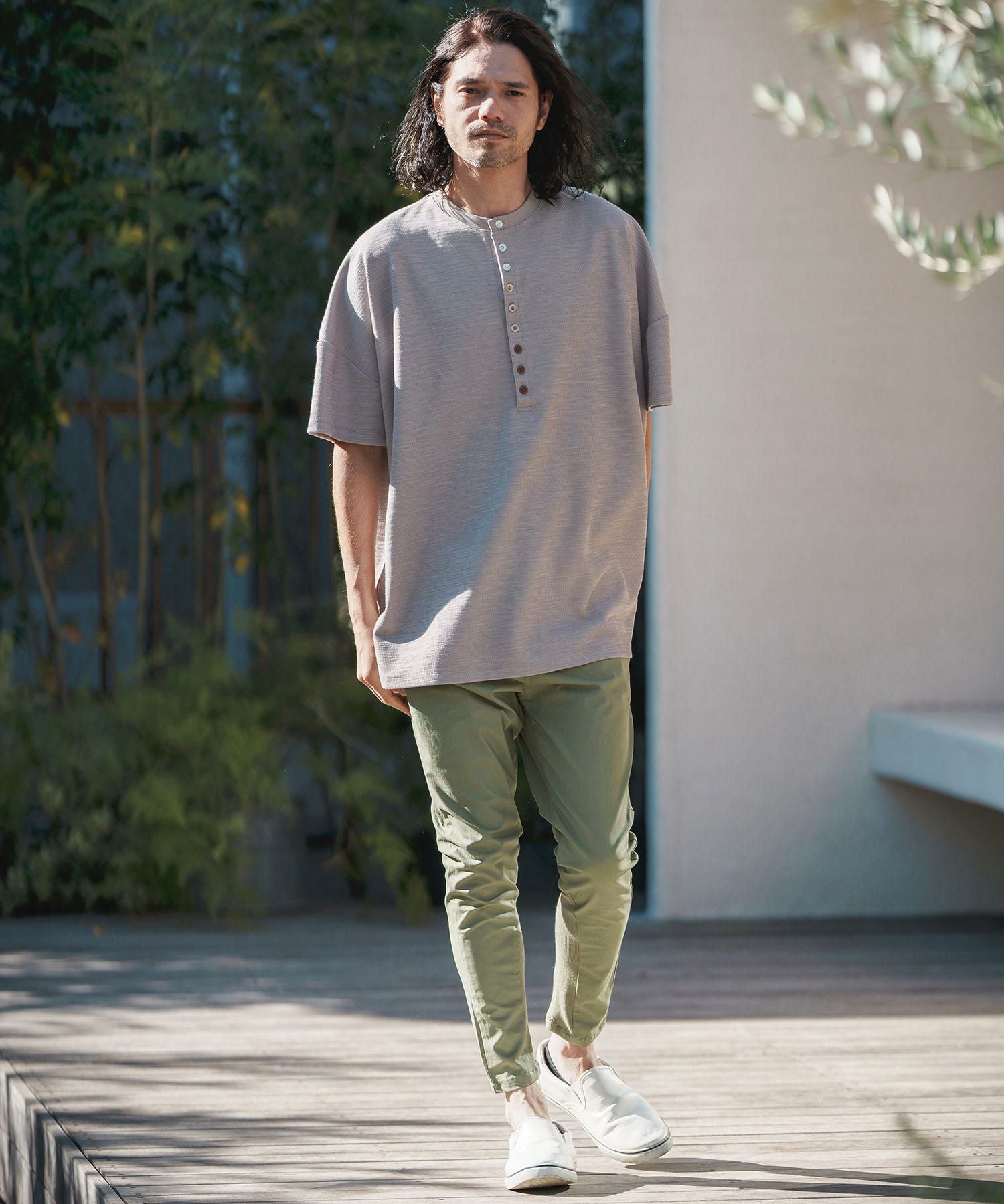 CAMBIO 50%OFF【CAMBIO(カンビオ)】Gradation Button Henley Neck Short Sleeve Cut sew Tシャツ(S22824cmb)