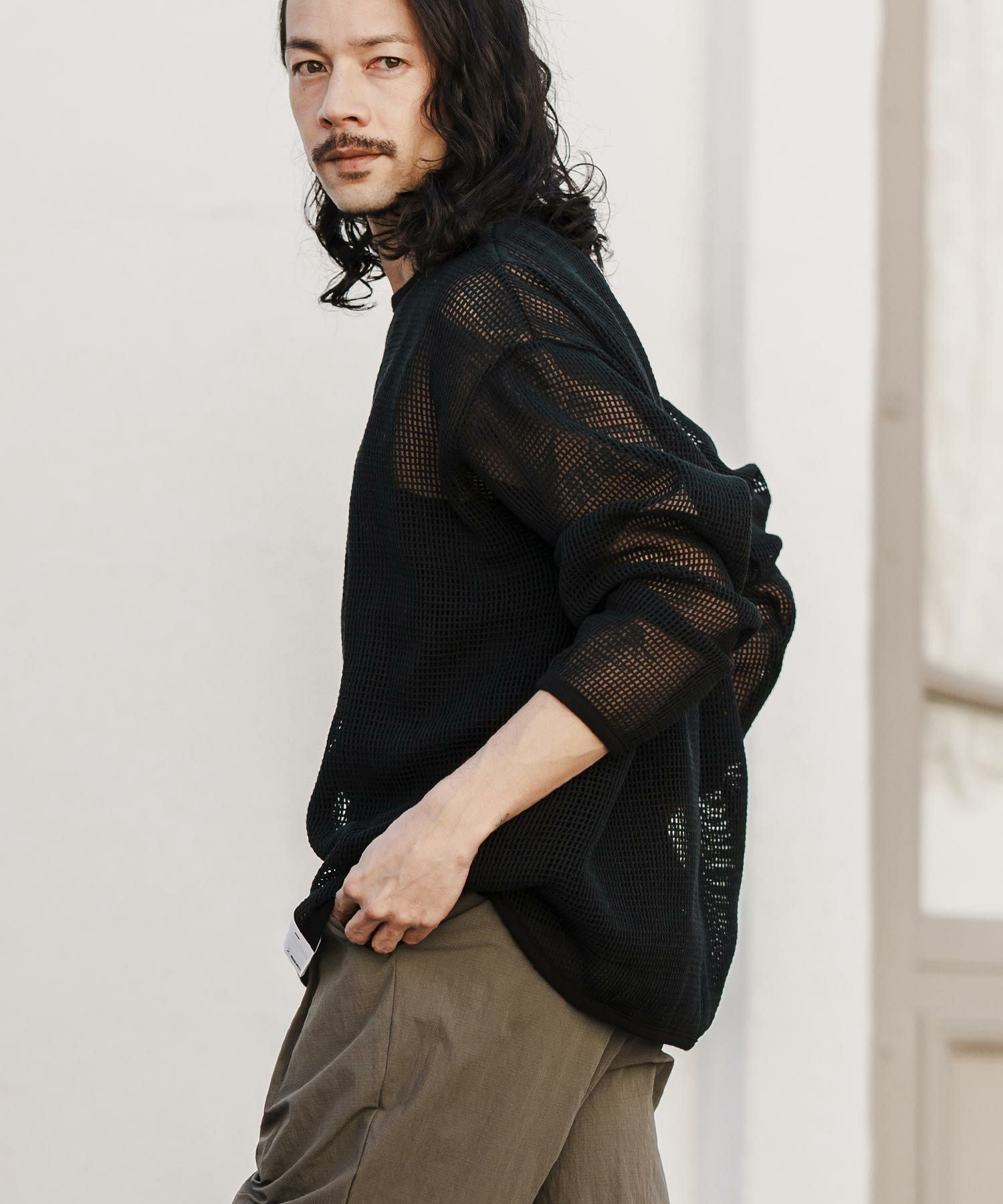 CAMBIO 30%OFF【CAMBIO(カンビオ)】Cotton Mesh Long Sleeve Cut sew カットソー(PF-241-007)
