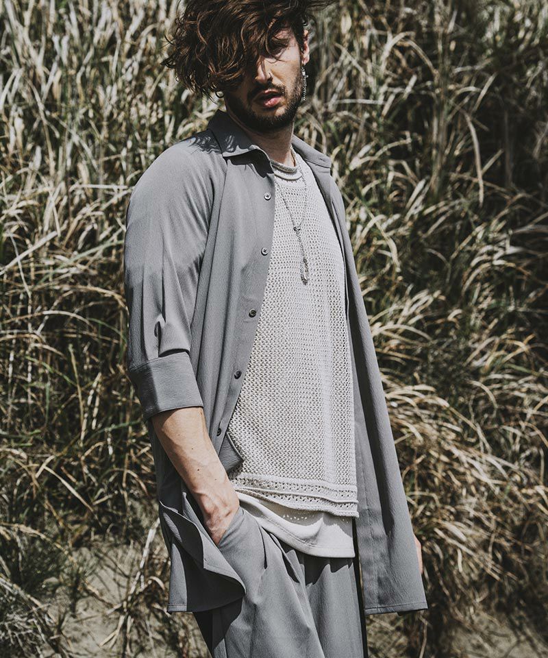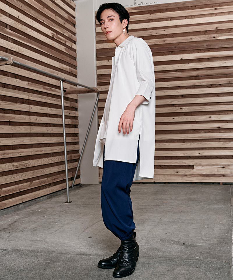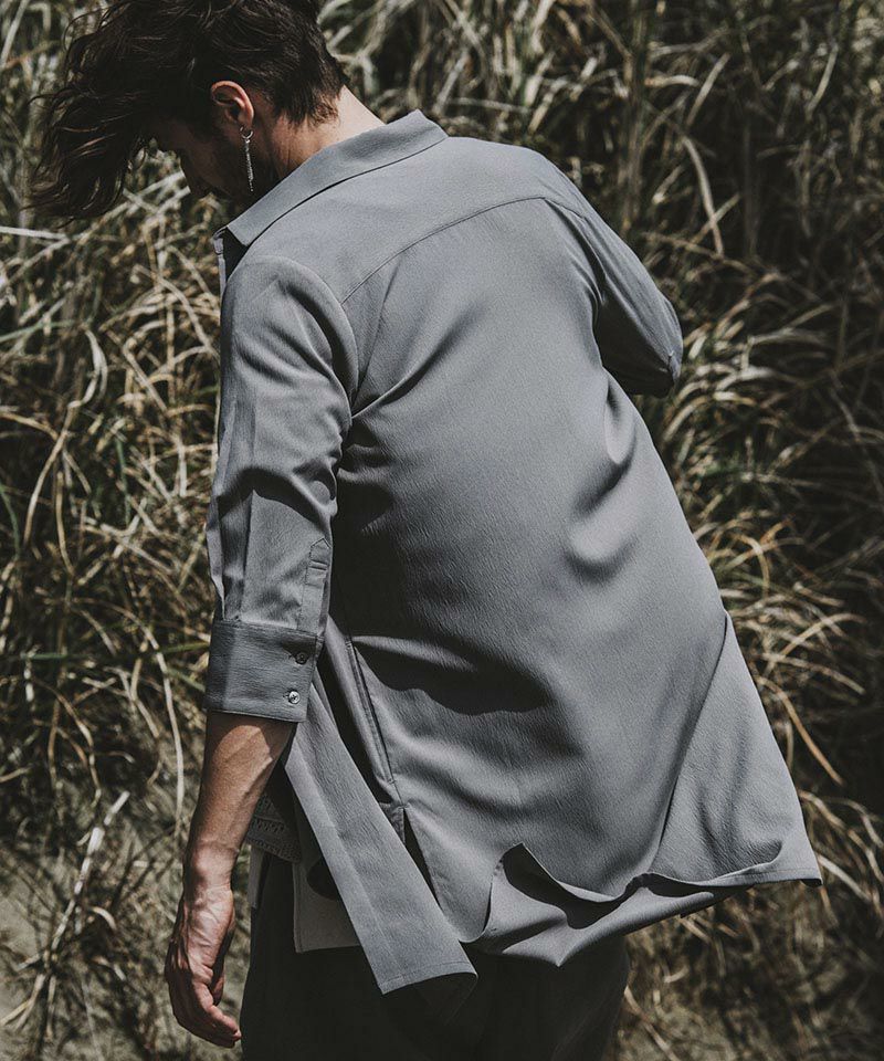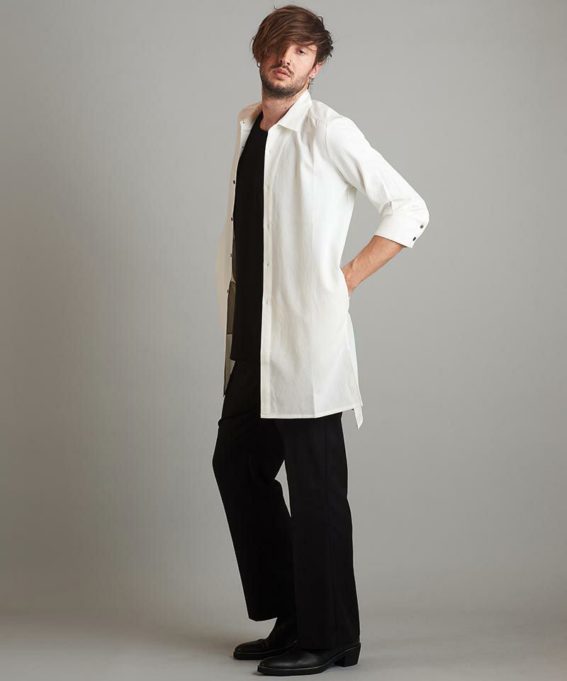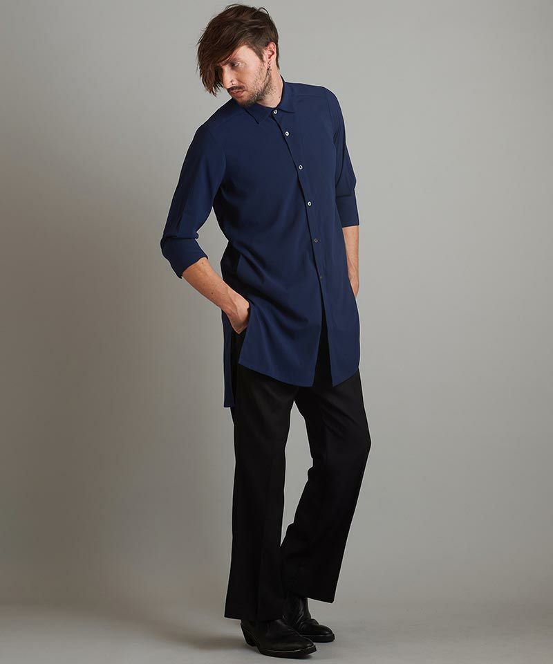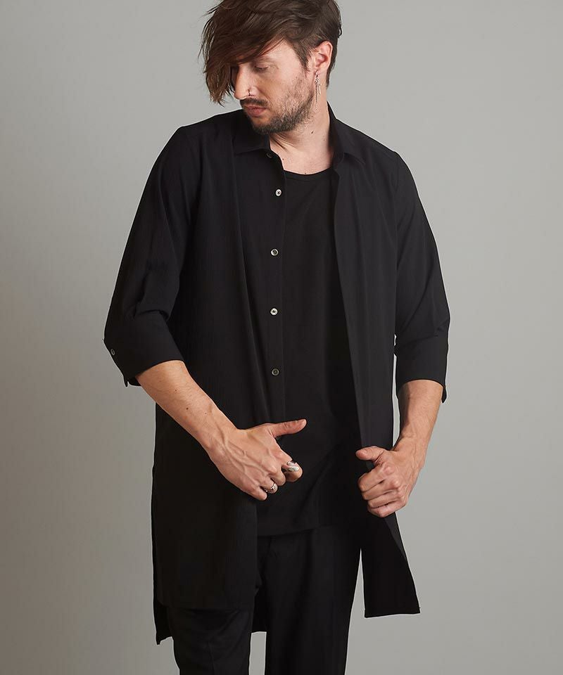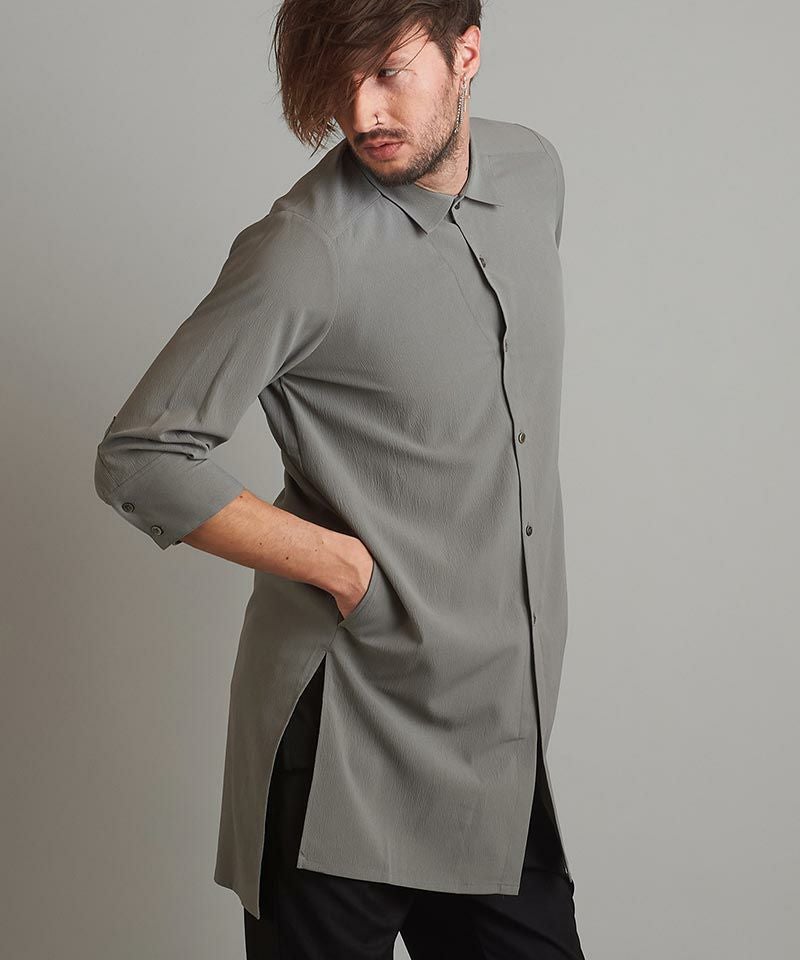 NO ID. 60%OFF【NO ID.(ノーアイディー)】サイドスリット7分袖ロングSH シャツ(453006-496S)