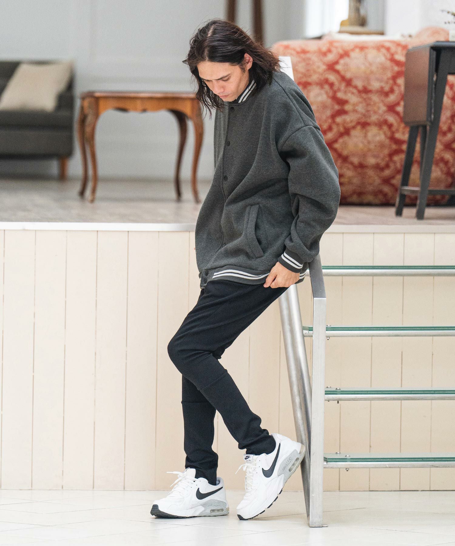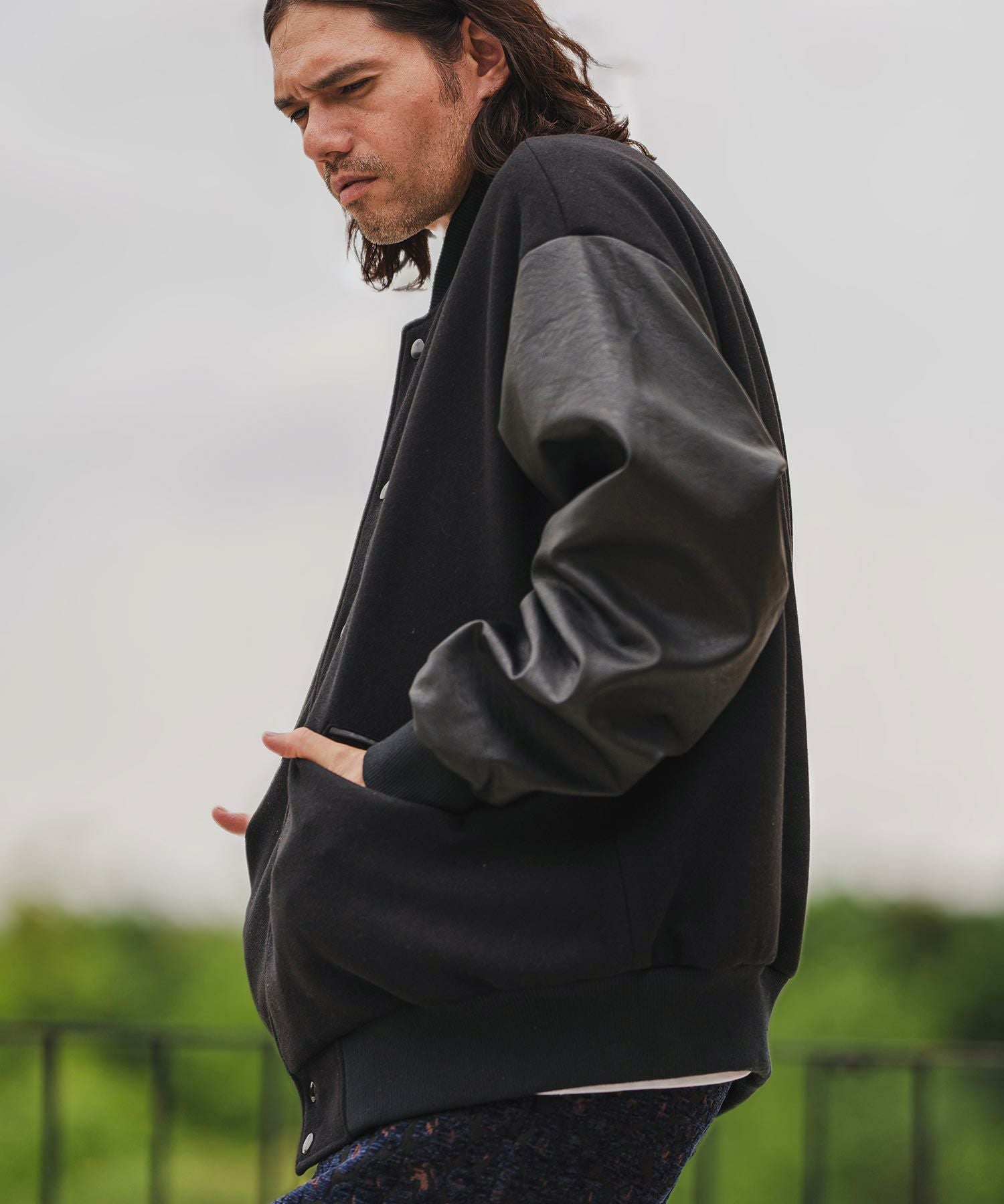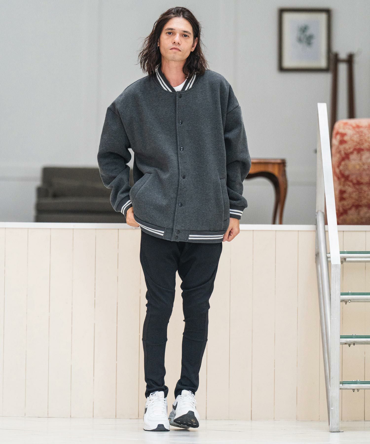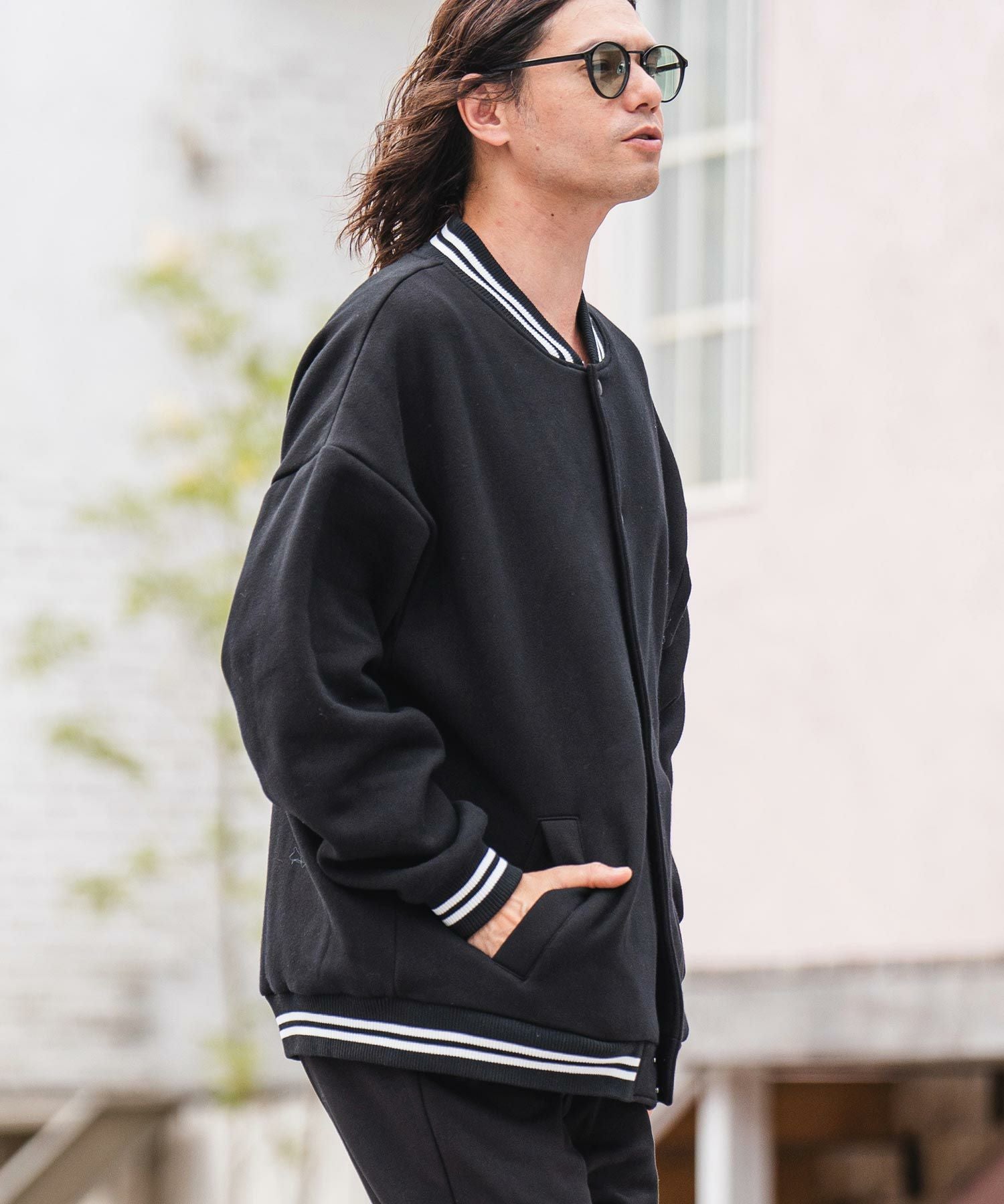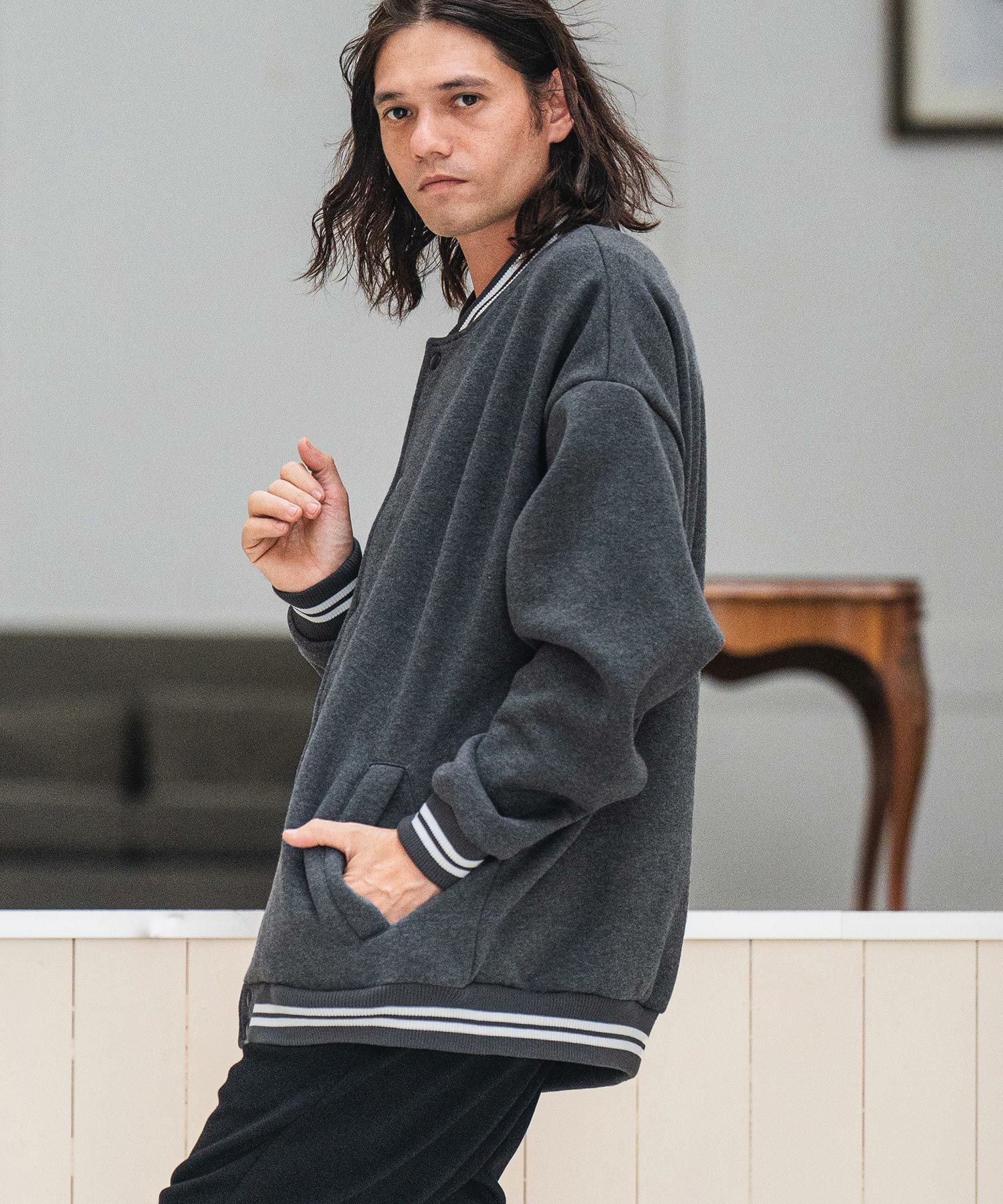 CAMBIO 50%OFF【CAMBIO(カンビオ)】リブボーダー裏起毛スウェットスタジャン(CMB-R0036)