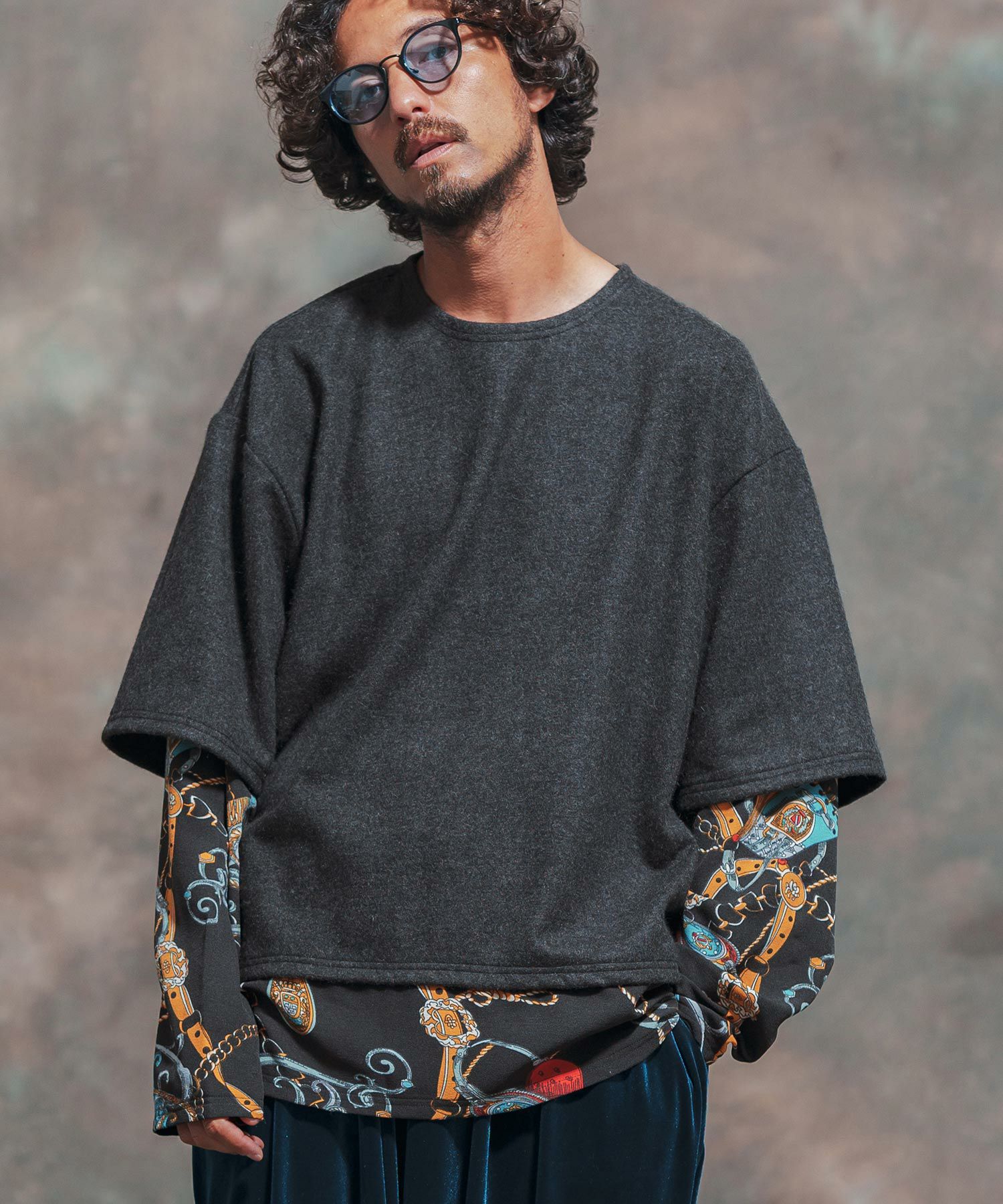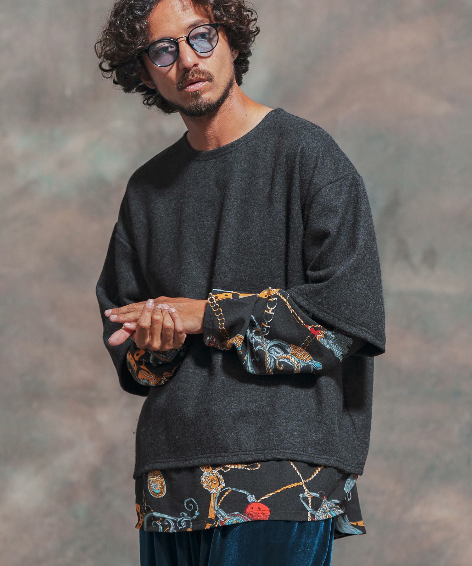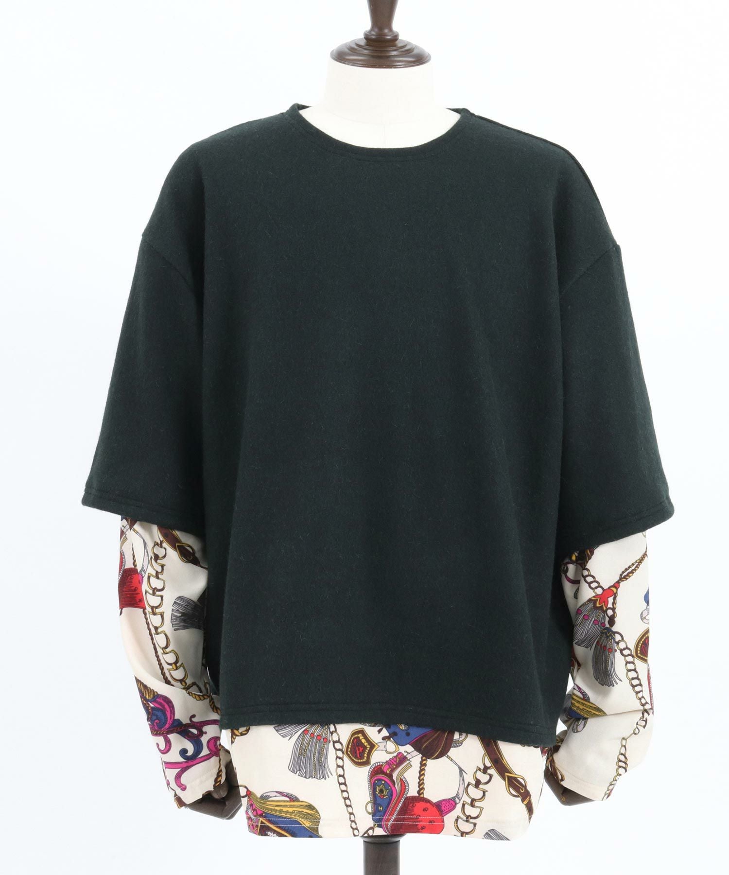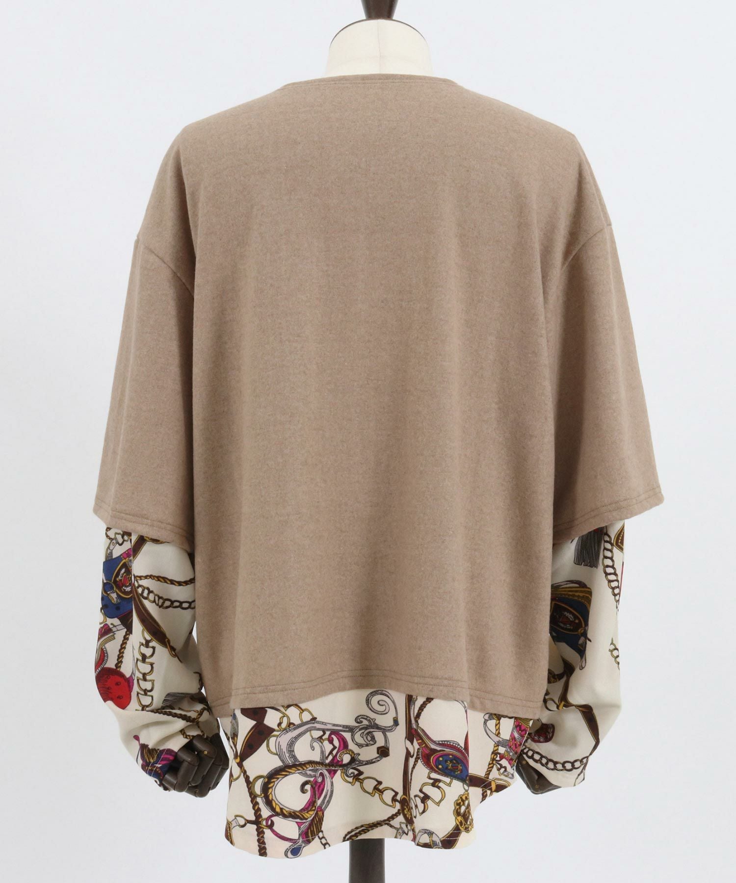 Jih Nunc 30%OFF【Jih Nunc(ジーヌンク)】起毛×チェーン柄フェイクレイヤードカットソー(JIH-R1013)