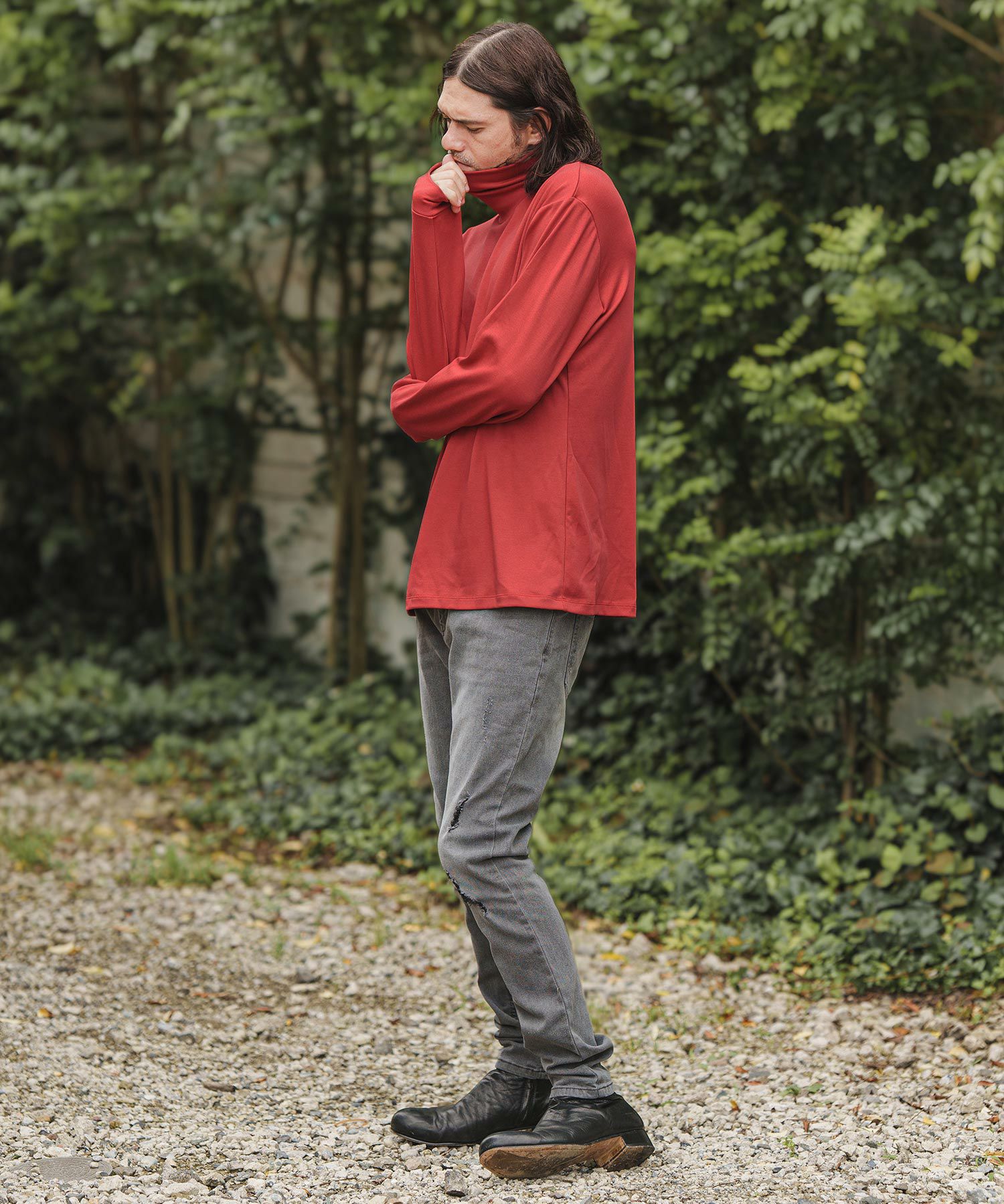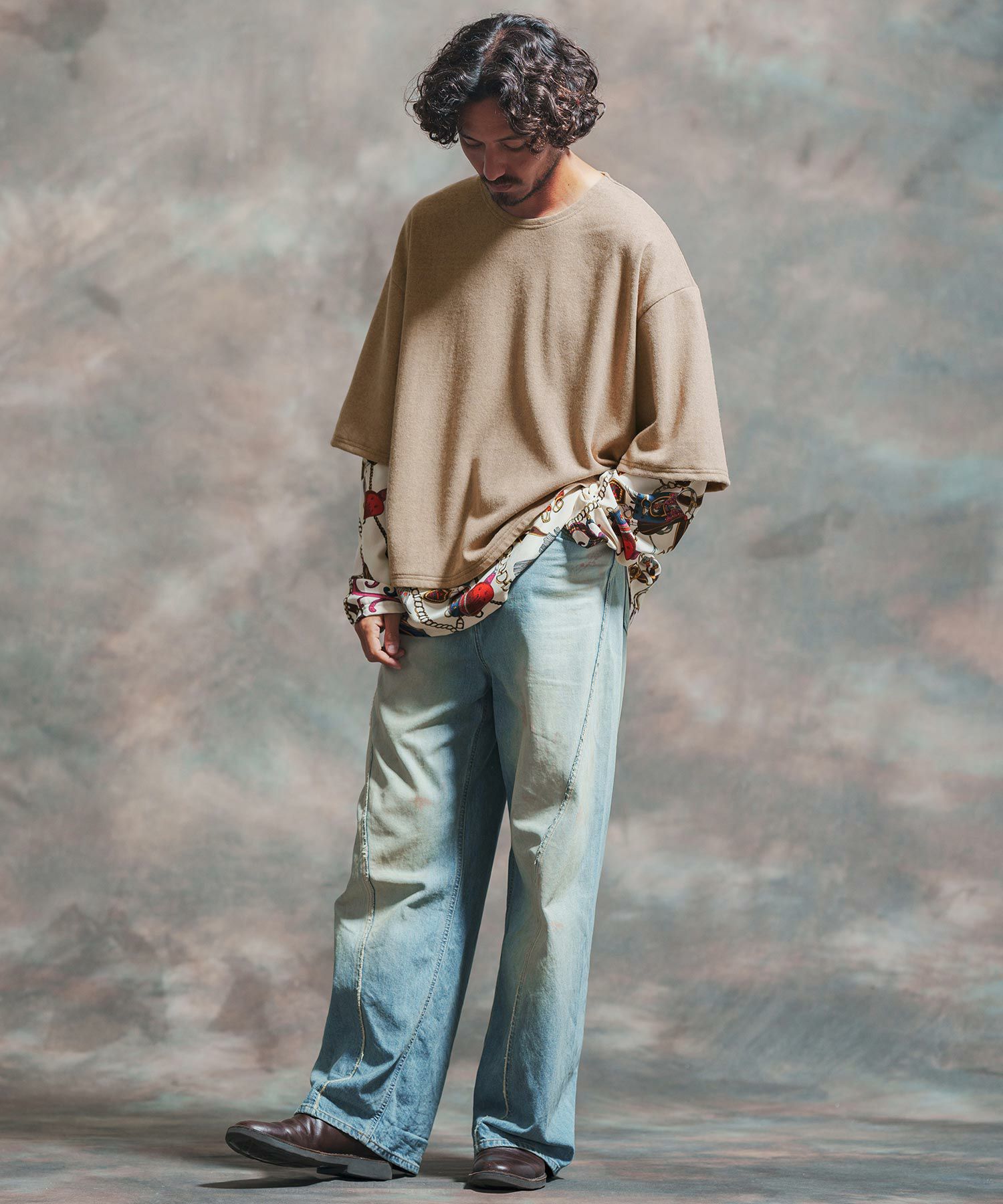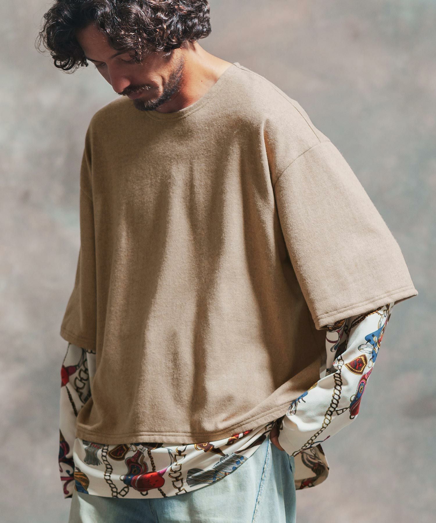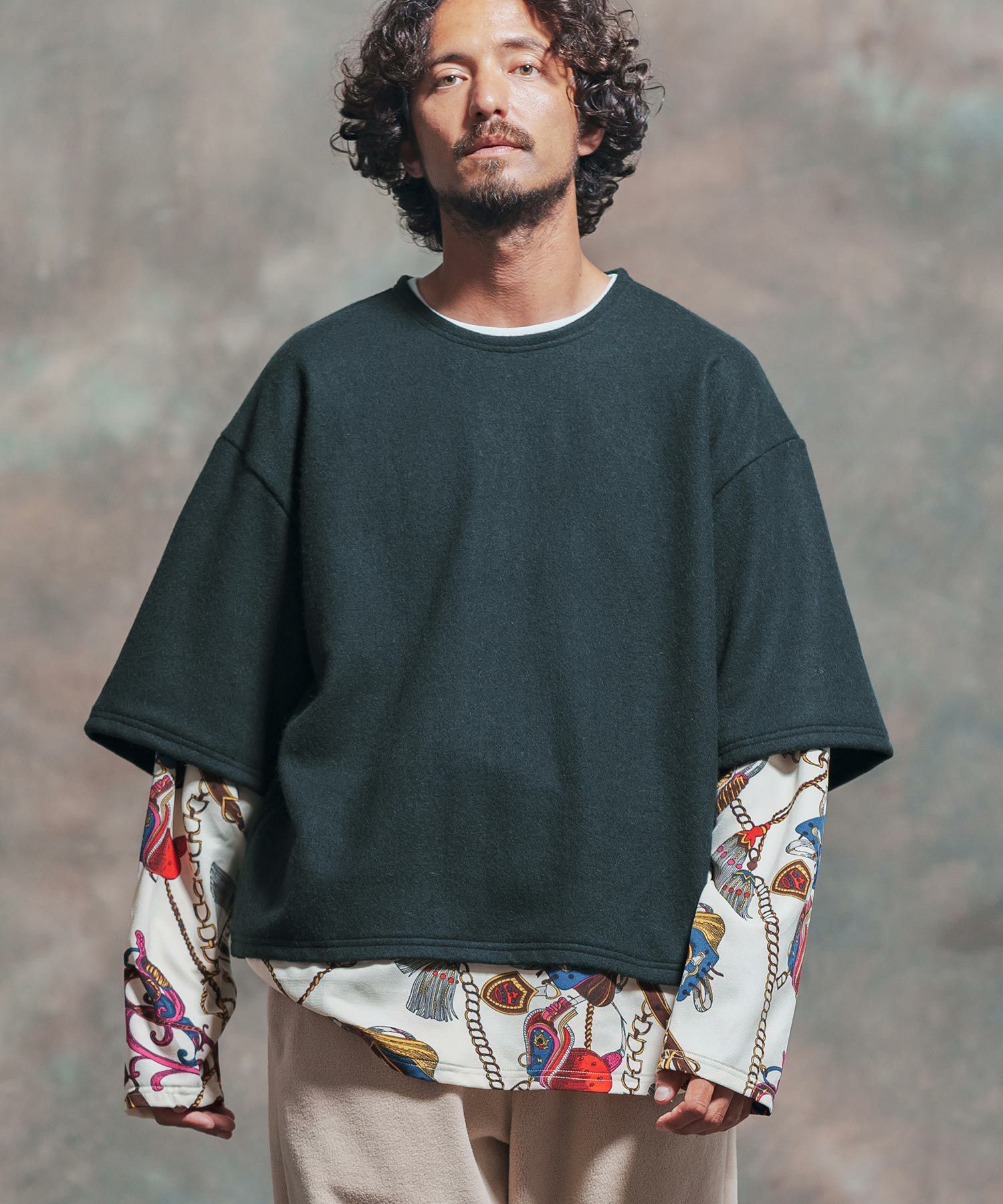 Jih Nunc 30%OFF【Jih Nunc(ジーヌンク)】起毛×チェーン柄フェイクレイヤードカットソー(JIH-R1013)