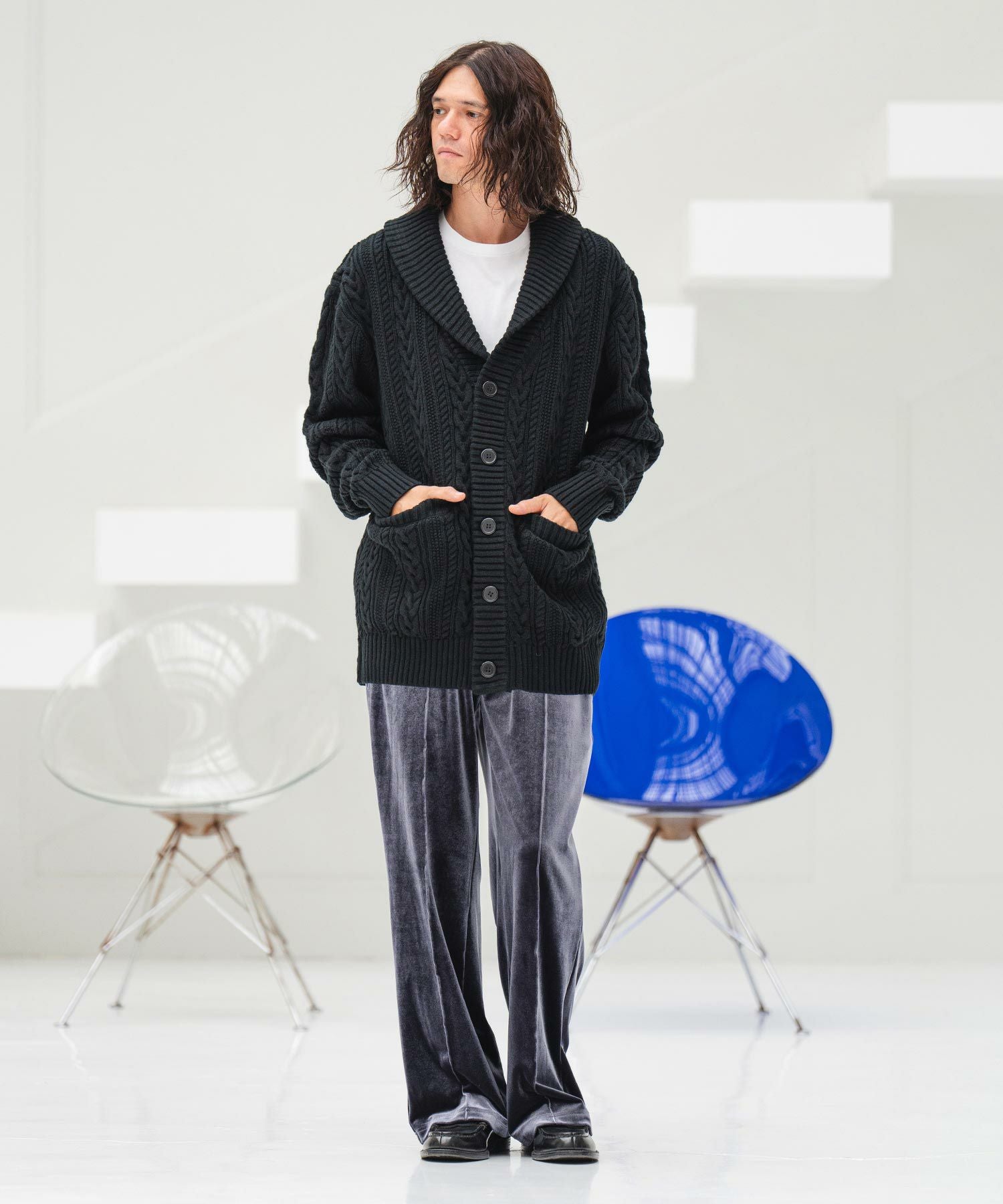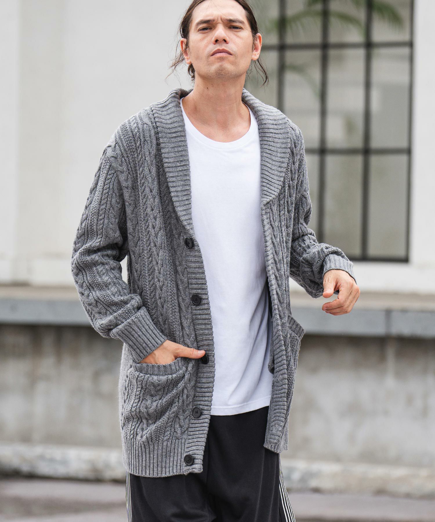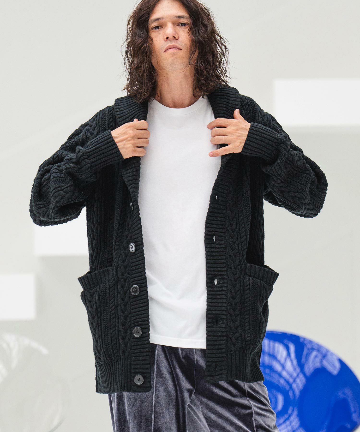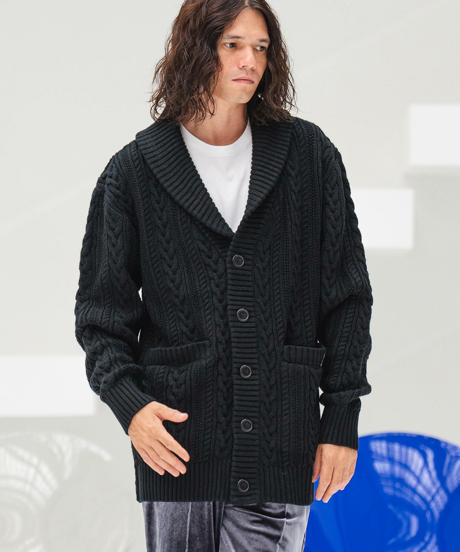 CAMBIO 50%OFF【CAMBIO(カンビオ)】ショールカラーケーブルカーディガン(CMB-R0010)