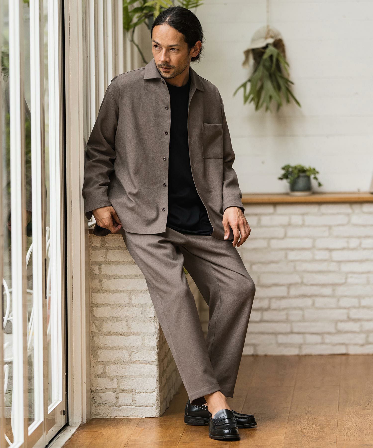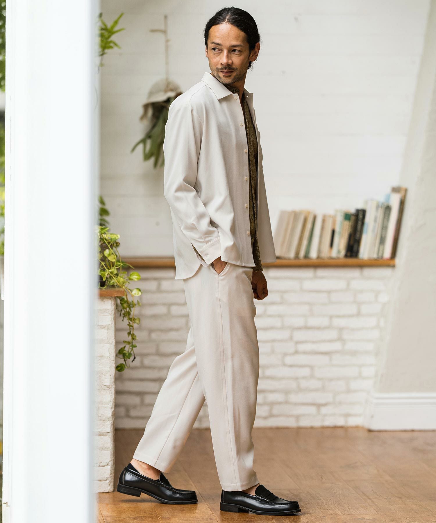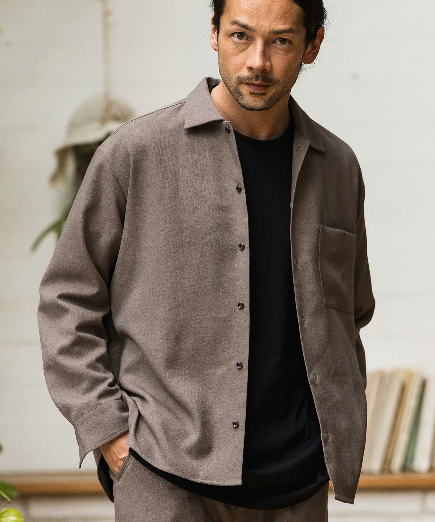CAMBIO 60%OFF【CAMBIO(カンビオ)】 サテンライクジャガードワイドレギュラーシャツ(CA01-33116)